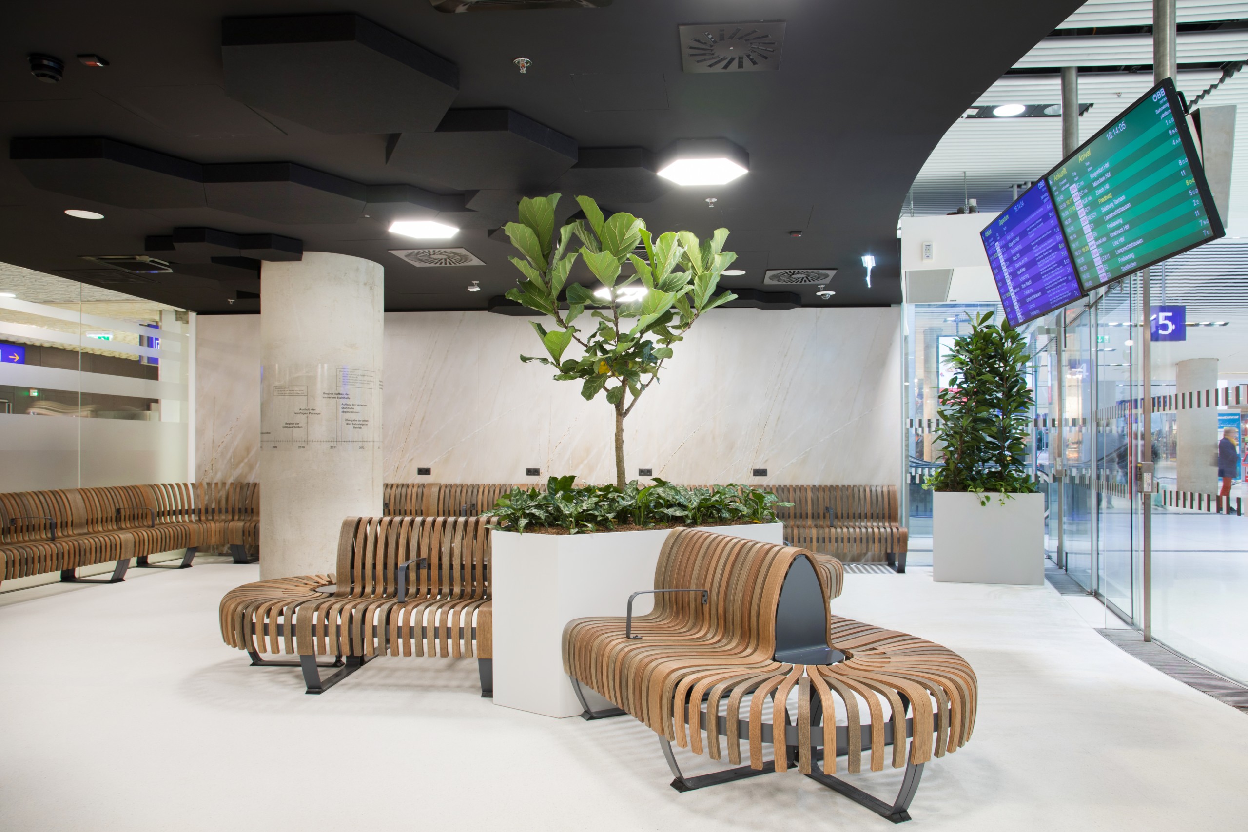 Der neugestaltete Warteraum bietet neben einem modernen Design auch zahlreiche funktionale Verbesserungen, die das Warten angenehmer und komfortabler machen. Der Umbau des Warteraums war notwendig geworden, um den steigenden Anforderungen der Fahrgäste und der wachsenden Anzahl an Reisenden gerecht zu werden. Die neue Fläche von knapp 93 Quadratmetern, nahezu doppelt so groß wie zuvor, schafft deutlich mehr Platz für die Gäste des Bahnhofs. Die Sitzplatzanzahl wurde von 33 auf 66 verdoppelt, wobei hochwertige und nachhaltige Holzelemente als ergonomisch gestaltete Sitzgelegenheiten den Reisenden größtmöglichen Komfort bieten.