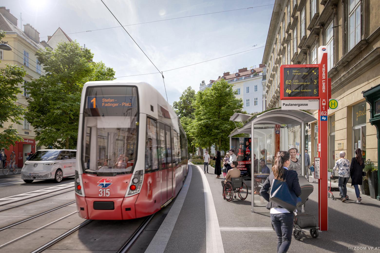 Alle Haltestellen wurden in der Barrierefreiheit verbessert und verlängert, so kann man in Zukunft auch mit Rollstuhl oder Kinderwagen in die Langzüge der Badner Bahn bequem ein- und aussteigen. Begrünte Wartehäuschen sorgen für Schatten, Abkühlung und Biodiversität. Außerdem werden 50 Meter lange, neue Grüngleise zwischen Lambrechtgasse und Klagbaumgasse in Zukunft für noch mehr Grün sorgen.