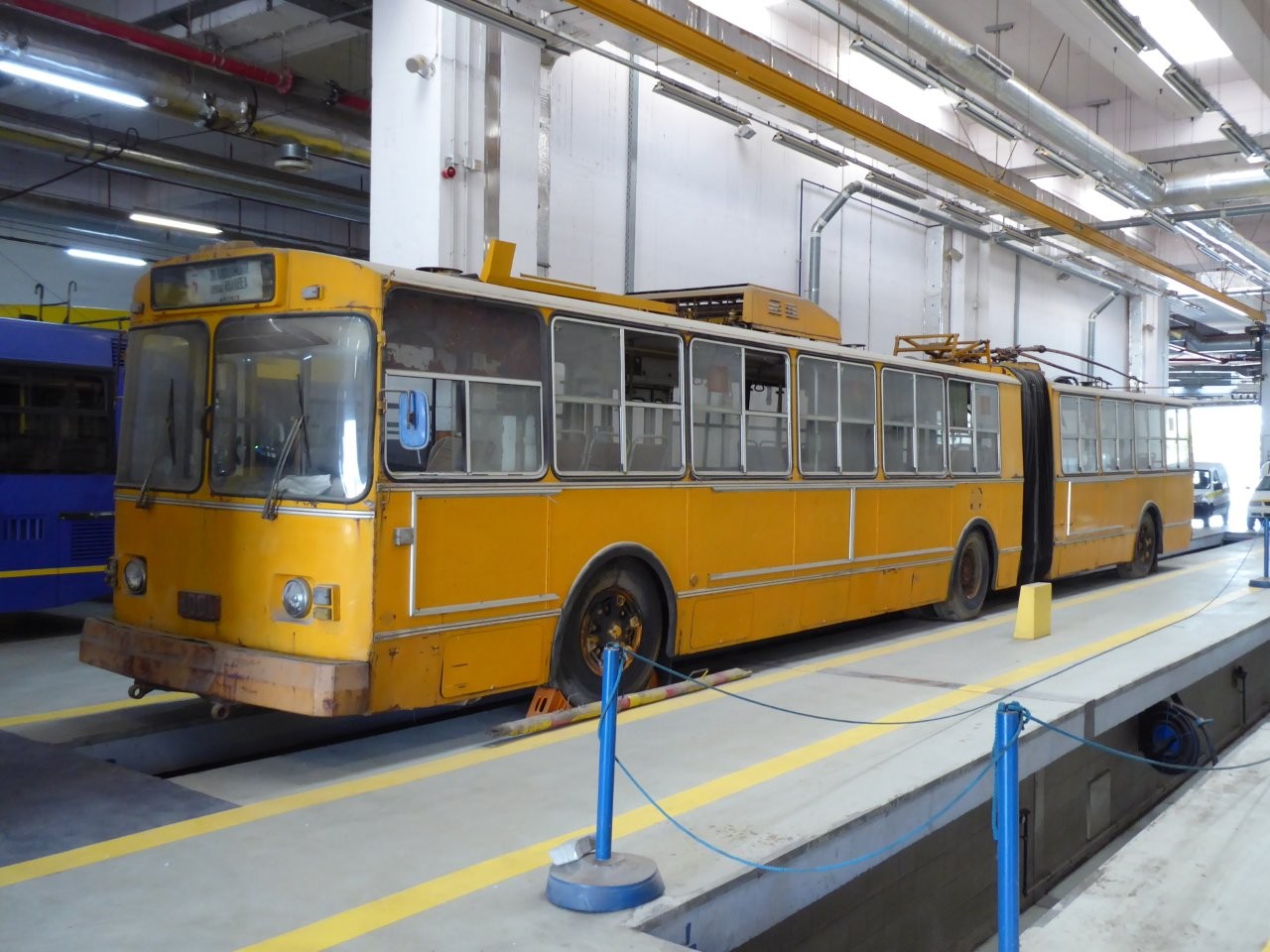 trolleybus 6095 and 6092 with a long row of futher trolleybuses awaiting further service inside Rouf Depot