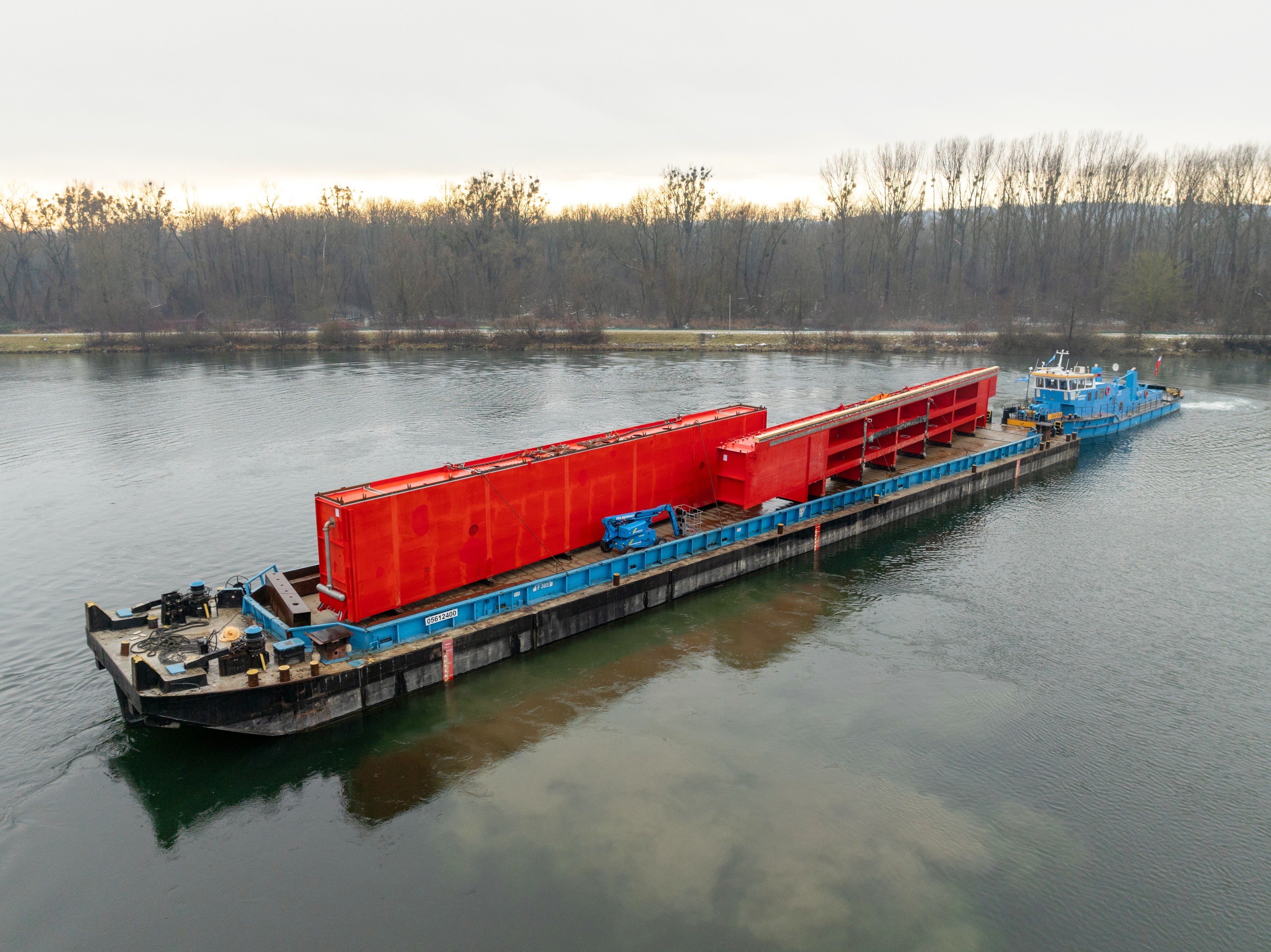 Die Hafentoranlage im Hafen Linz ist Teil des Projektes „Safe Port of Linz“ der Linz AG zum möglichst lückenlosen Hochwasserschutz an der Donau. Das mediale Interesse daran war dementsprechend groß. Mitten im Geschehen und hautnah dabei: die Experten der Felbermayr-Transport und Hebetechnik sowie des Wasserbaus mit den schwimmenden Einheiten. Sie wurden für die Schwergutlogistik und den Einhub der zwei Stahlbaustrukturen auf der Baustelle von der Firma Andritz beauftragt.