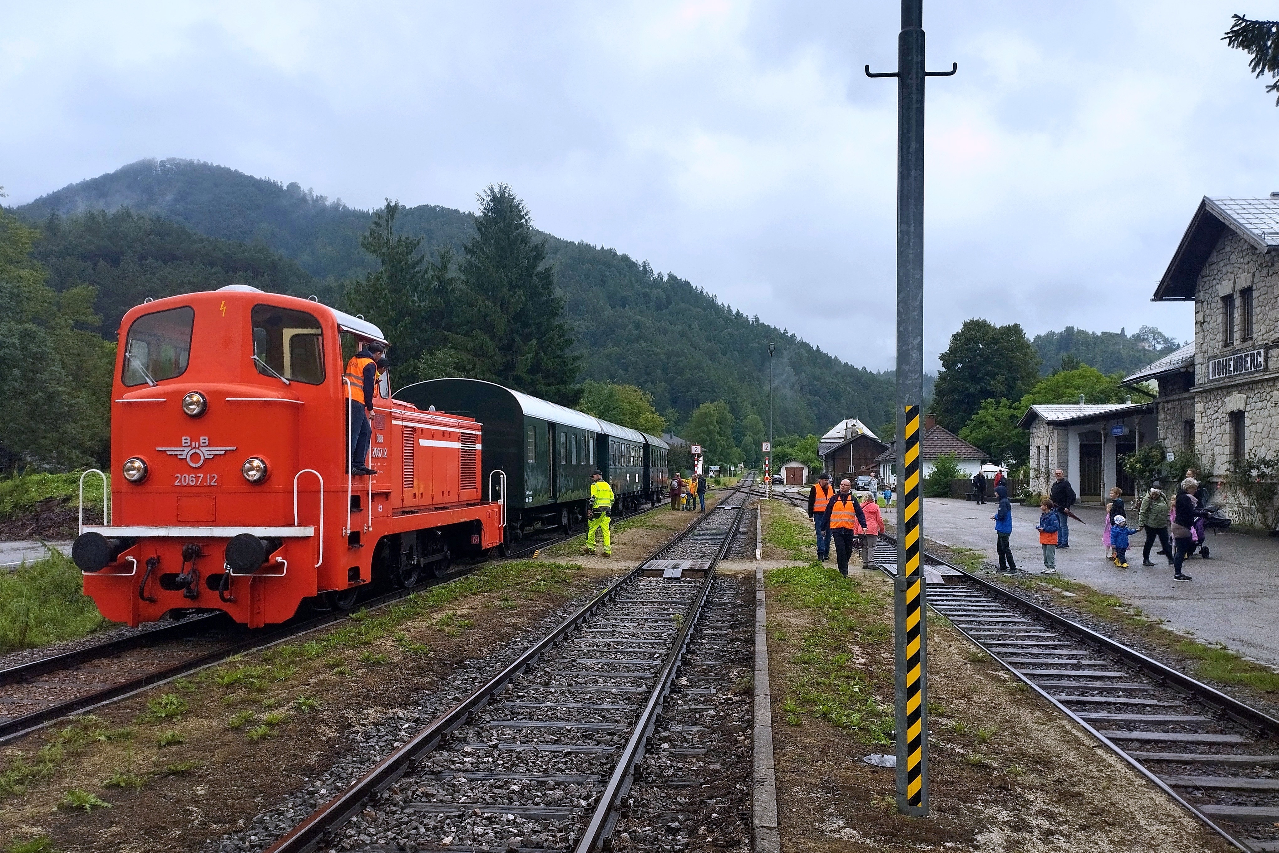 Am Sonntag, 27.07.2025 war die 2067.12 des ÖCD - Österreichischer Club für Diesellokgeschichte mit drei Spantenwagen unterwegs. St. Aegyd am Neuwalde war an diesem Tag wieder durch Personen-Zugverkehr mit der Gemeinde Hohenberg verbunden.