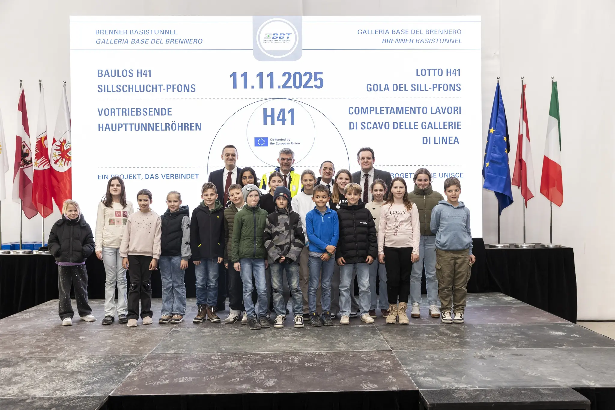 Im Baulos „H41 Sillschlucht-Pfons“ wurde vor kurzem gemeinsam mit Schülern der VS St. Peter/Ellbögen und der MS Matrei der Abschluss der Vortriebsarbeiten in den Haupttunneln gefeiert. INNSBRUCK/WIPPTAL.