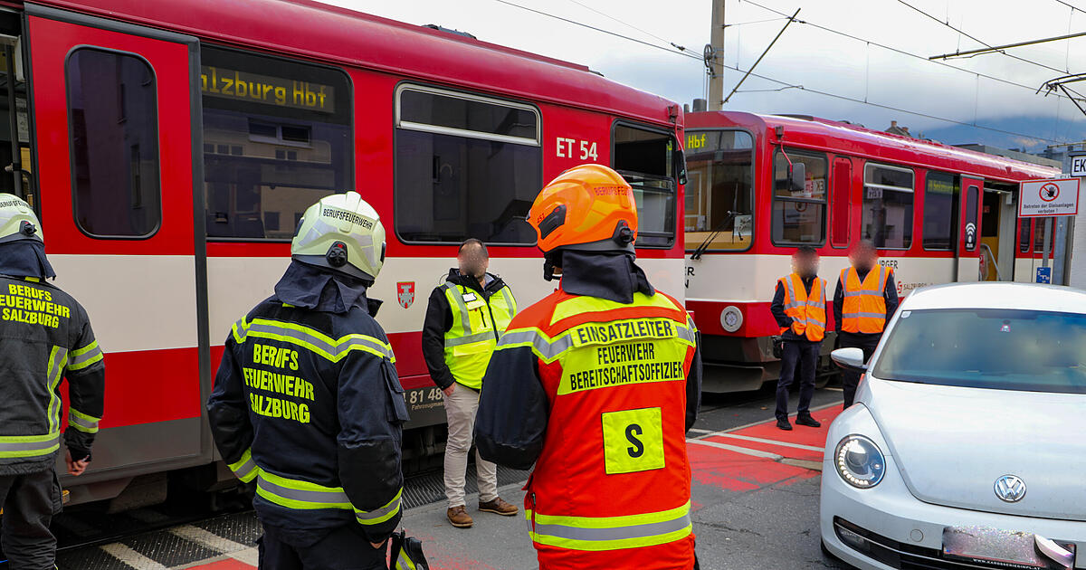 Lokalbahn und Pkw kollidieren in der Stadt Salzburg
