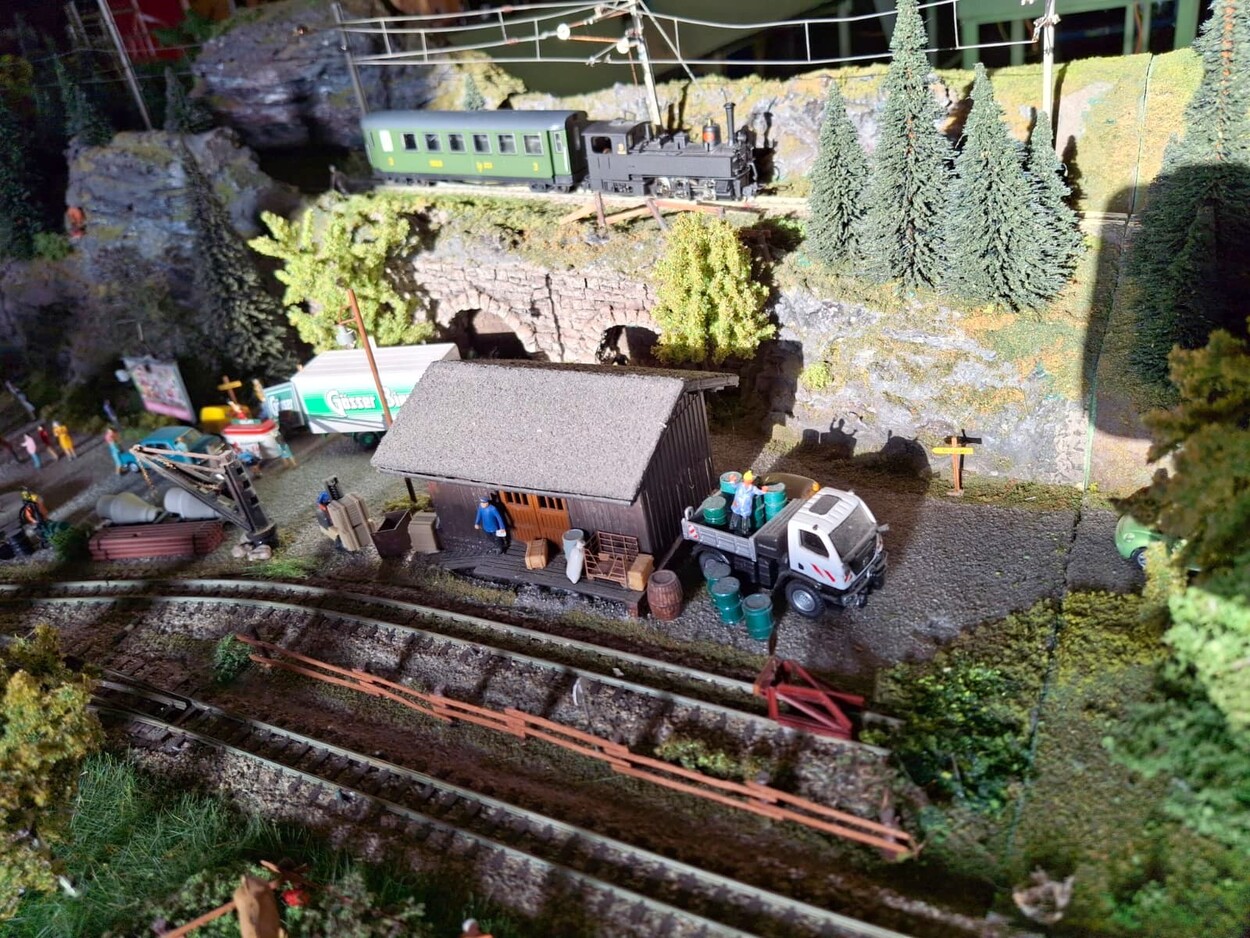 Die Anlage wurde bereits bei zahlreichen Ausstellungen gezeigt und stets wegen ihrer Authentizität und Detailverliebtheit bewundert. Reichlich vorhandenes Fahrmaterial für alle drei dargestellten Bahnen sorgt für einen lebendigen und abwechslungsreichen Betrieb.