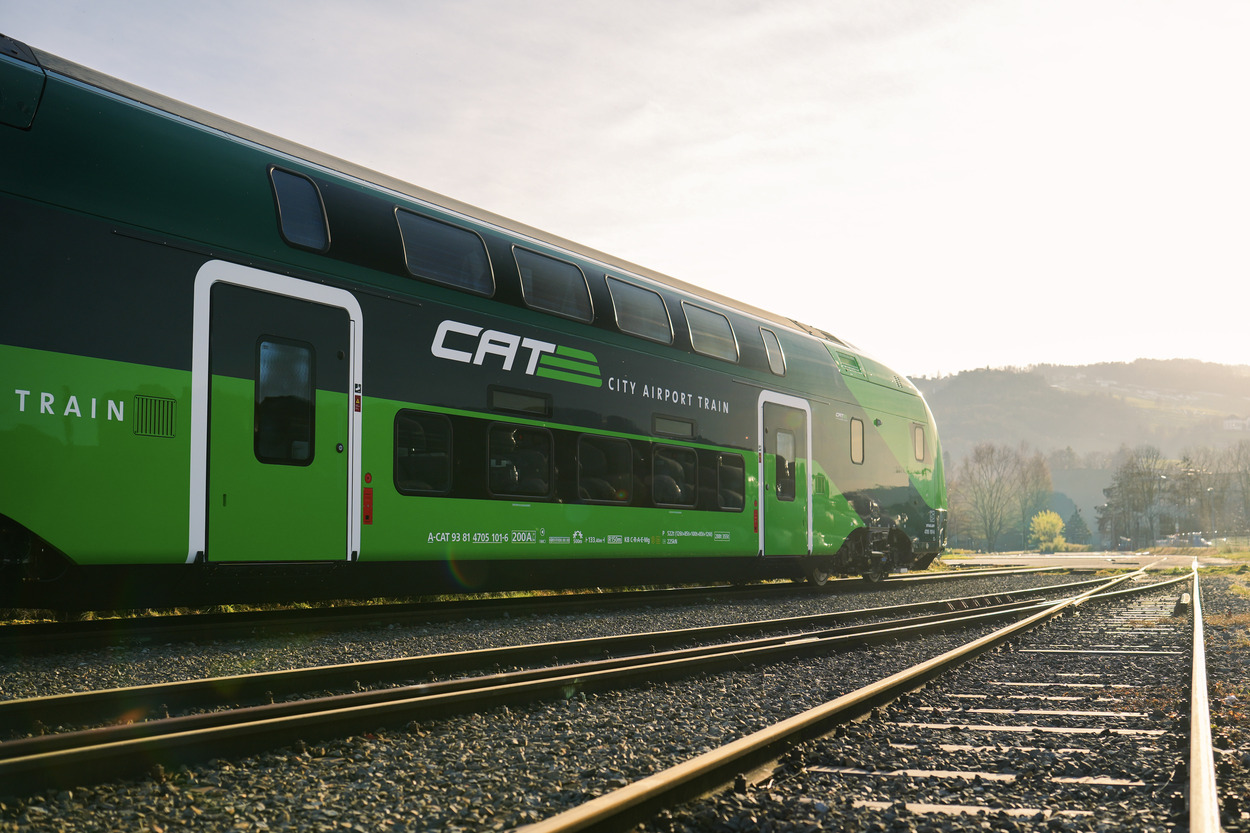 Der City Airport Train (CAT) setzt ab November 2027 neue Maßstäbe im Flughafenverkehr: Auf der Strecke zwischen dem Flughafen Wien und dem Wiener Stadtzentrum kommen neue, fünfteilige Doppelstockzüge des Typs KISS von Stadler zum Einsatz.