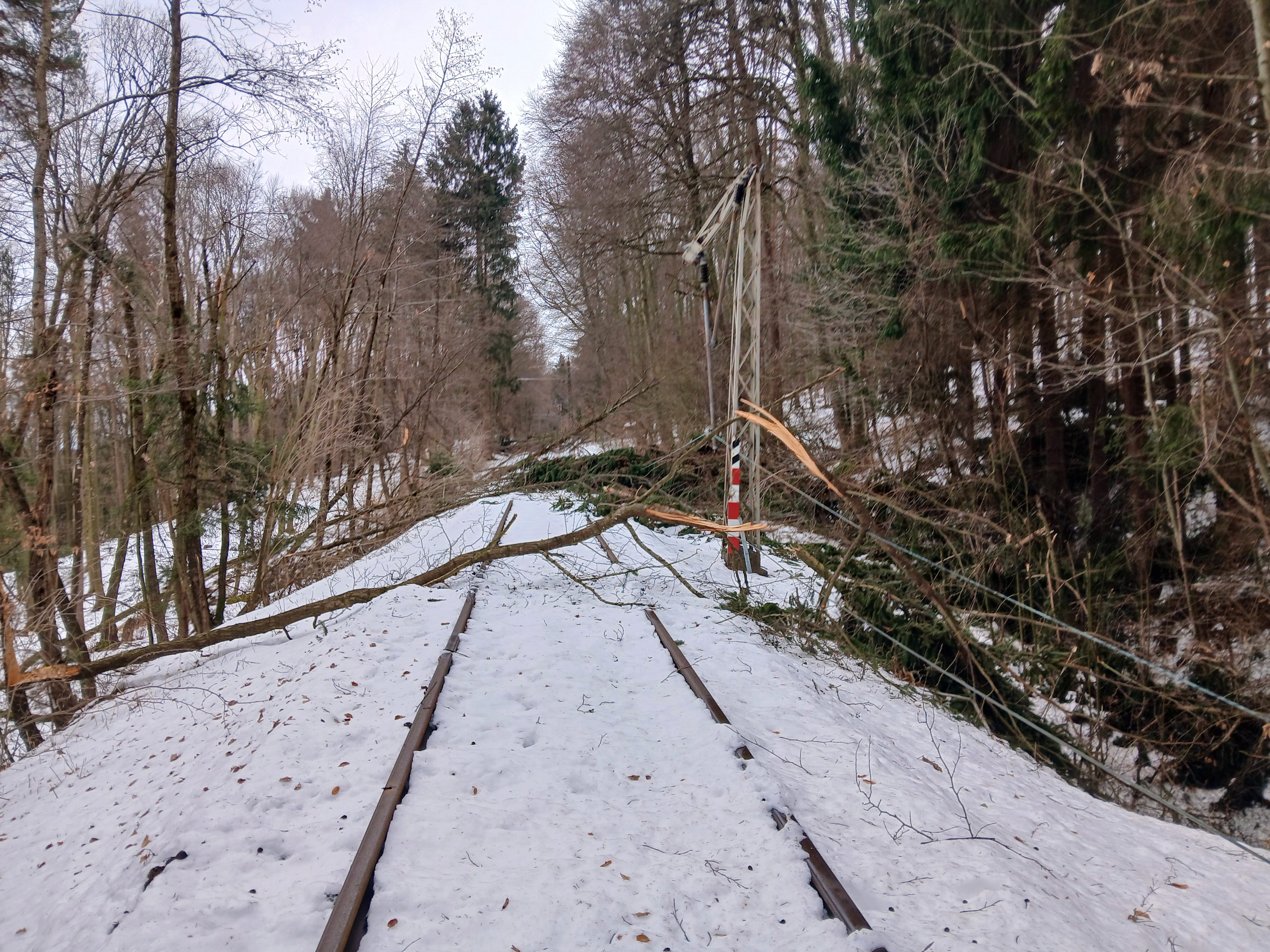 Die Folgen des Schneebruchs am 20.02.2026 in der Südoststeiermark beschädigten die Gleichenberger Bahn stark. Umgestürzte Bäume und Schäden an Oberleitungen erfordern Reparaturen. Betriebsstart verschoben, Wiederaufnahme am 18.04. geplant.