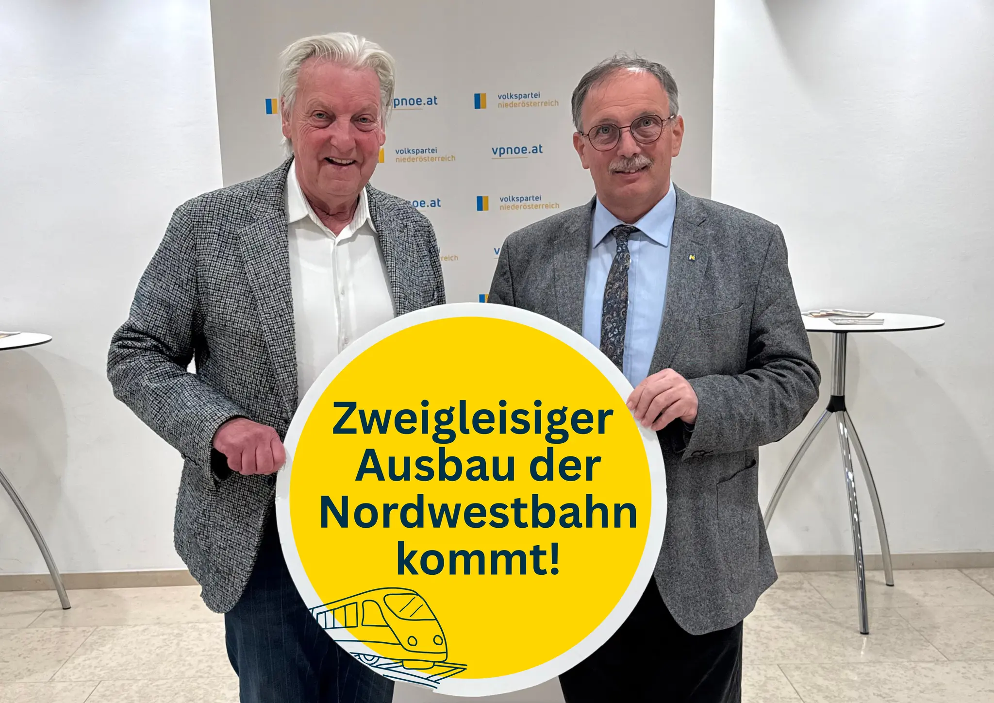 Der zweigleisige Ausbau der Nordwestbahn kommt. ÖBB startet Planungsphase für zweigleisigen Ausbau der Nordwestbahn. Landtagsabgeordneter Richard Hogl und Bürgermeister Alfred Babinsky (beide ÖVP) informieren über die nächsten Schritte.