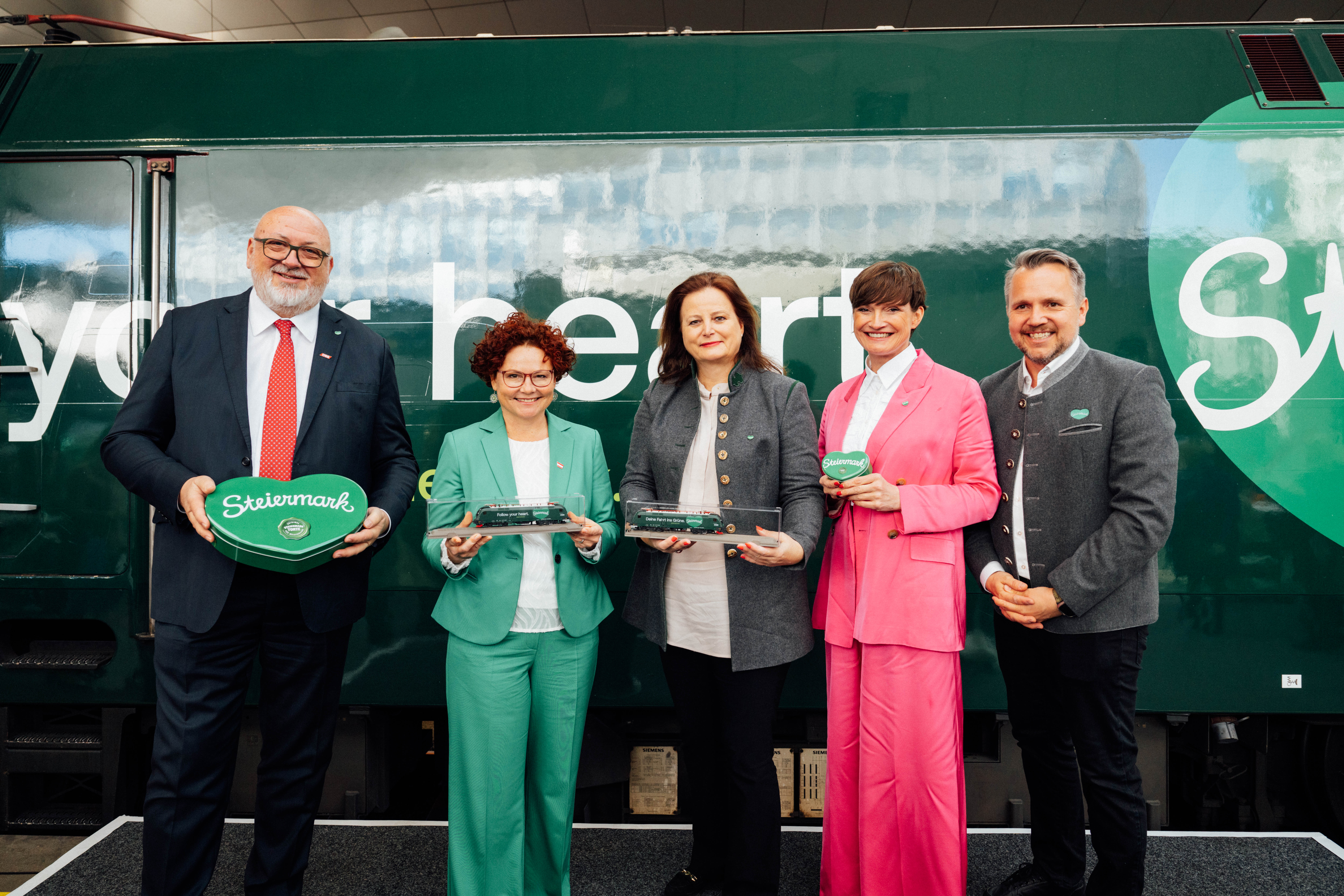 „Die Lok ist mehr als ein Blickfang. Sie ist ein rollender Botschafter für die Steiermark und ein klares Bekenntnis zur klimafreundlichen Anreise. Sie bringt die Marke Grünes Herz direkt auf die Schiene und macht Lust auf Urlaub“, freut sich Michael Feiertag, Geschäftsführer von Steiermark Tourismus, über die neue kernölgrüne Lok.