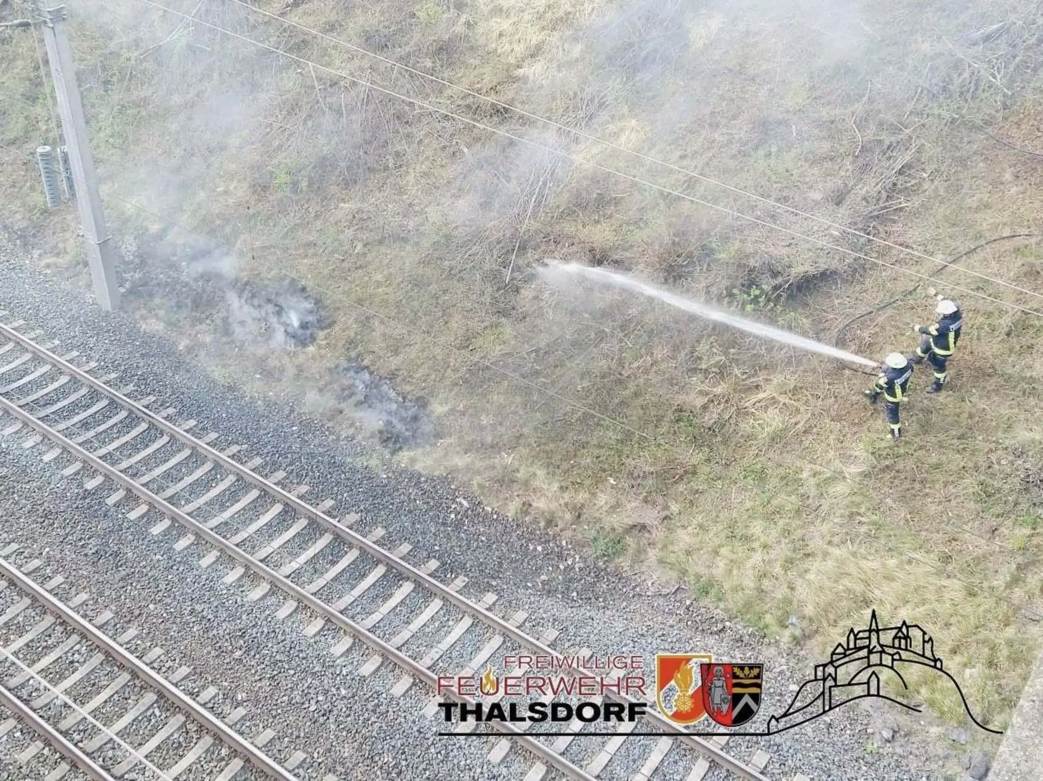 "Technischer Defekt an Oberleitung": Bahndammbrand durch Funkenflug in Goggerwenig