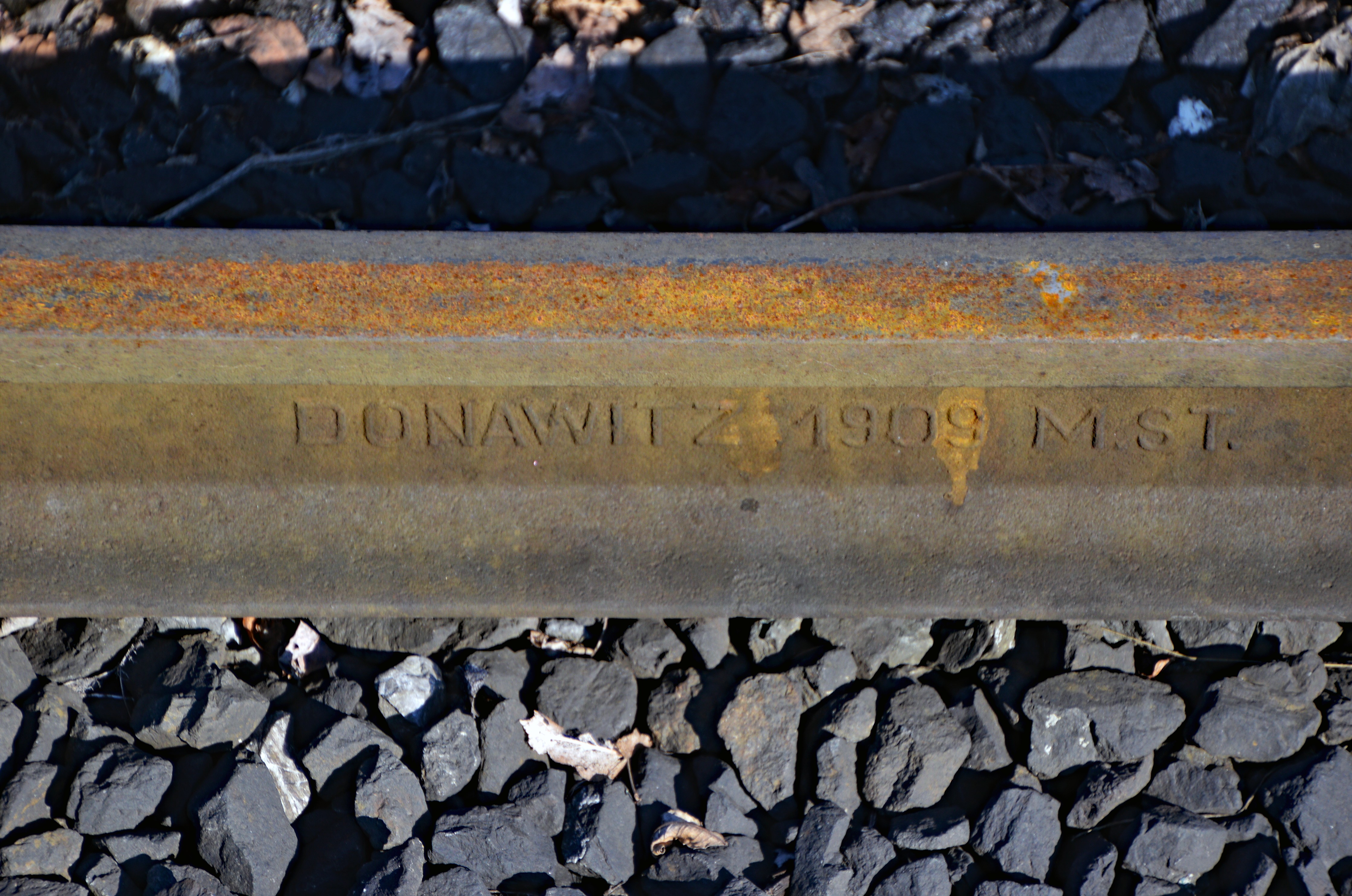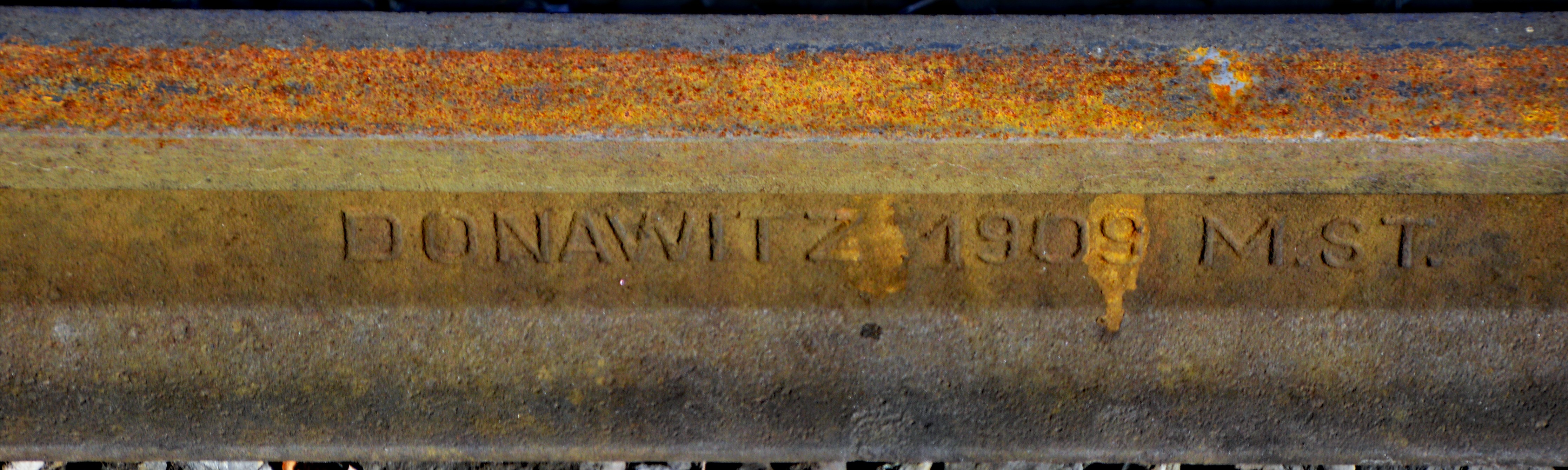 An vielen Schienen deutet die Aufschrift auf den Einbau im Jahr 1909 hin. Diese Schienen...