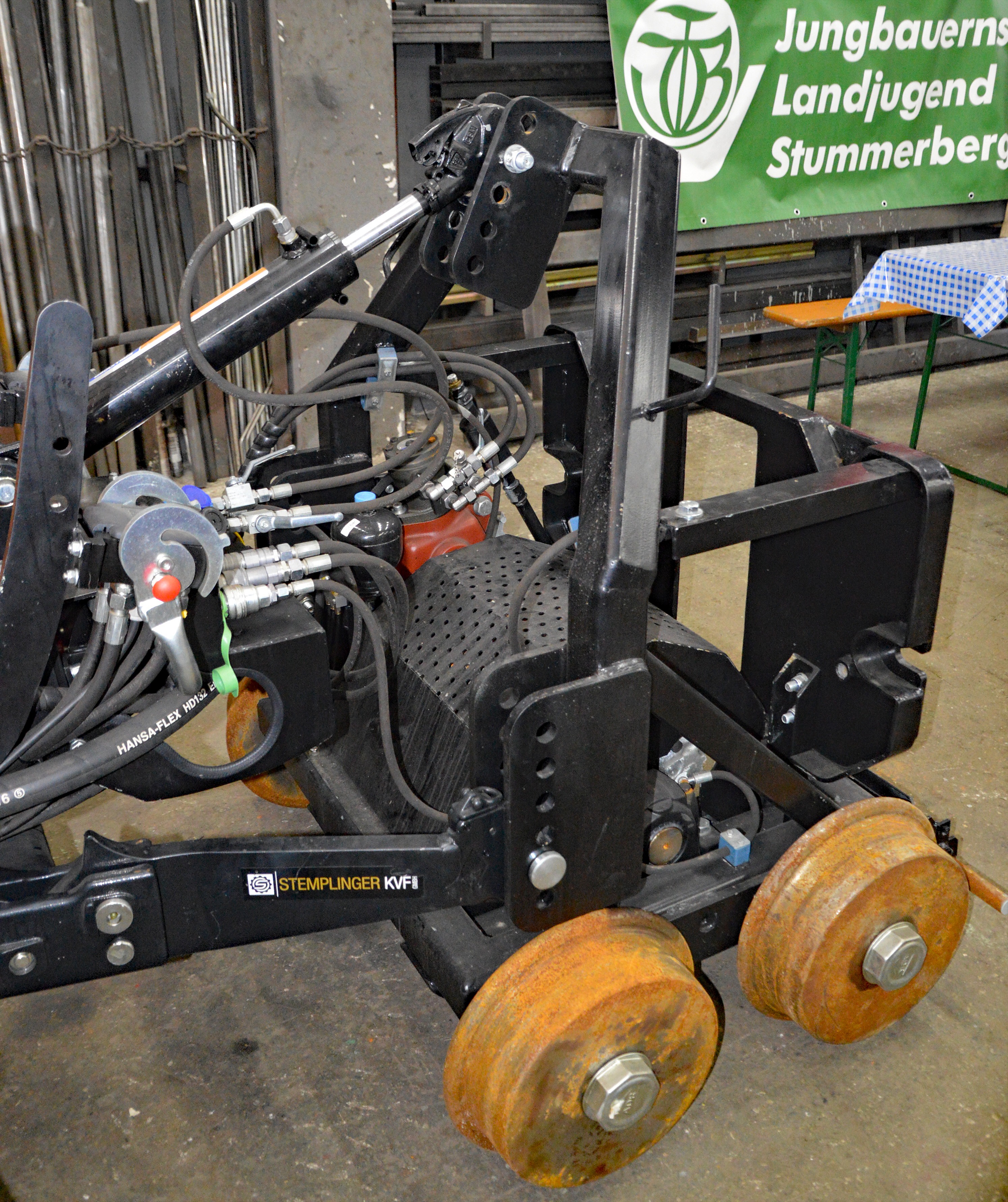Zahnrad-Antriebswagen für den Multifunktionstraktor noch nicht eingebaut bei Ausstellung Landmaschinenbau Eberharter Aschau/Zillertal mit AB-Vorstand Mag. Georg Fuchshuber, der zusammem mit Eberharter, diesen Antriebswagen entwickelt hat.