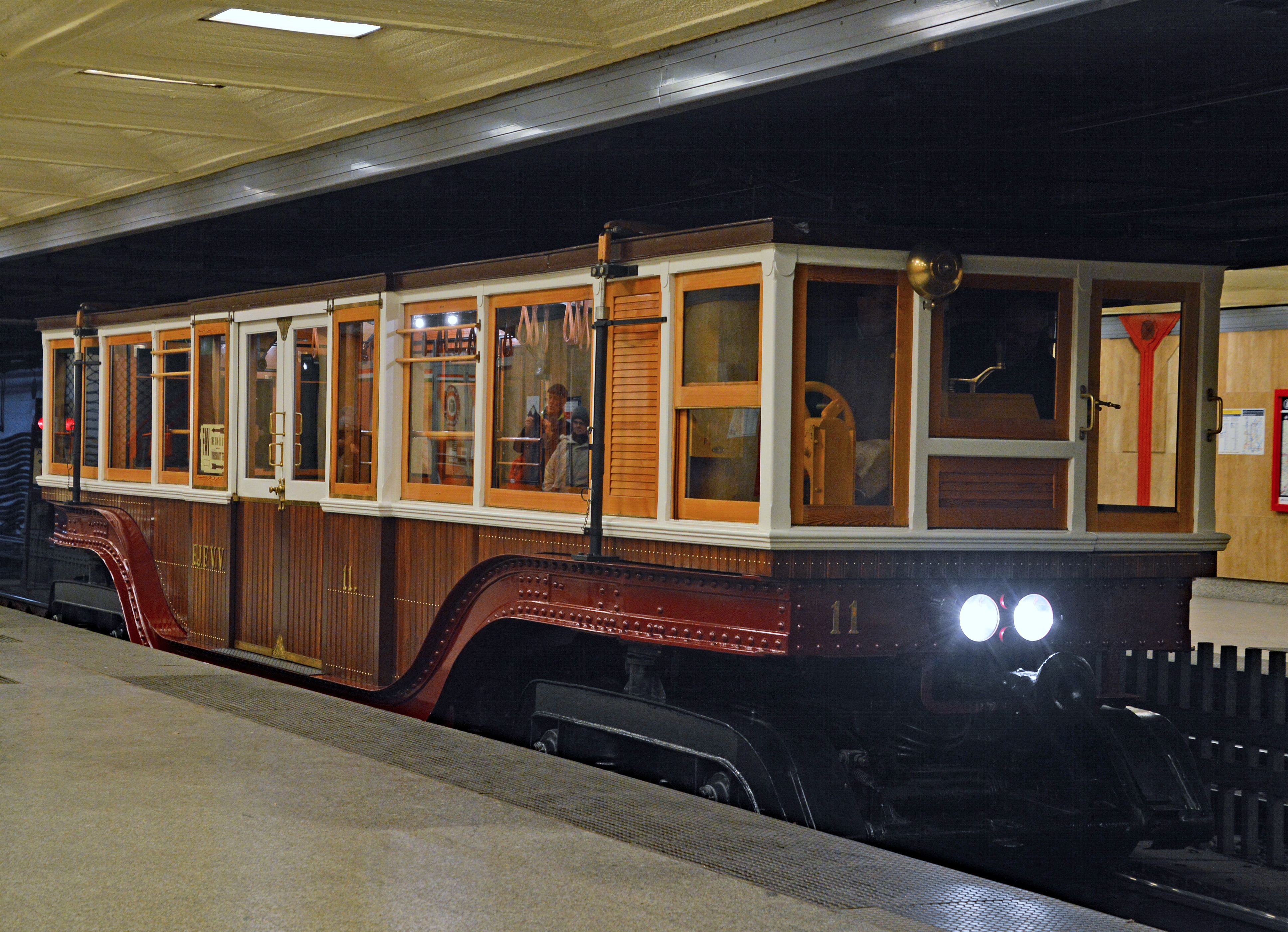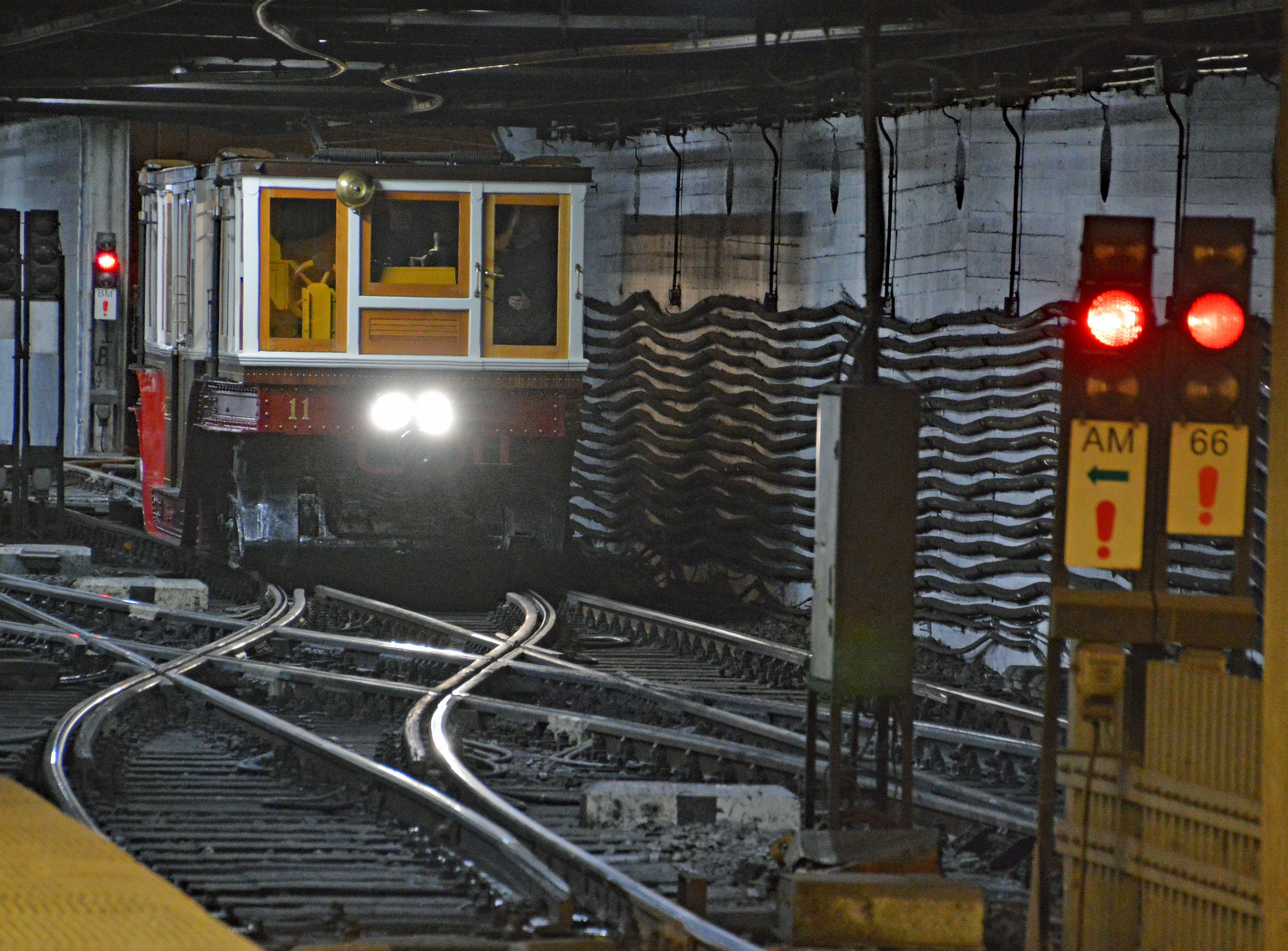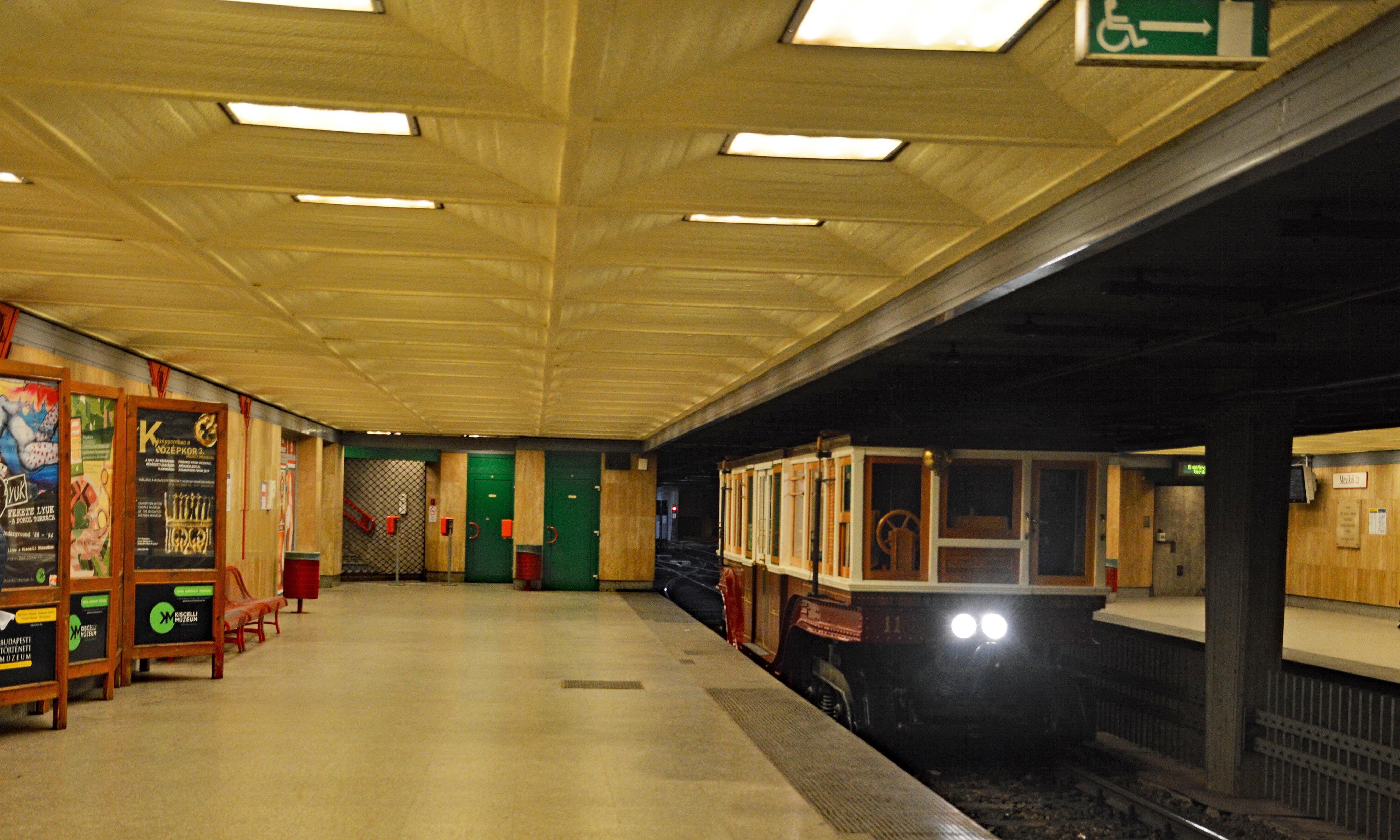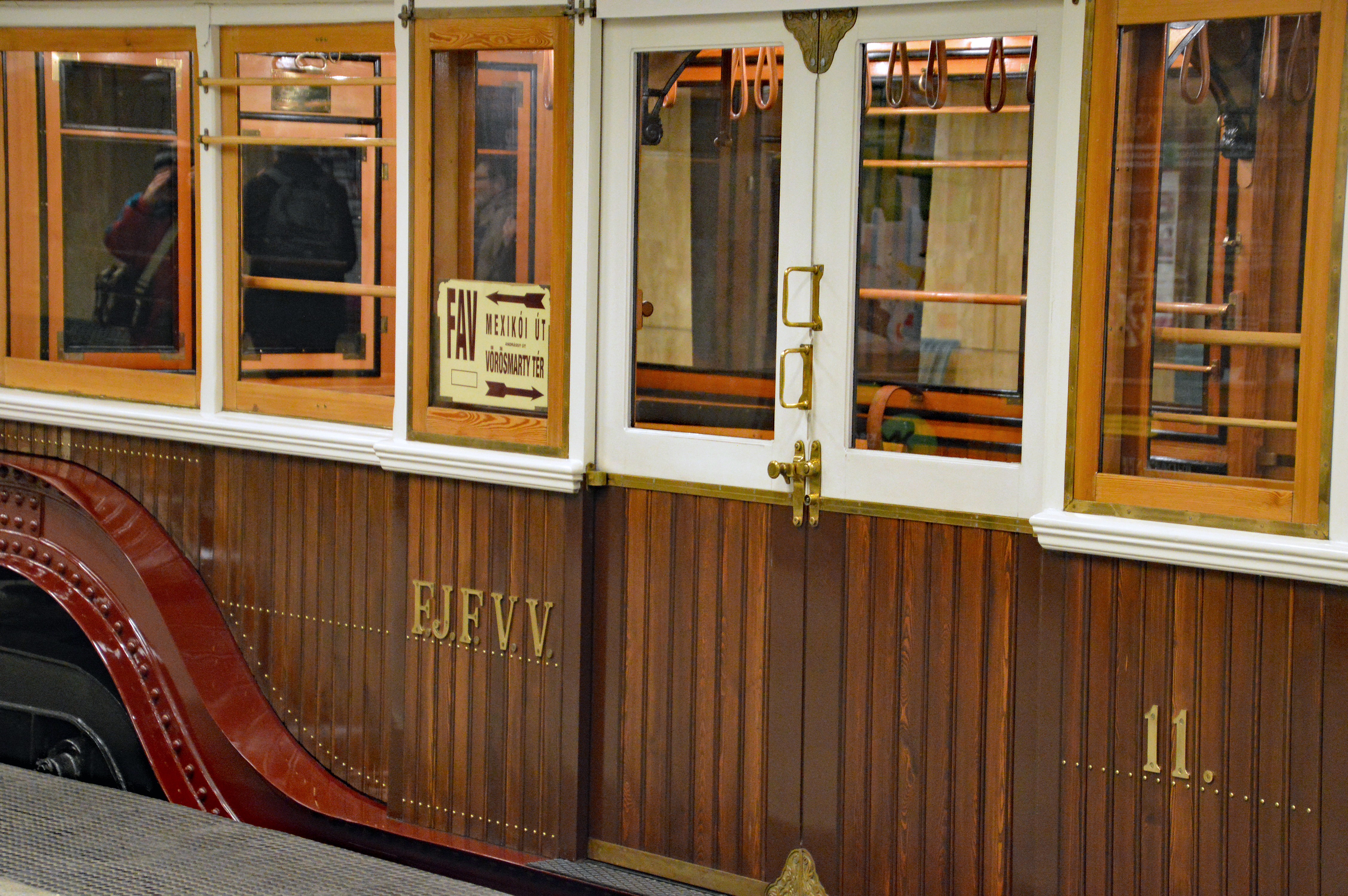 „Földalatti“ – „die Unterirdische“ M1 in Budapest, seit 1896 älteste U-Bahn in Kontinental-Europa unter der Andrássy út, hier mit historischem Triebwagen Nr. 11. Nur Londons „Underground“ ist seit 1863 älter.