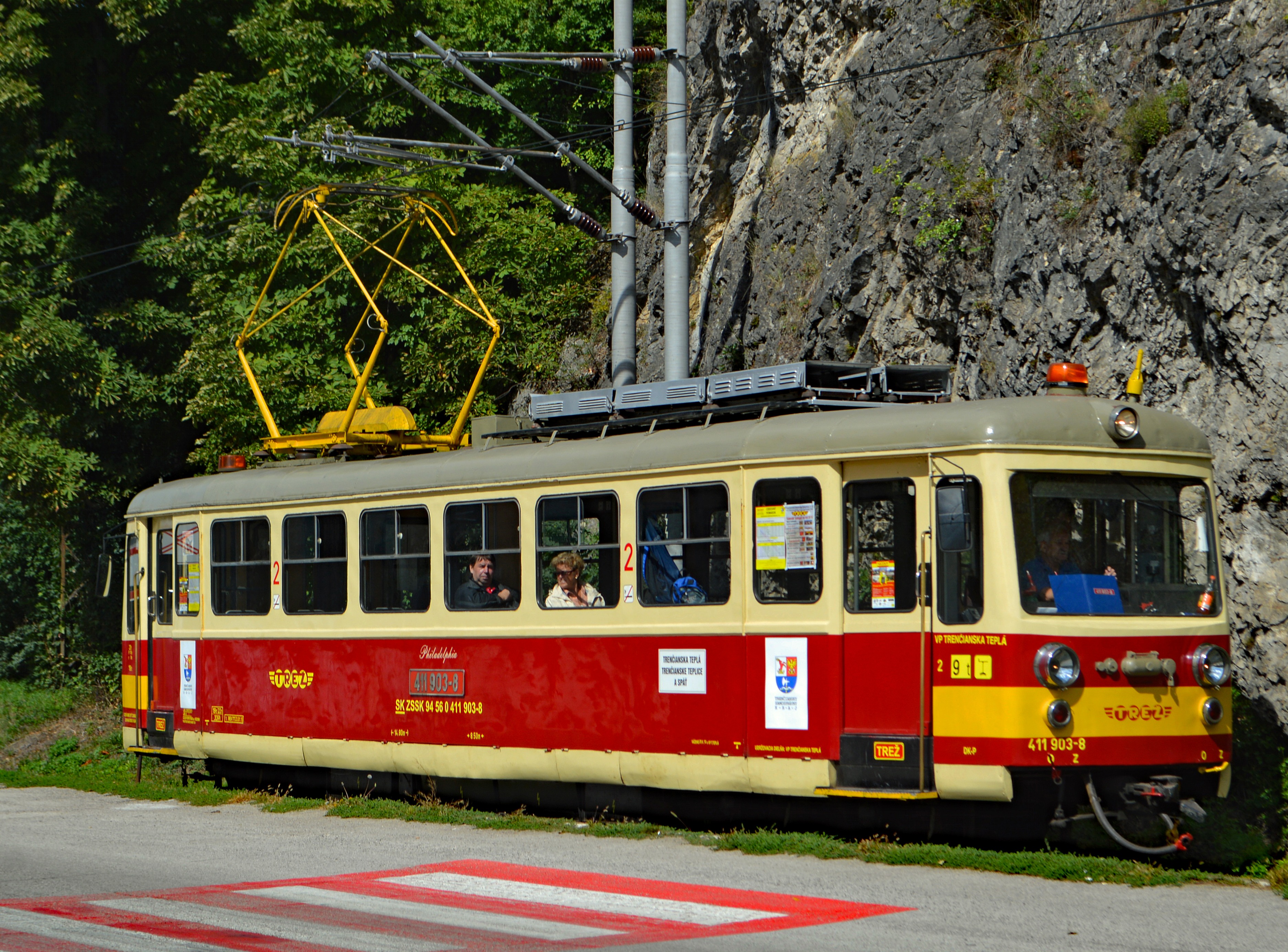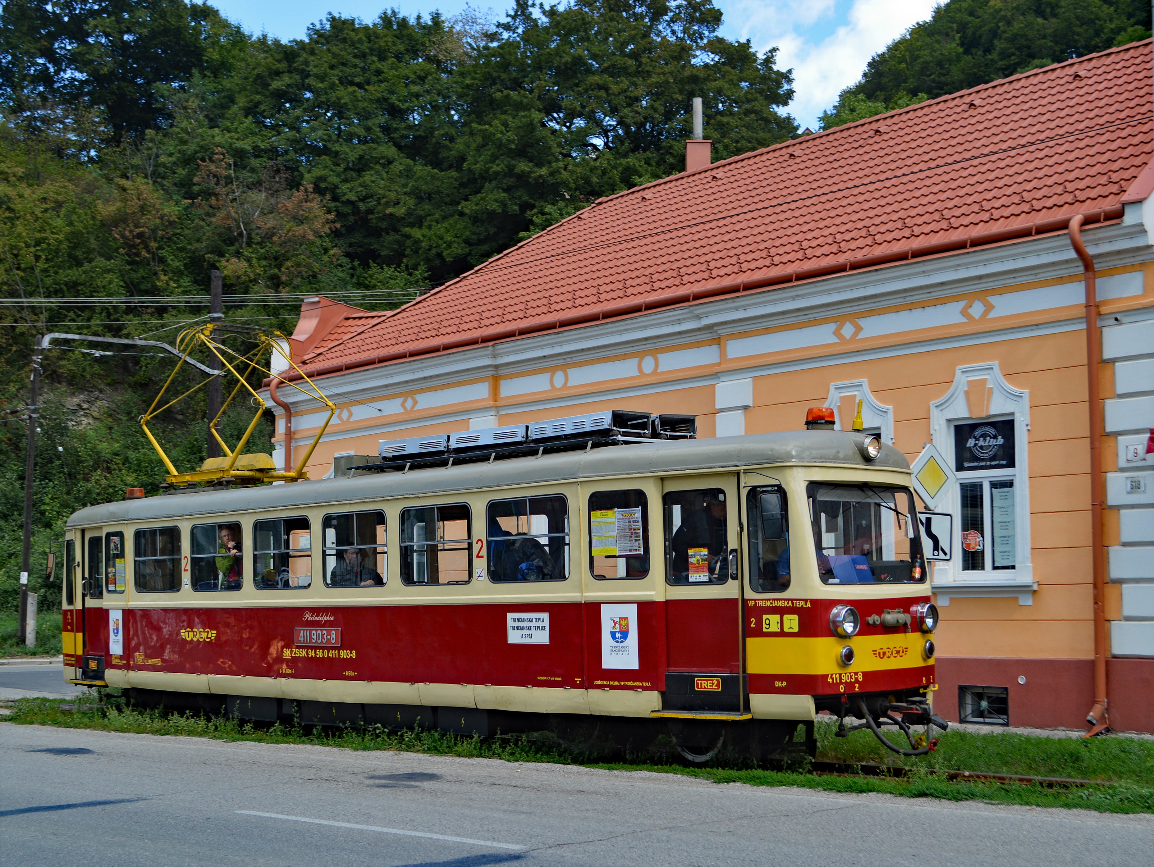 Die slowakische Schmalspurbahn Trenčianska Elektrická Železnica wurde im Jahre 1909 eröffnet. Sie mit 600V= elektrifiziert schmalspurig eine Überlandstraßenbahn zwischen Trenčianska Teplá und Trenčianske Teplice mit 5,427 km Streckenlänge.