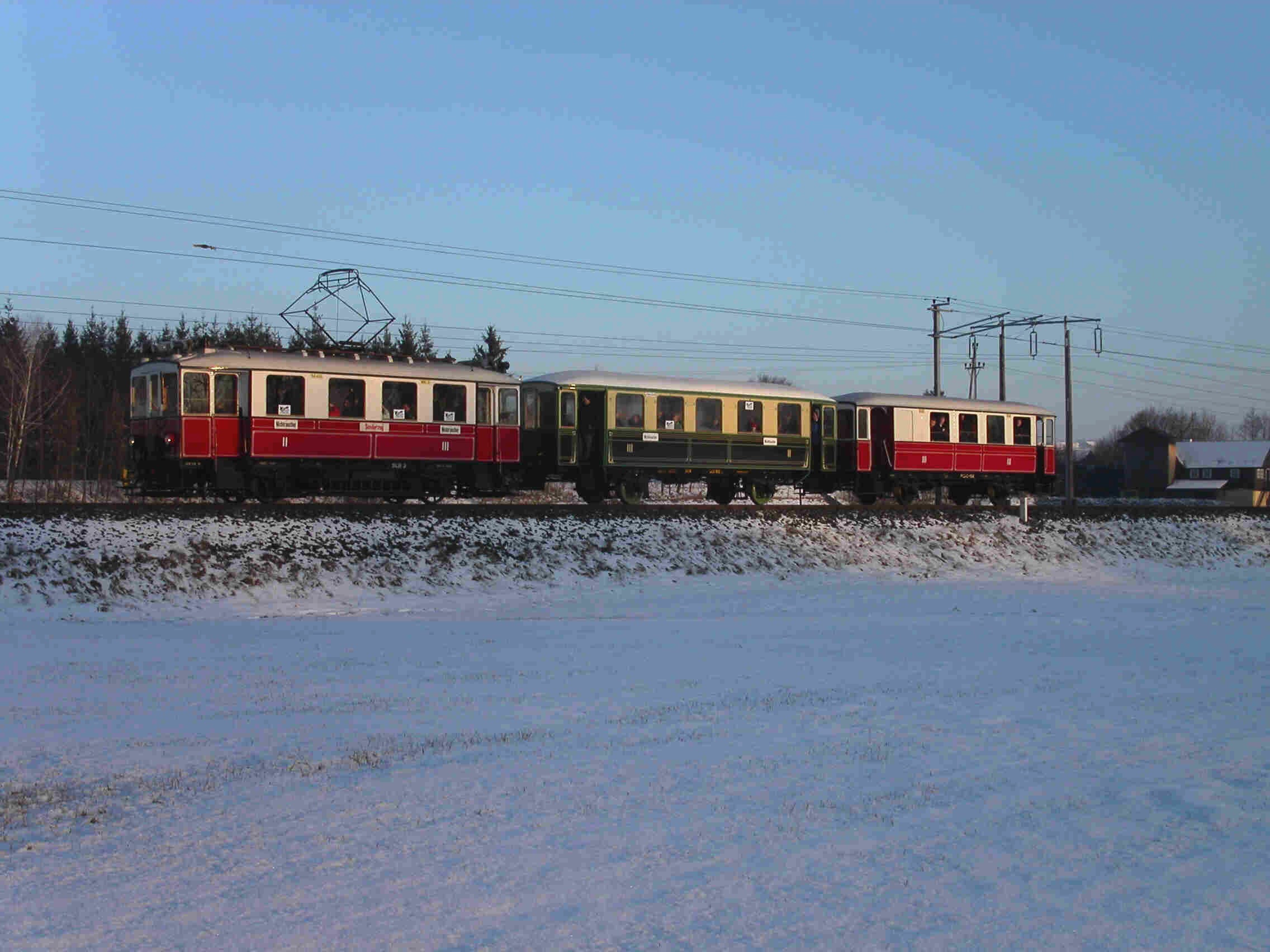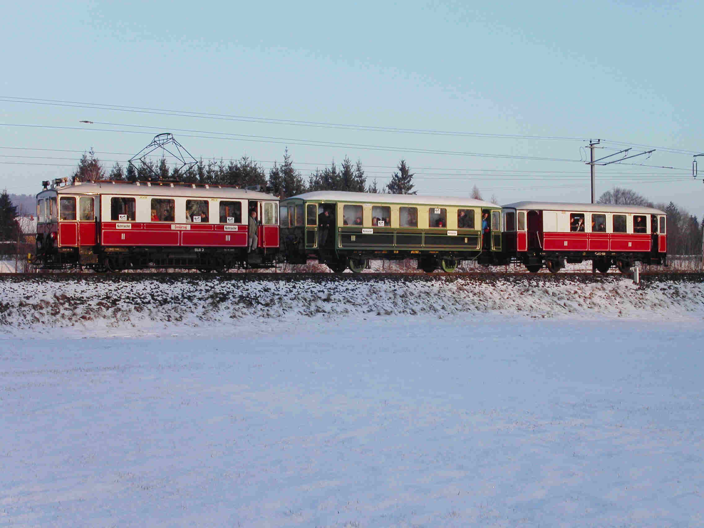 Sonderfahrt mit der Salzburger Lokalbahn durch die winterliche Landschaft.