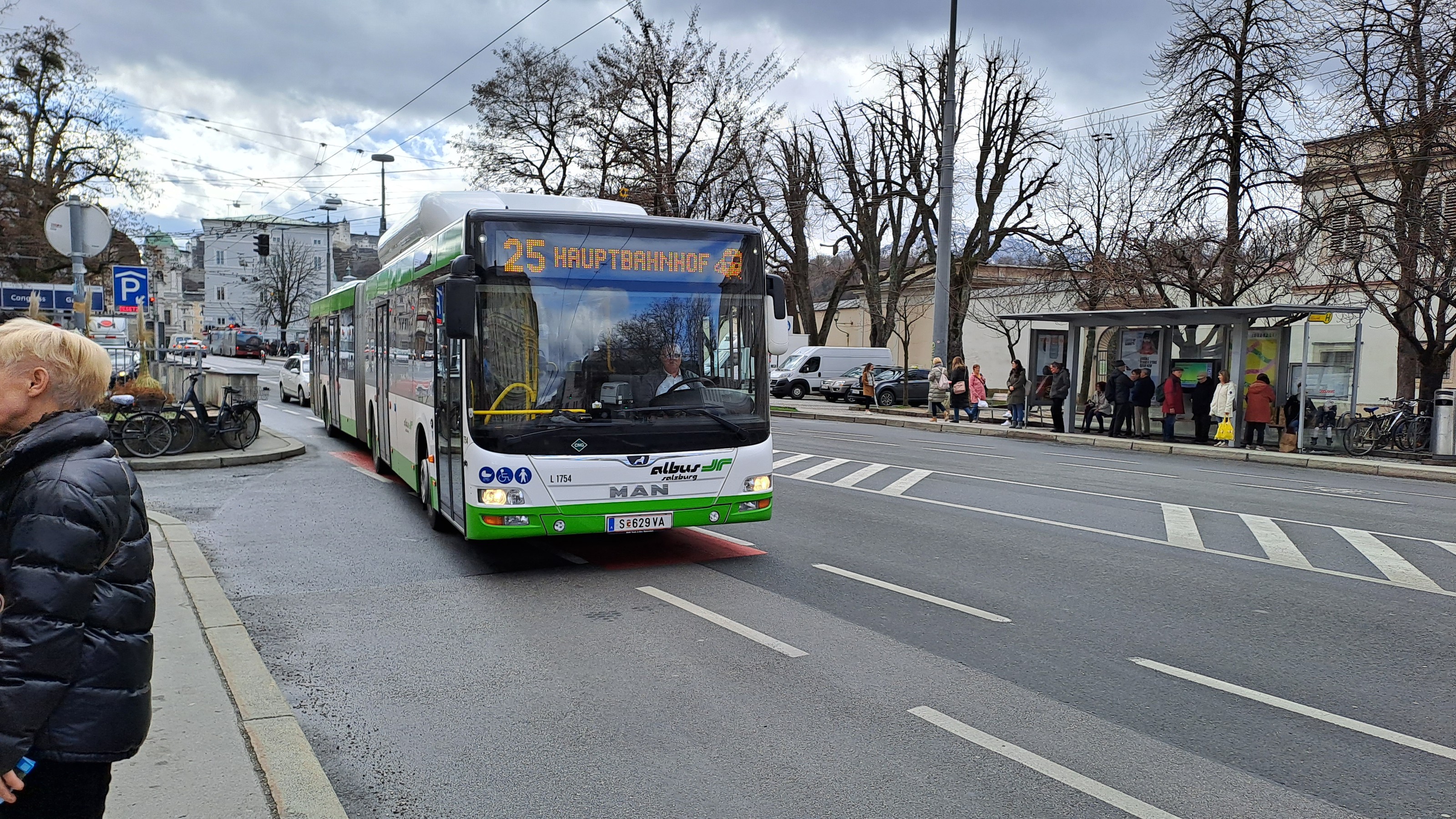 Albus Linie 25 Richtung Untersbergbahn am Mirabellplatz.