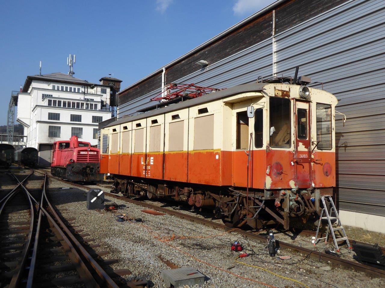 Das Bild entstand im Bahnhof Ampflwang der ÖGEG - Triebwagen ET 24.103 wird restauriert - im...