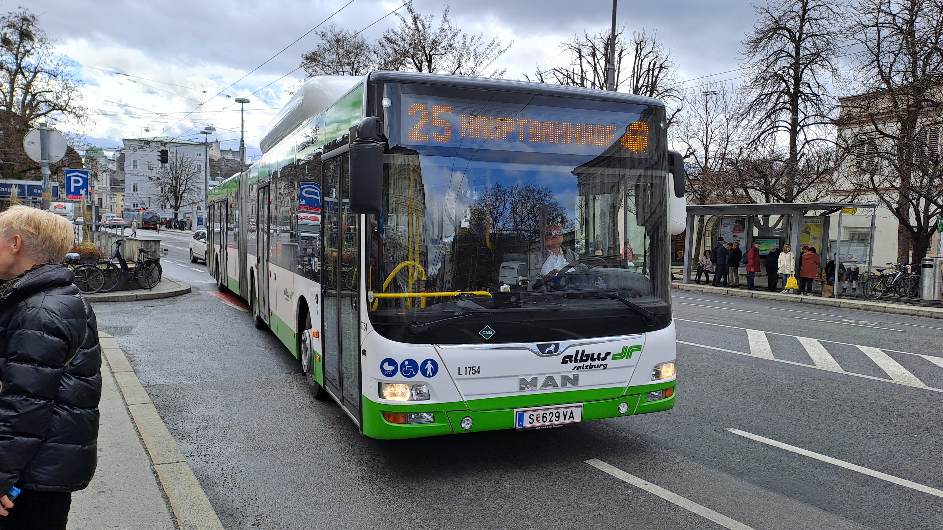 Albus Linie 25 Richtung Hauptbahnhof am Mirabellplatz.