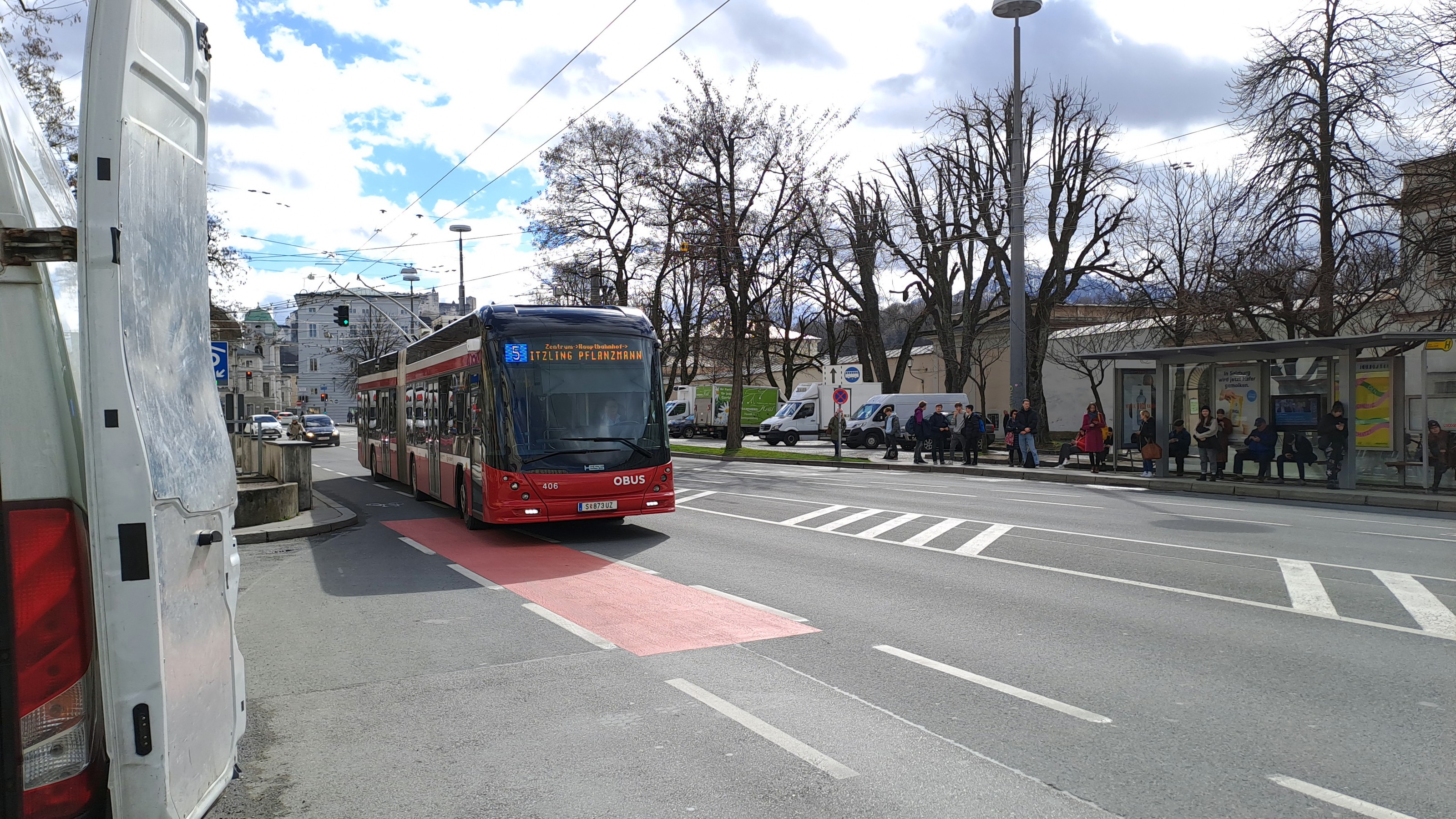 Obus Linie 2 am Mirabellplatz.