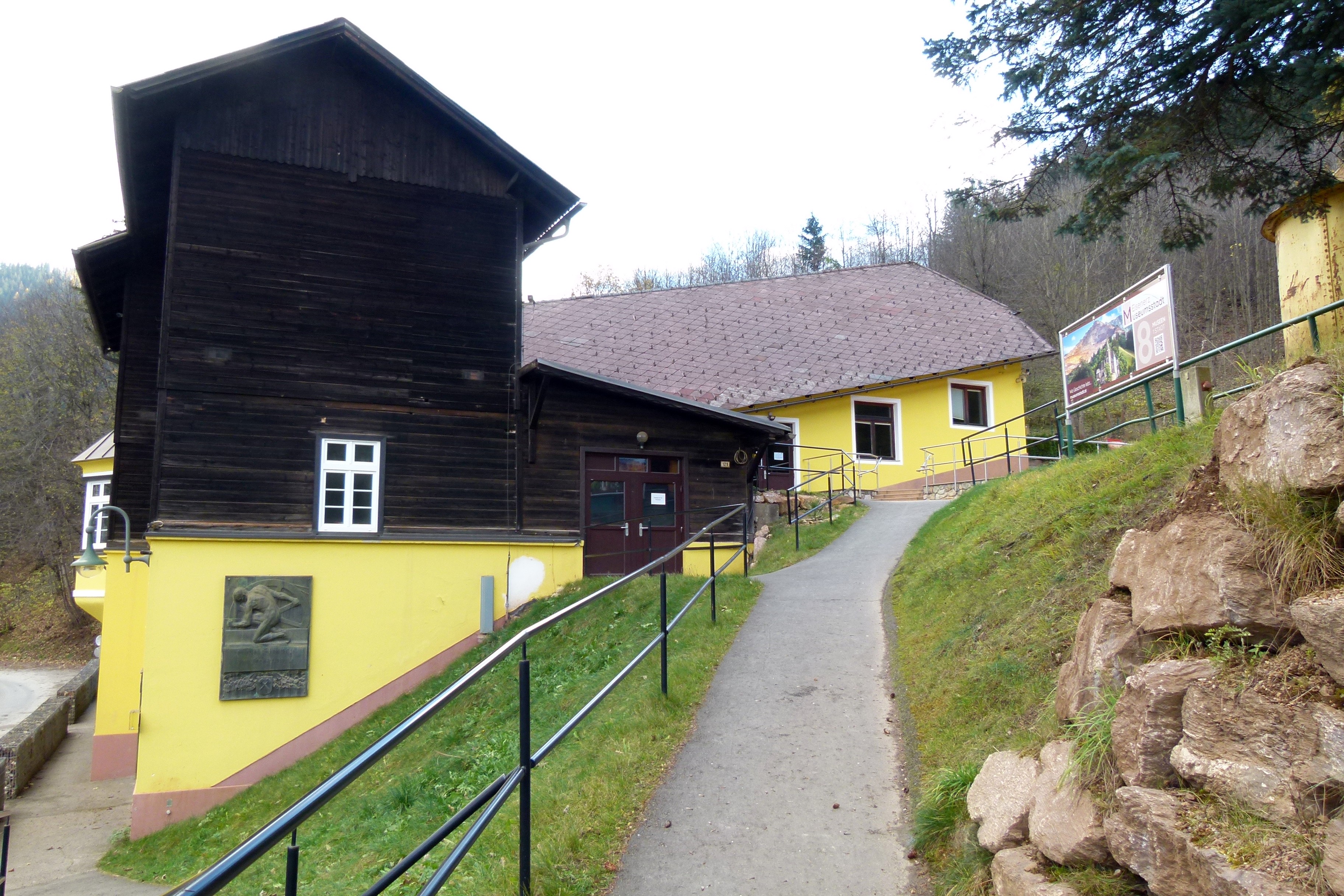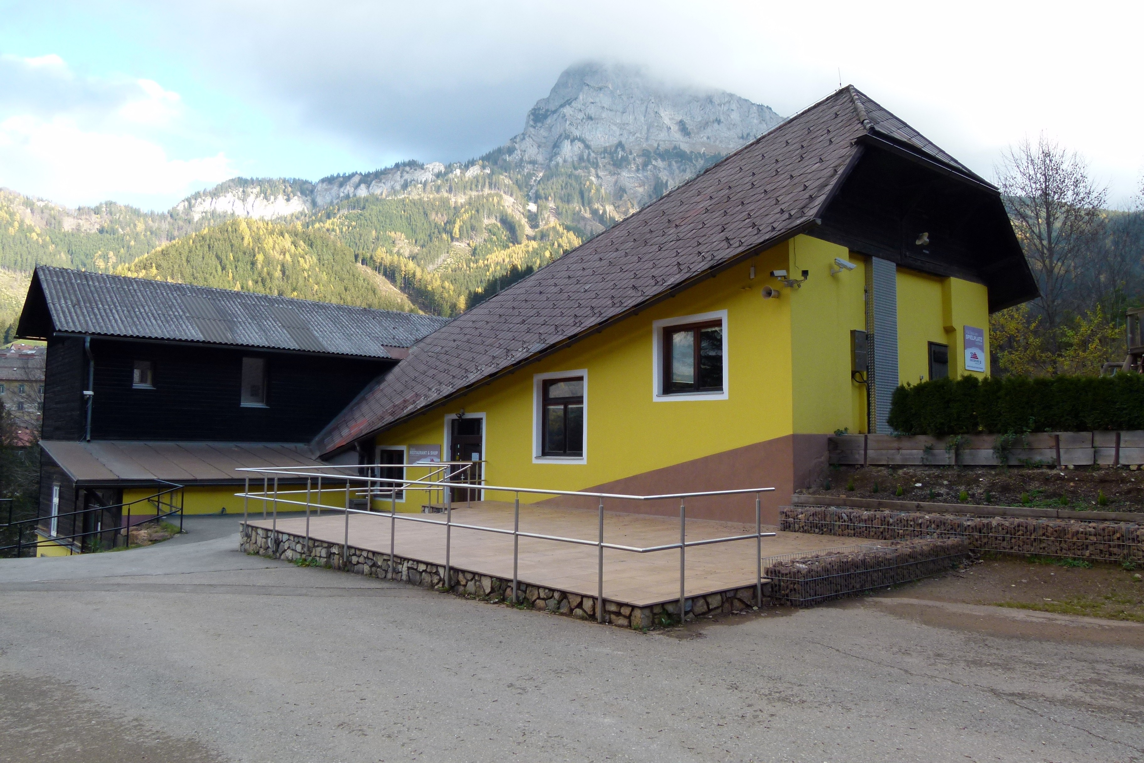 In der ehemaligen Talstation befindet sich das Besucherzentrum. Von hier aus werden in der Saison die verschiedenen Führungen angeboten.