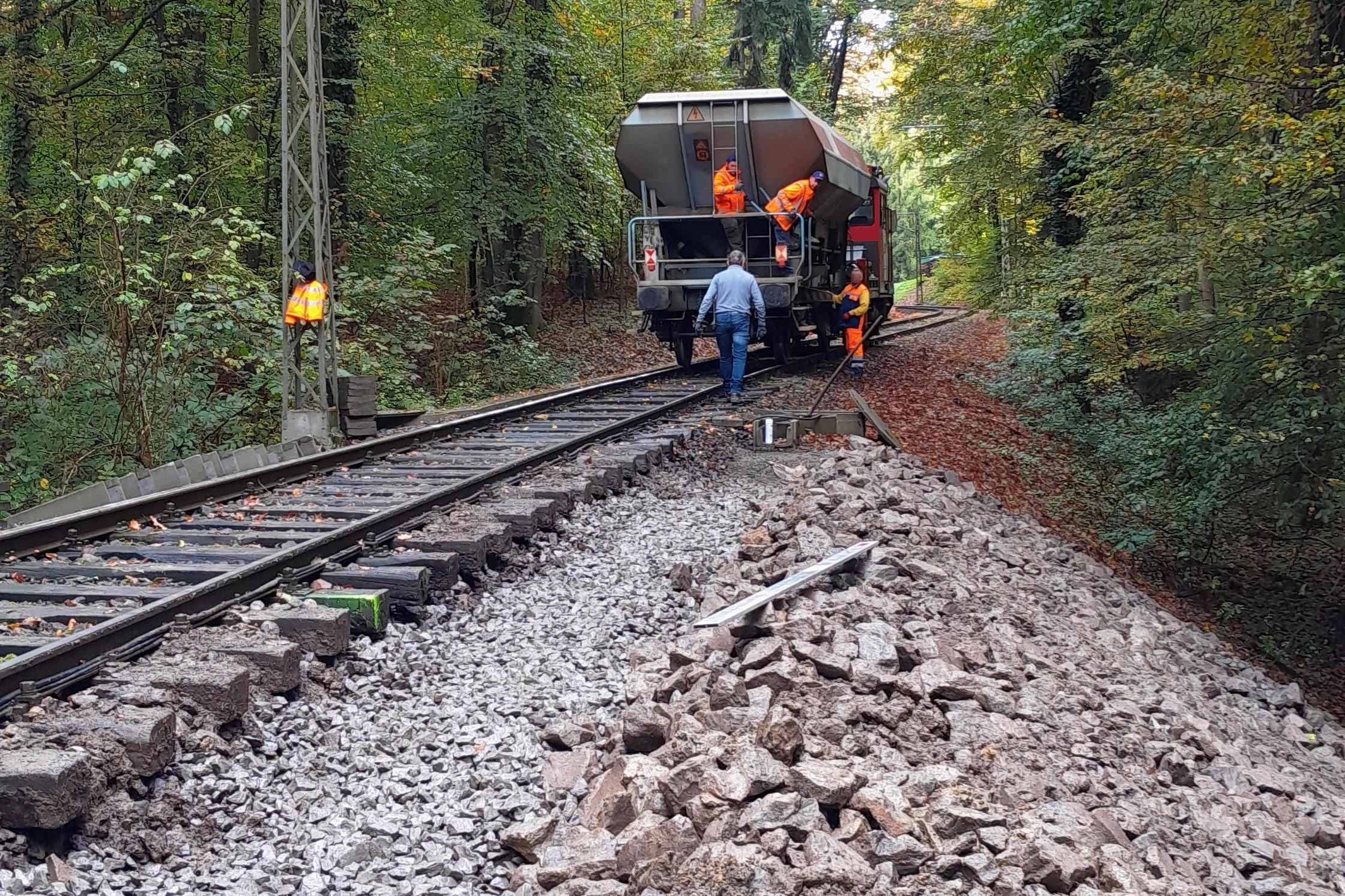 Nach einem heftigen Unwetter werden dringende Reparaturen an der Gleichenbergerbahn durchgeführt, um den Bahnverkehr wiederherzustellen.