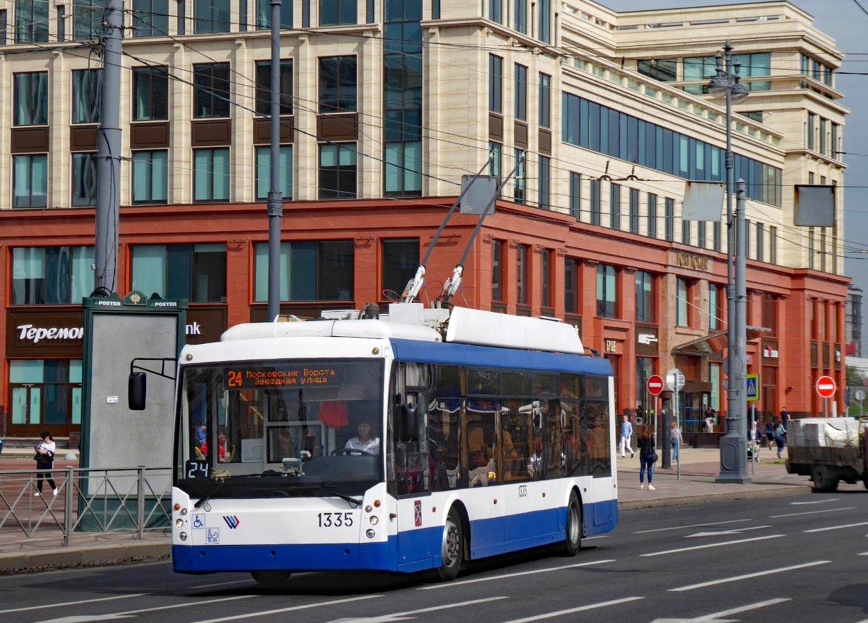 St. Petersburg Obusse, Oberleitungsbus 1335 (Trolza / 2015) auf der Linie 24 in der Ligorsky Ave.