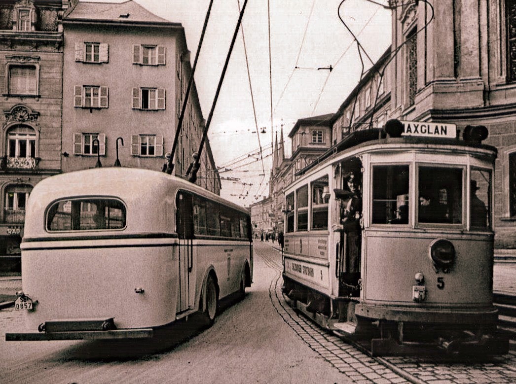 Obus-Archäologie, Am 5. November 1940 wurde die einzige Salzburger Straßenbahnlinie zu Gunsten des Obus eingestellt - Foto: Stadtarchiv Salzburg