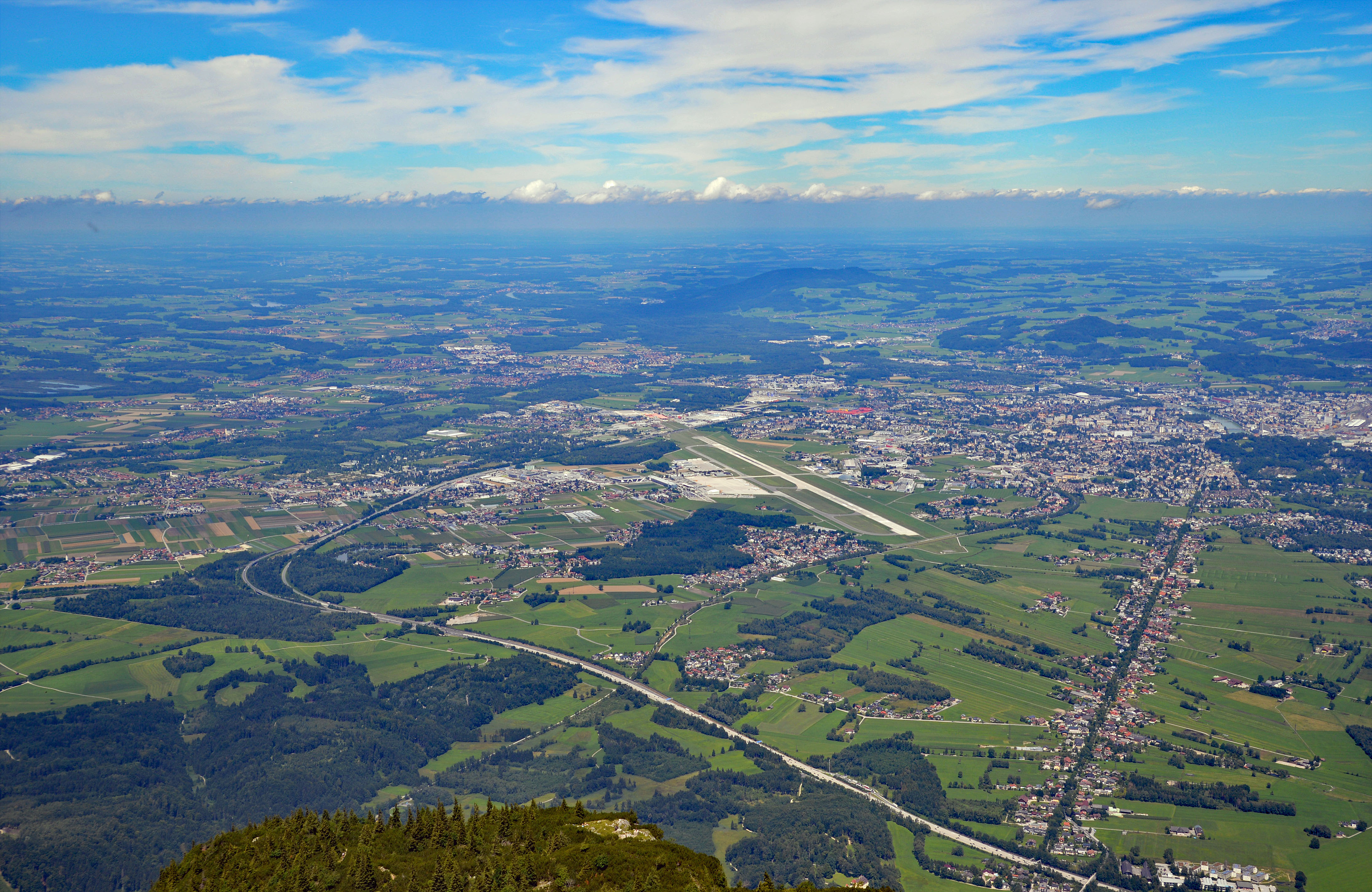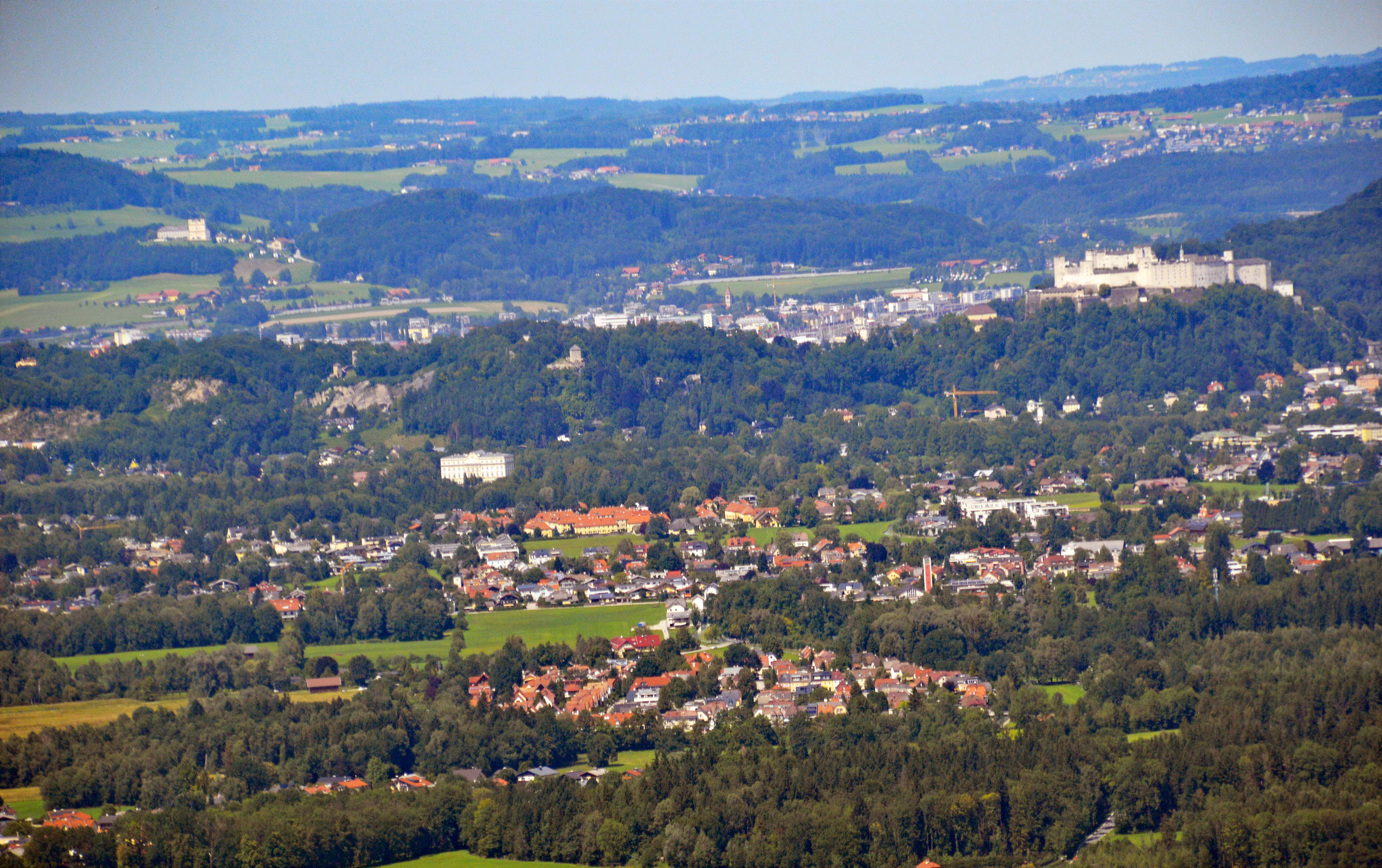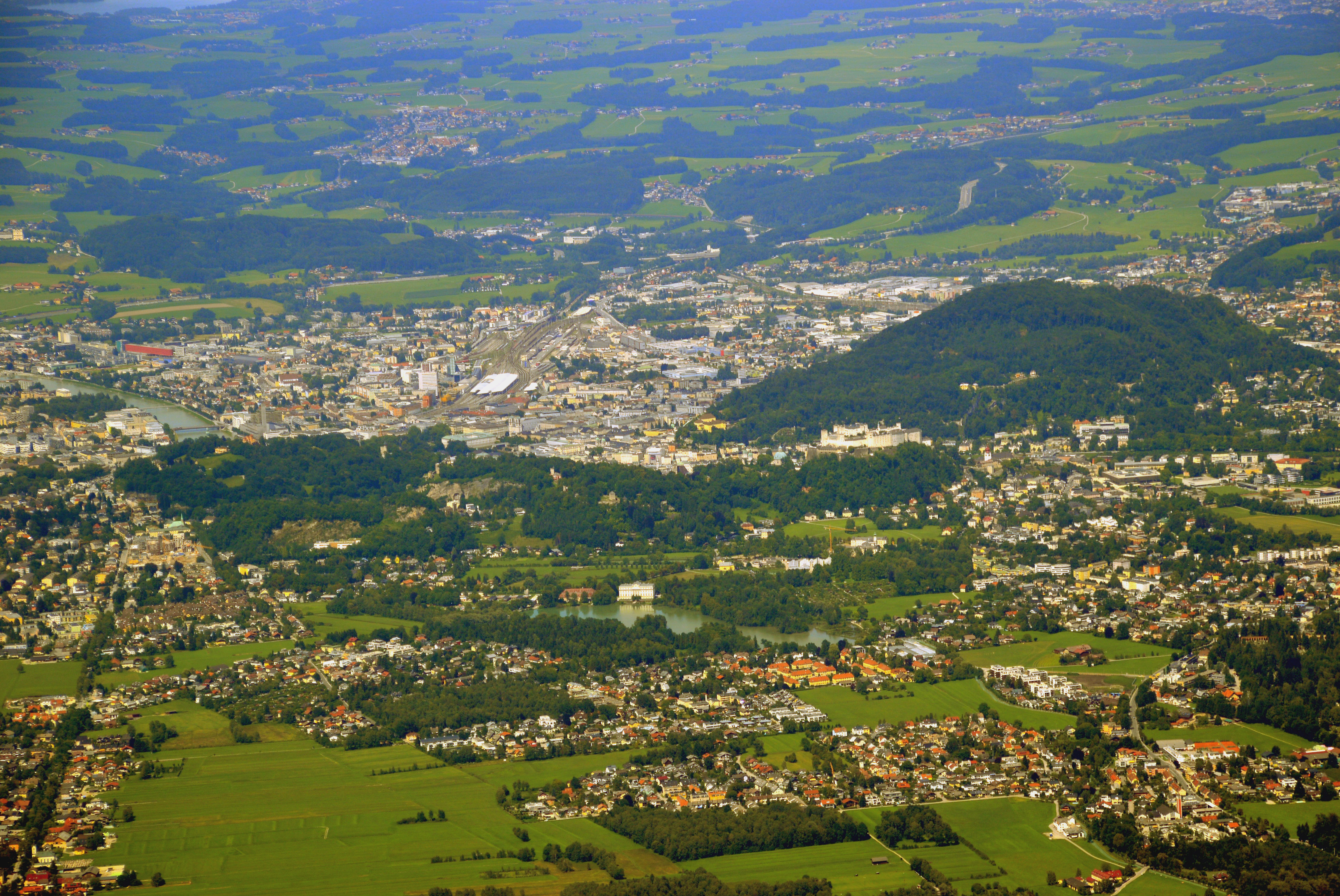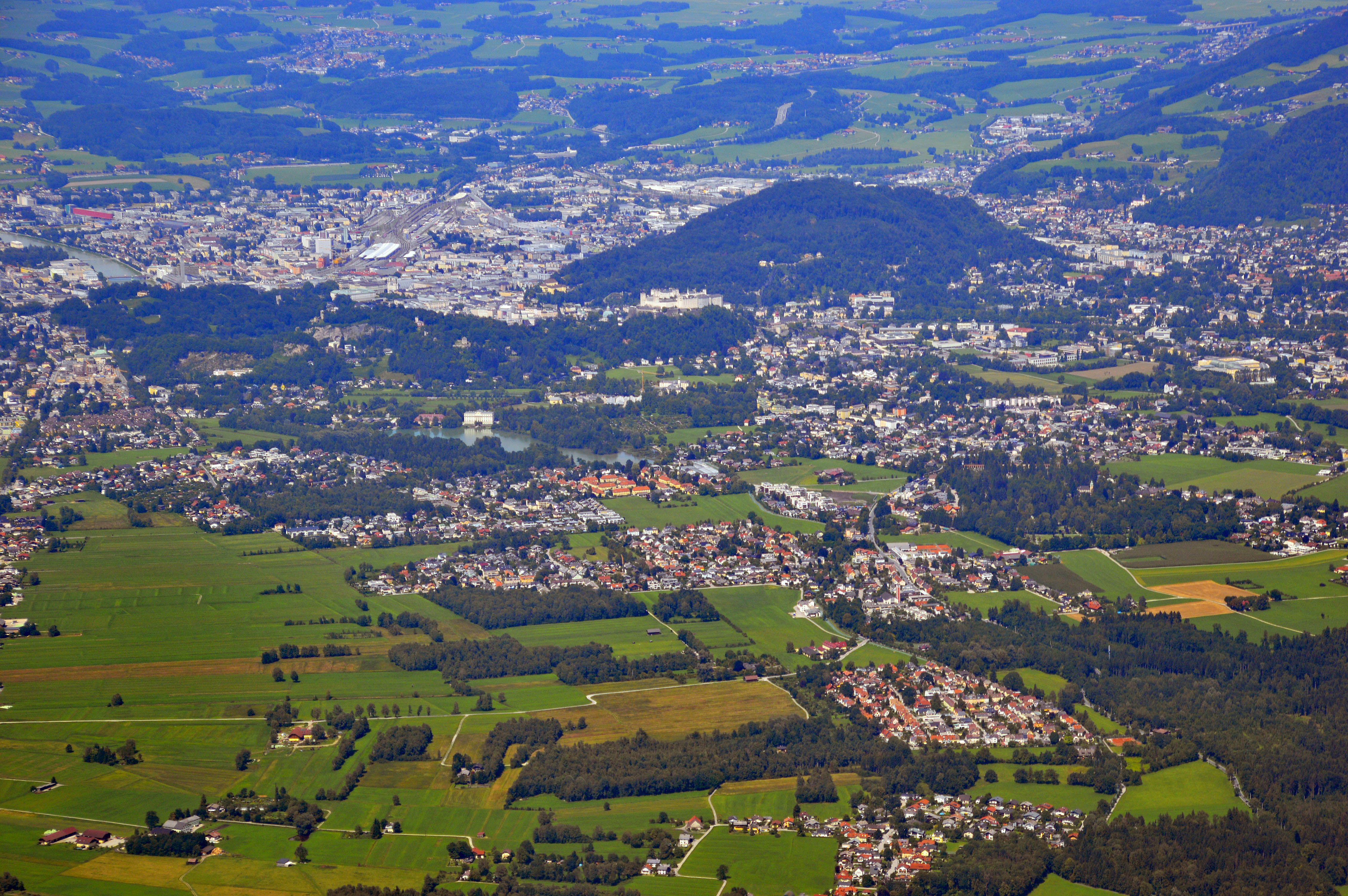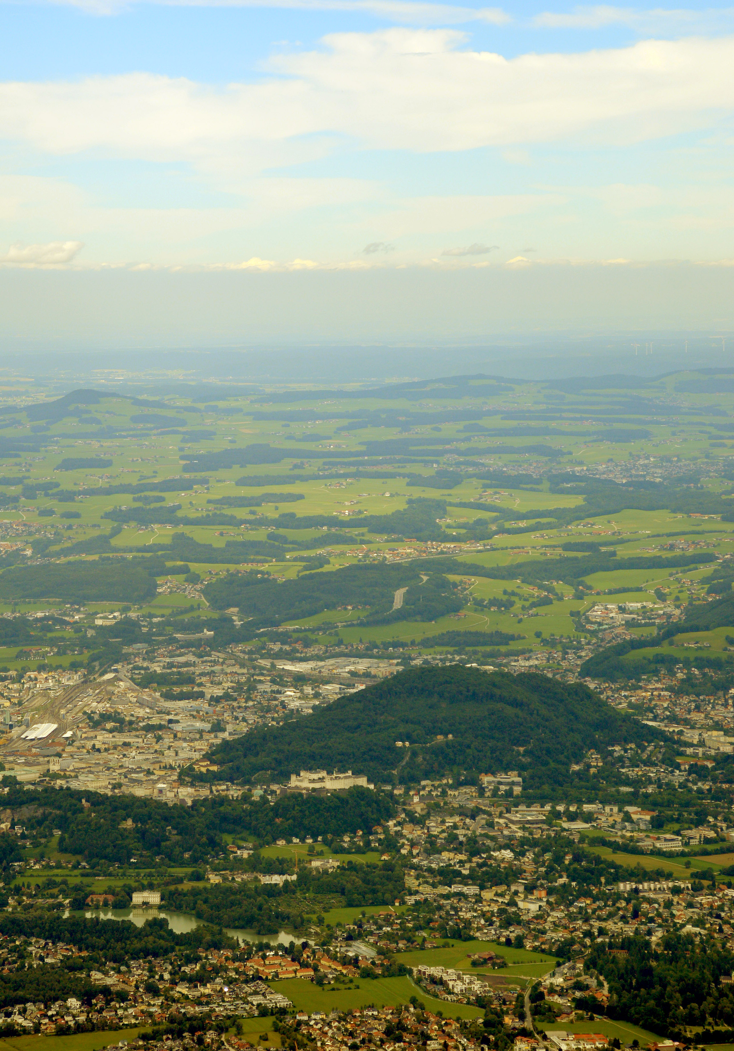 Salzburg von oben keine Luftbildaufnahmen Stadtteile "aus der Luft" Abgasglocke über dem Salzburger Becken