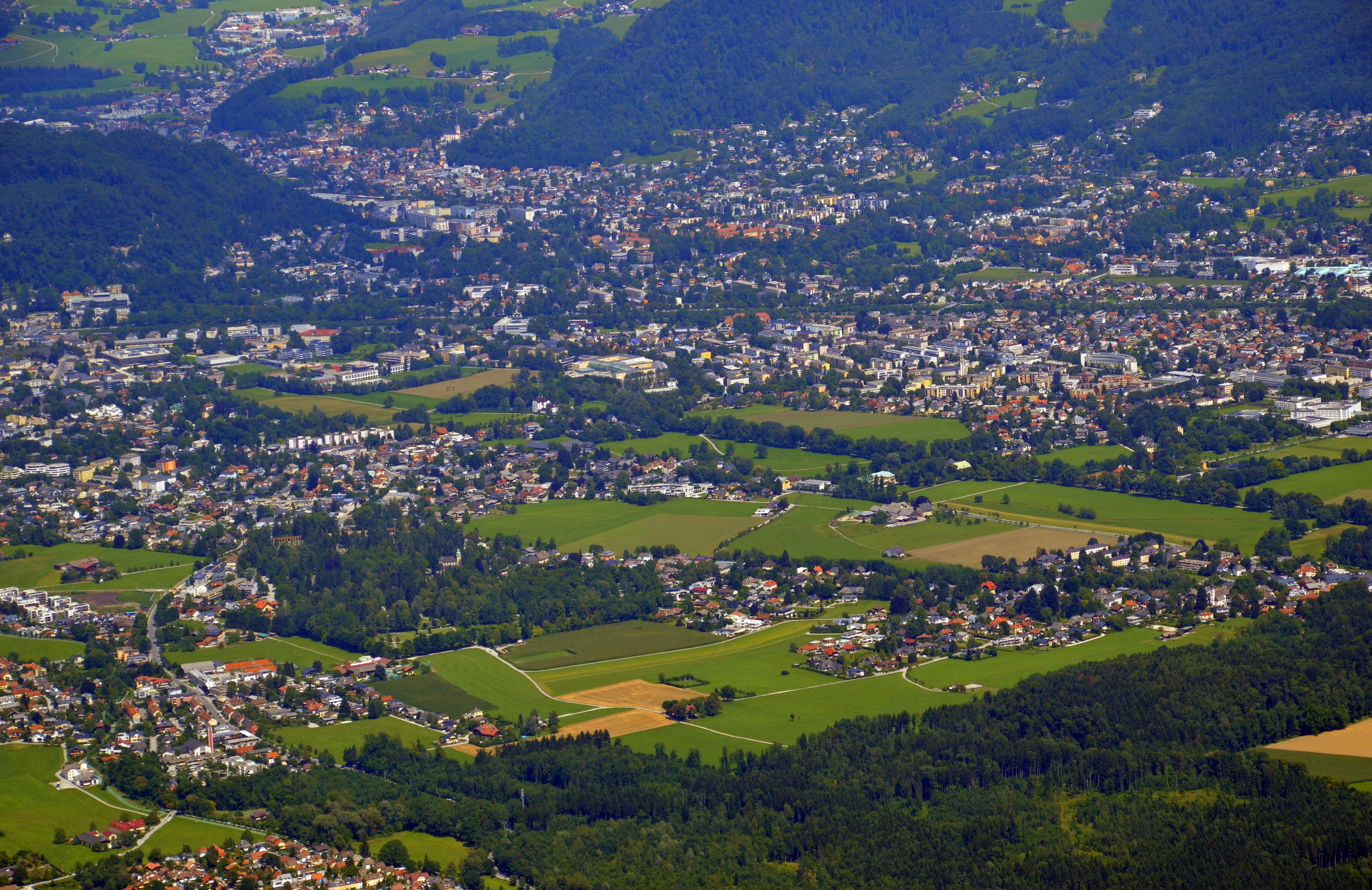 Salzburg von oben keine Luftbildaufnahmen Stadtteile "aus der Luft" Abgasglocke über dem...