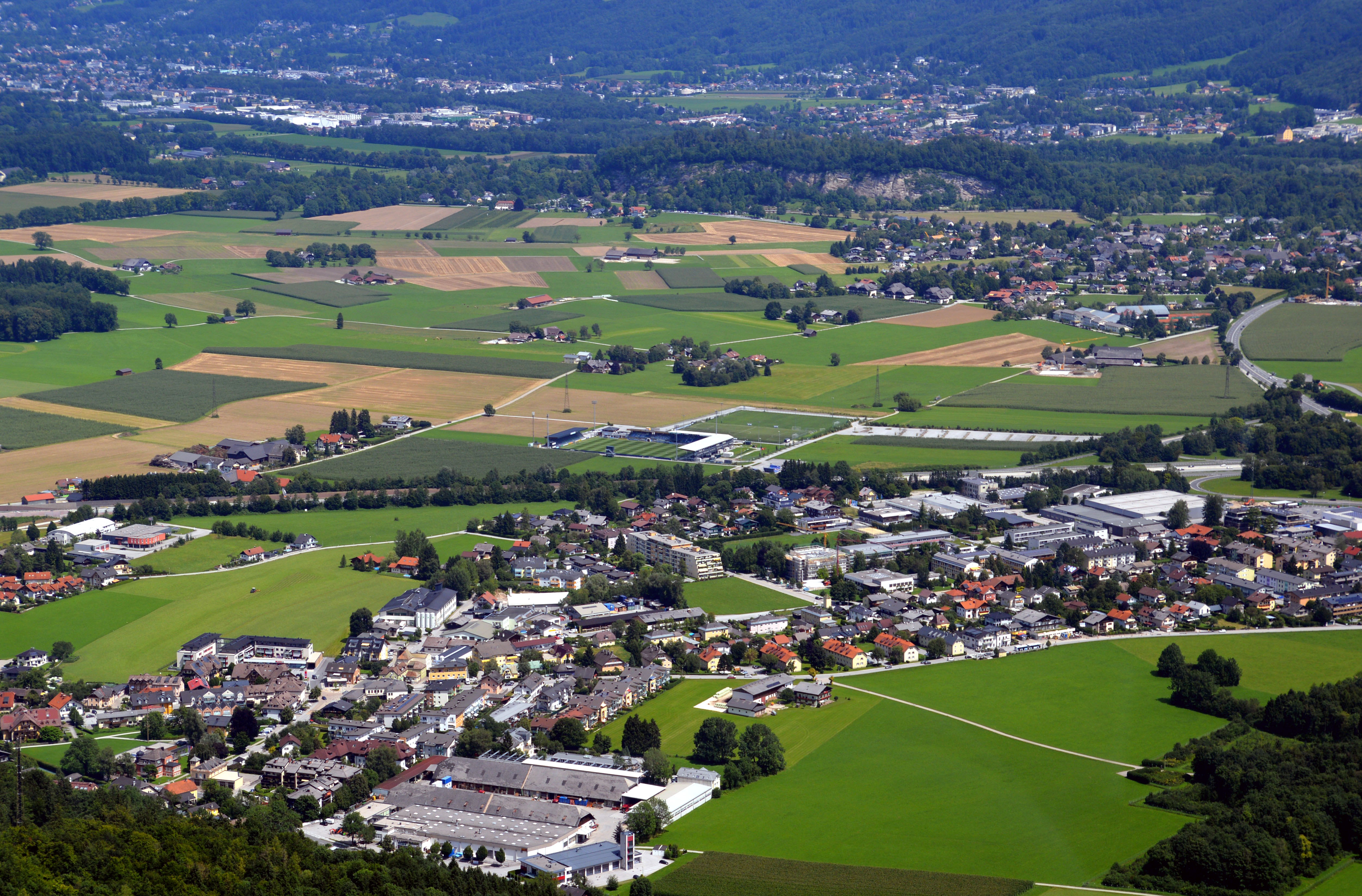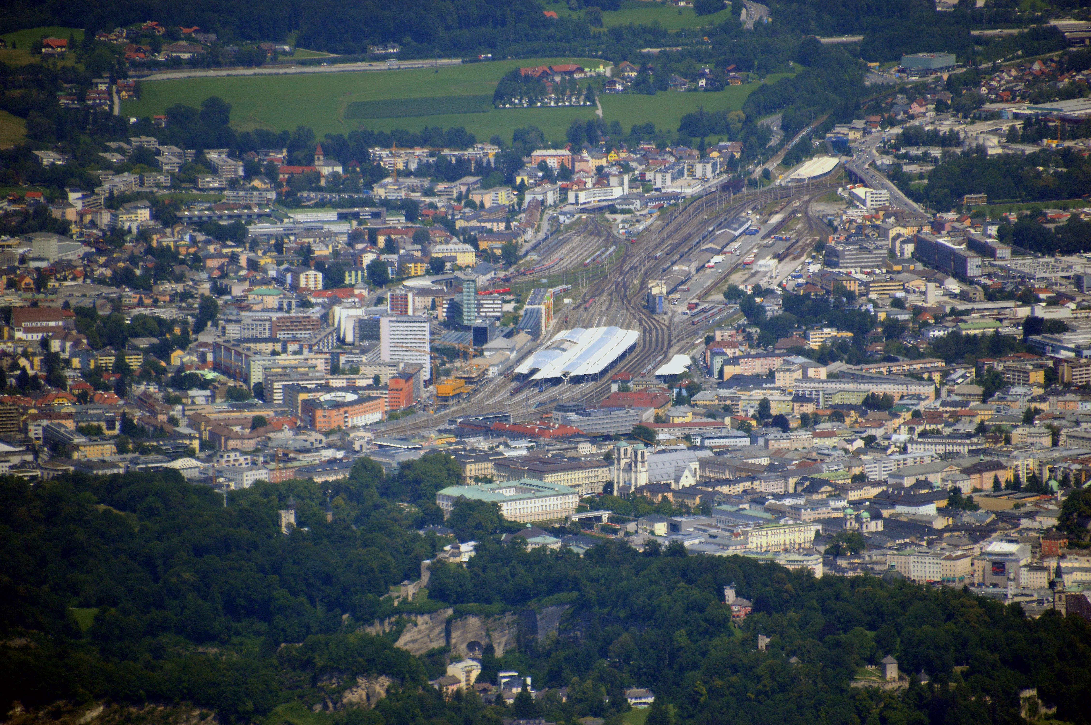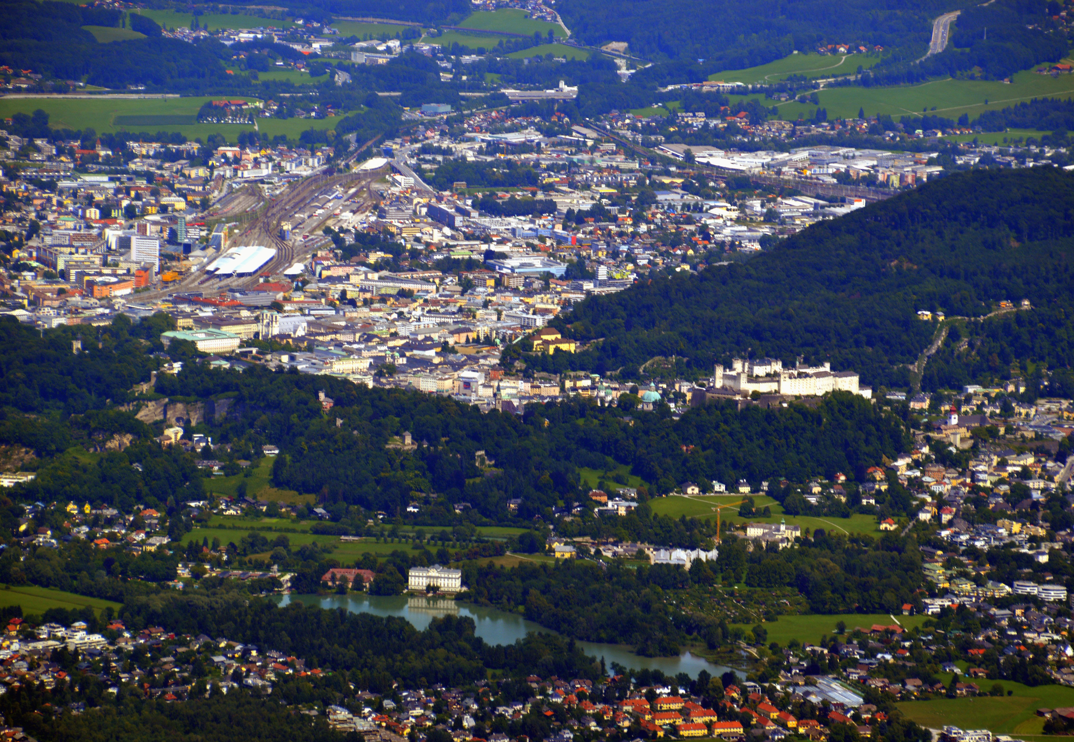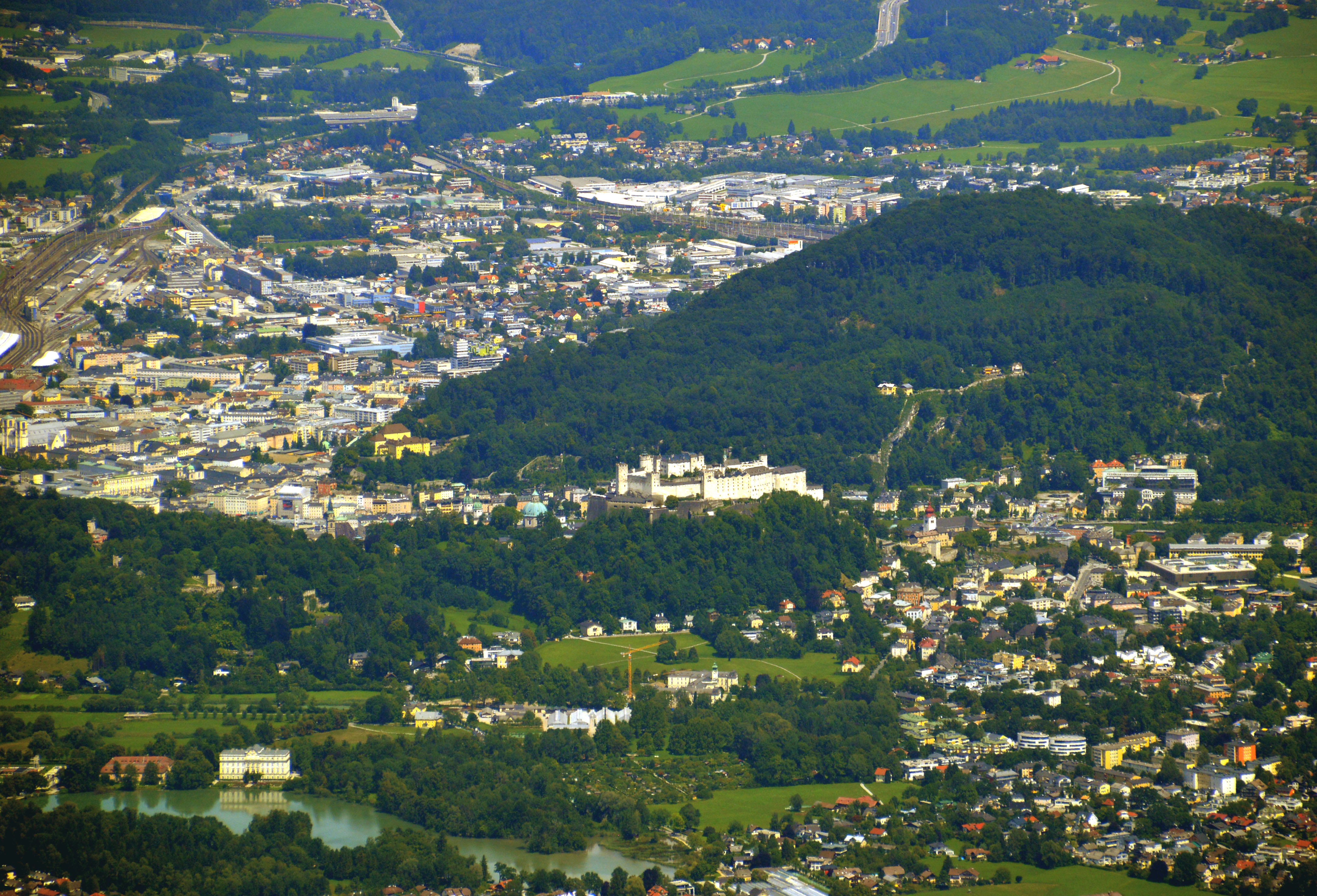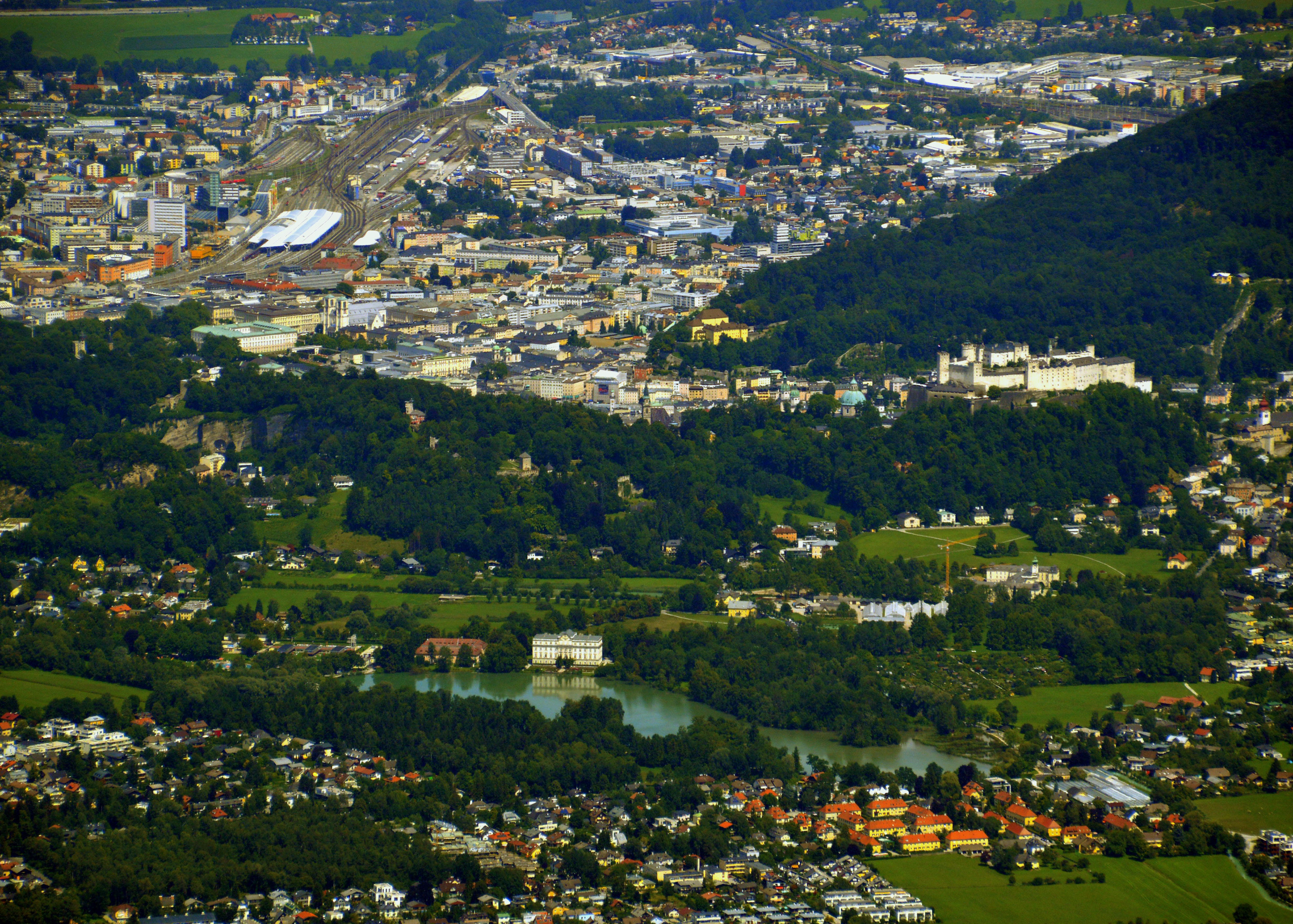 Salzburg von oben keine Luftbildaufnahmen Stadtteile "aus der Luft" Abgasglocke über dem...