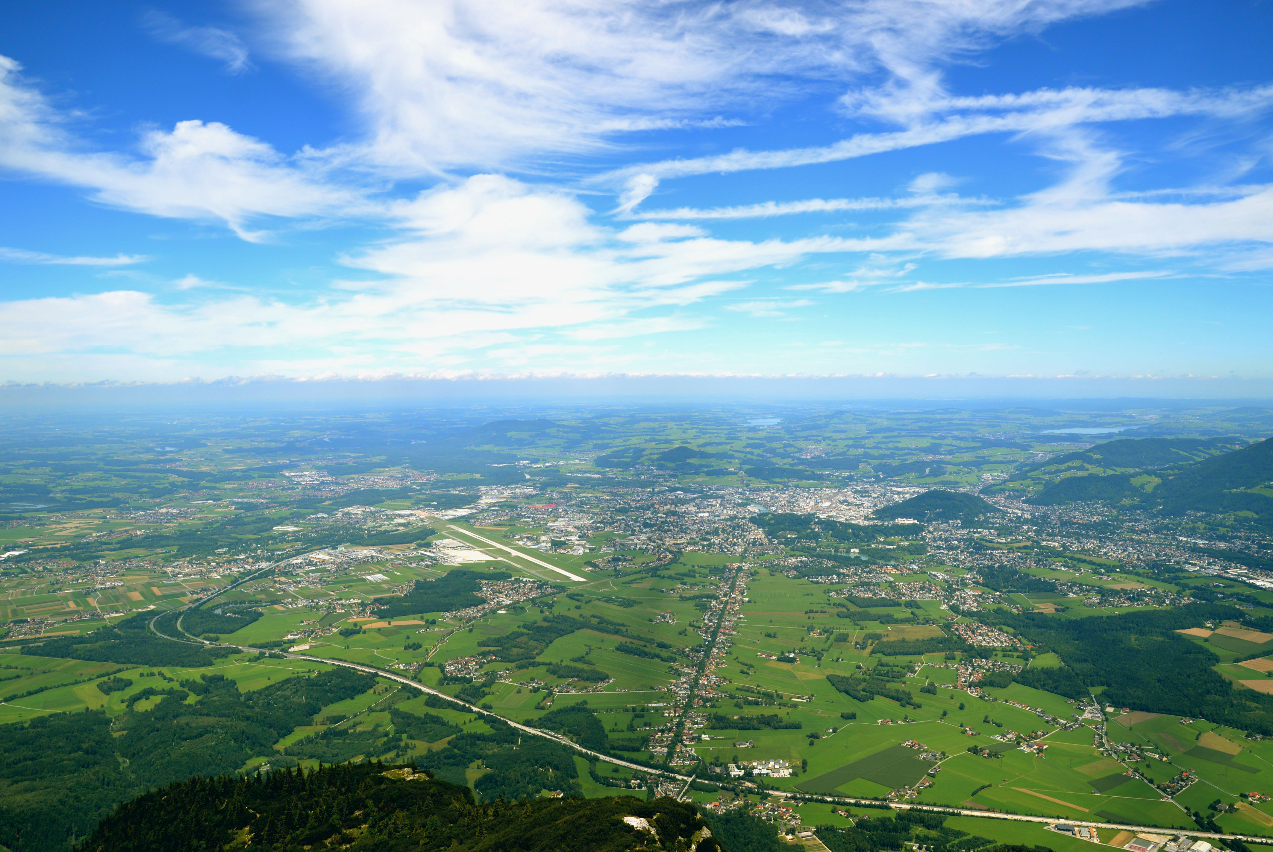 Salzburg von oben keine Luftbildaufnahmen Stadtteile "aus der Luft" Abgasglocke über dem Salzburger Becken