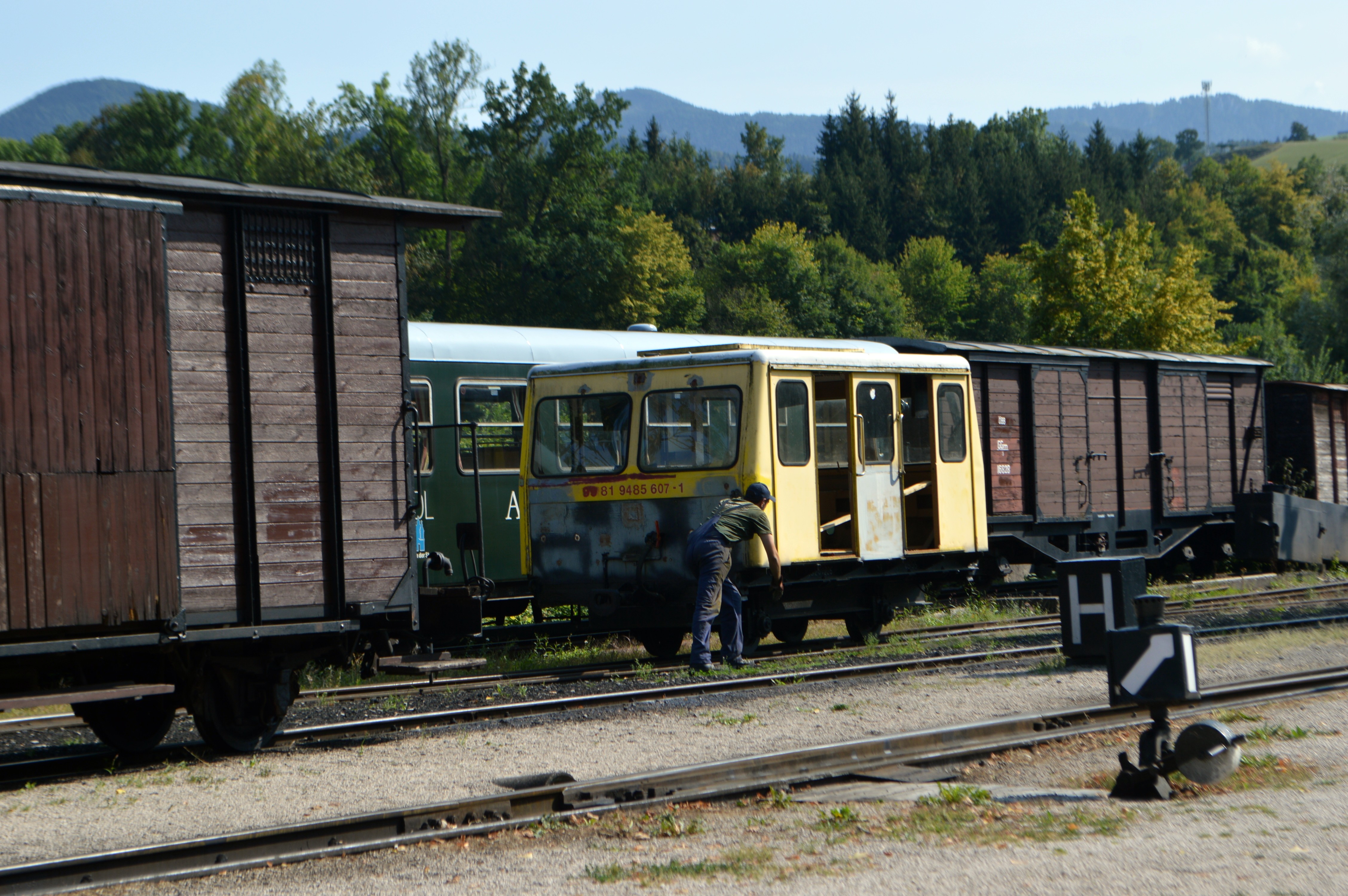 Sonderzüge und Fahrpark der Museumsbahn Steyrtalbahn im Bahnhof Grünburg.