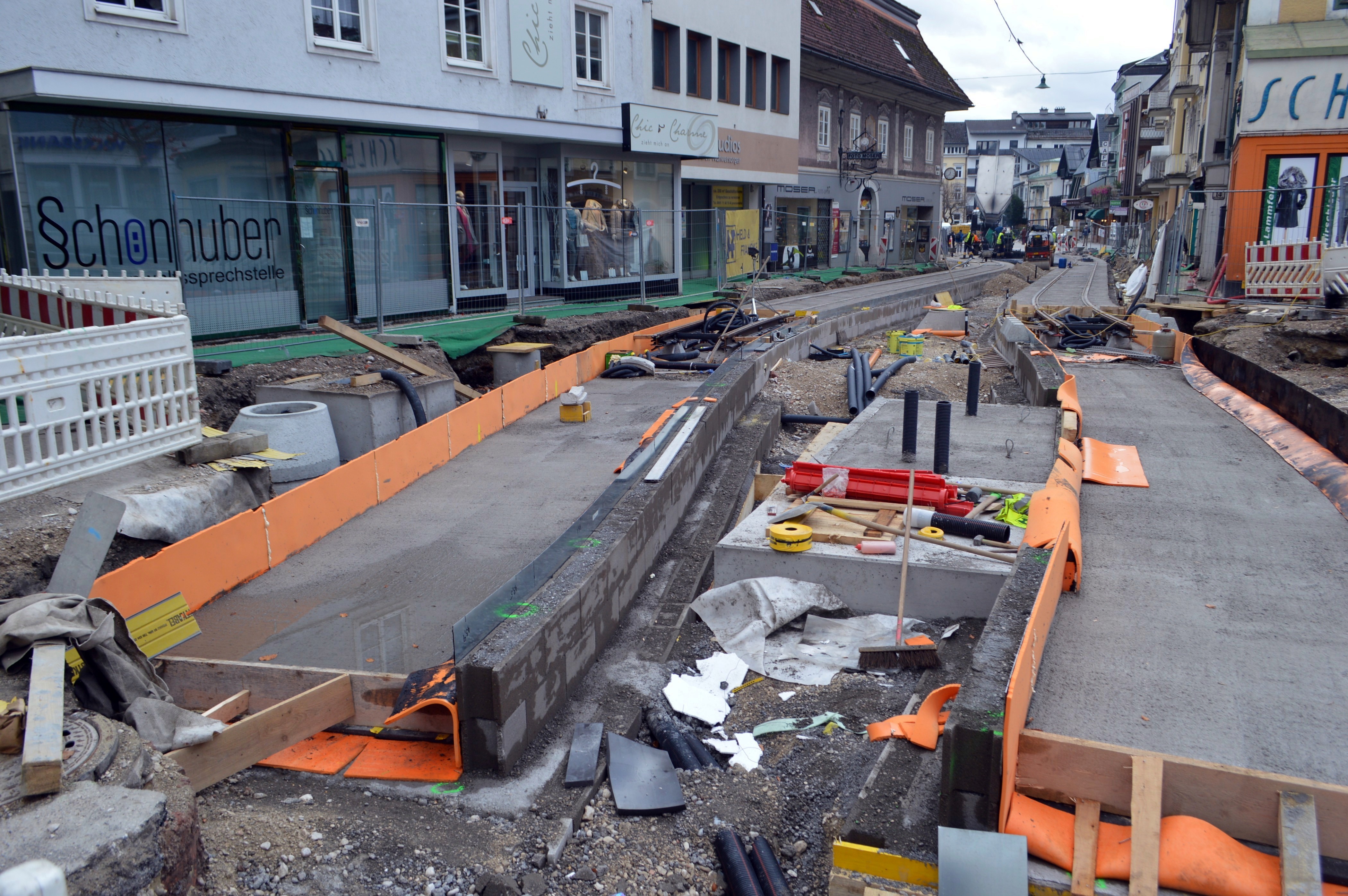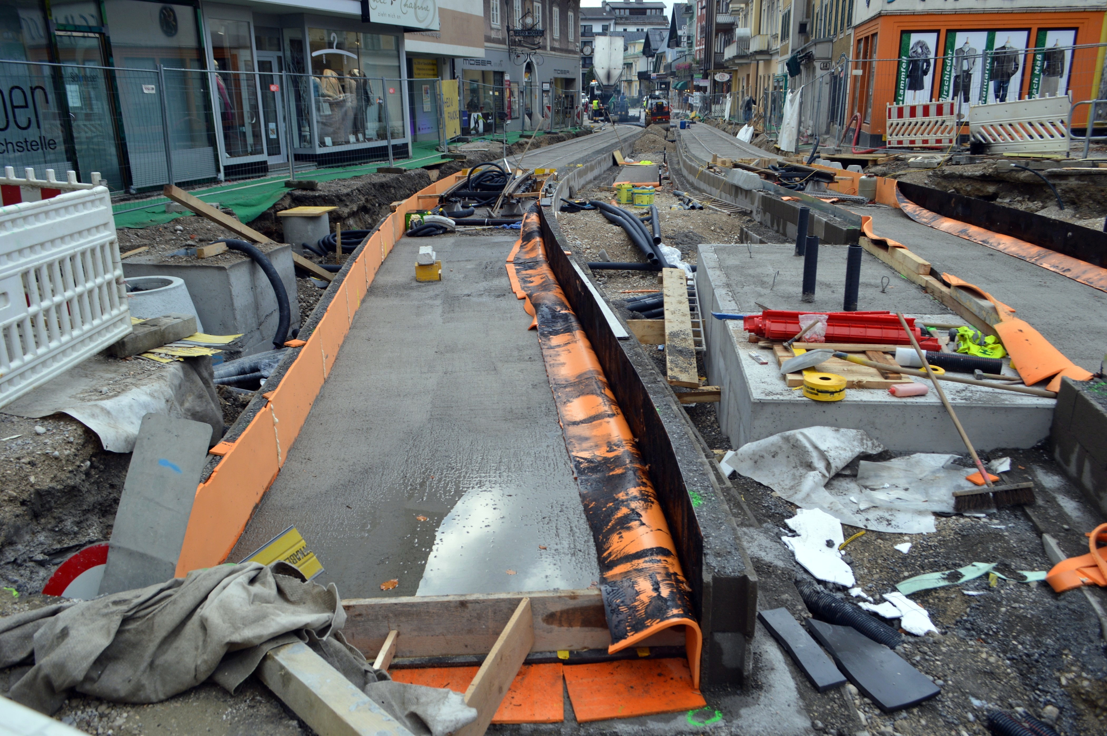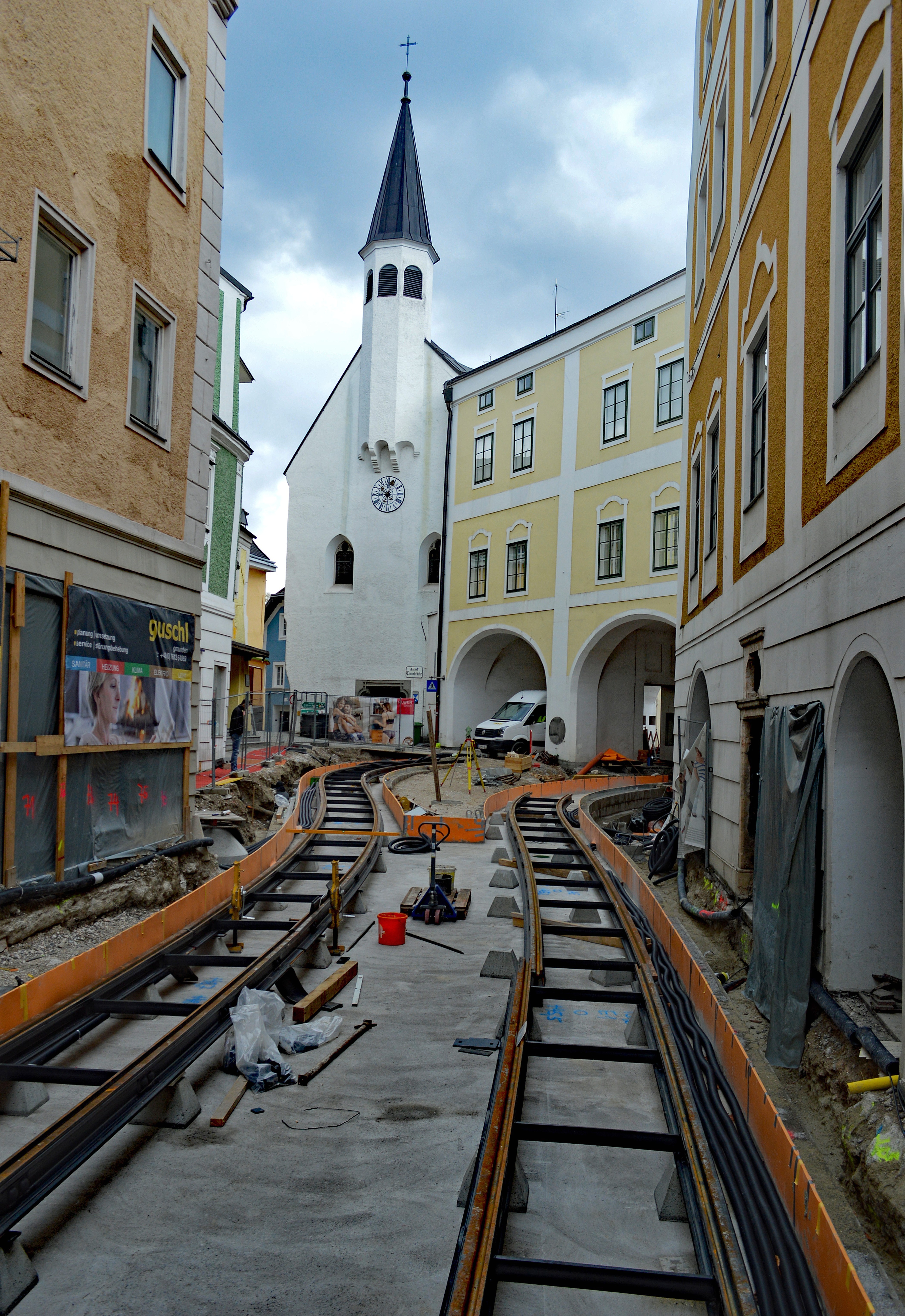 Bau der Traunseetram in Gmunden