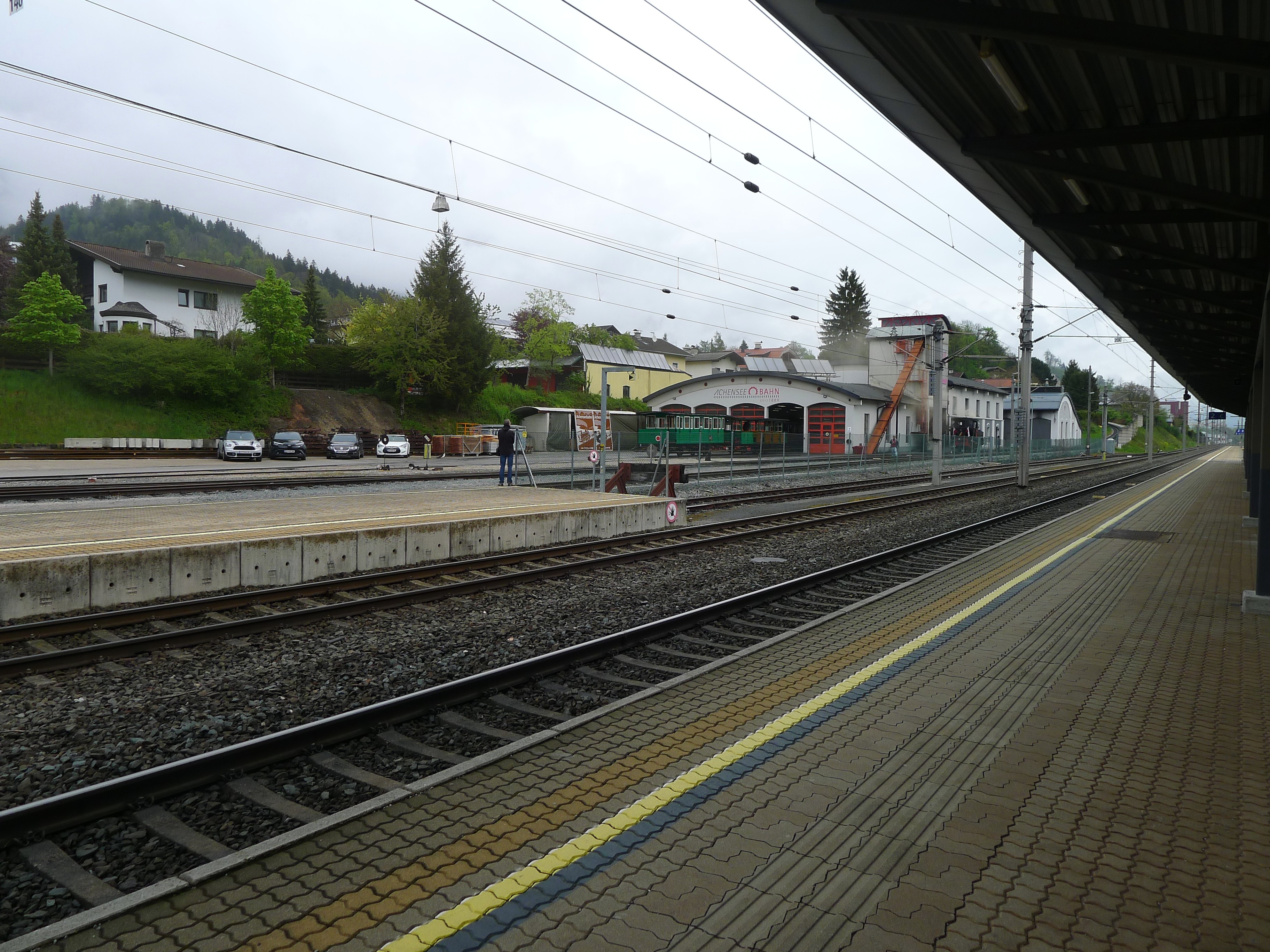 Bahnhof Jenbach mit der Remise der Achenseebahn.
