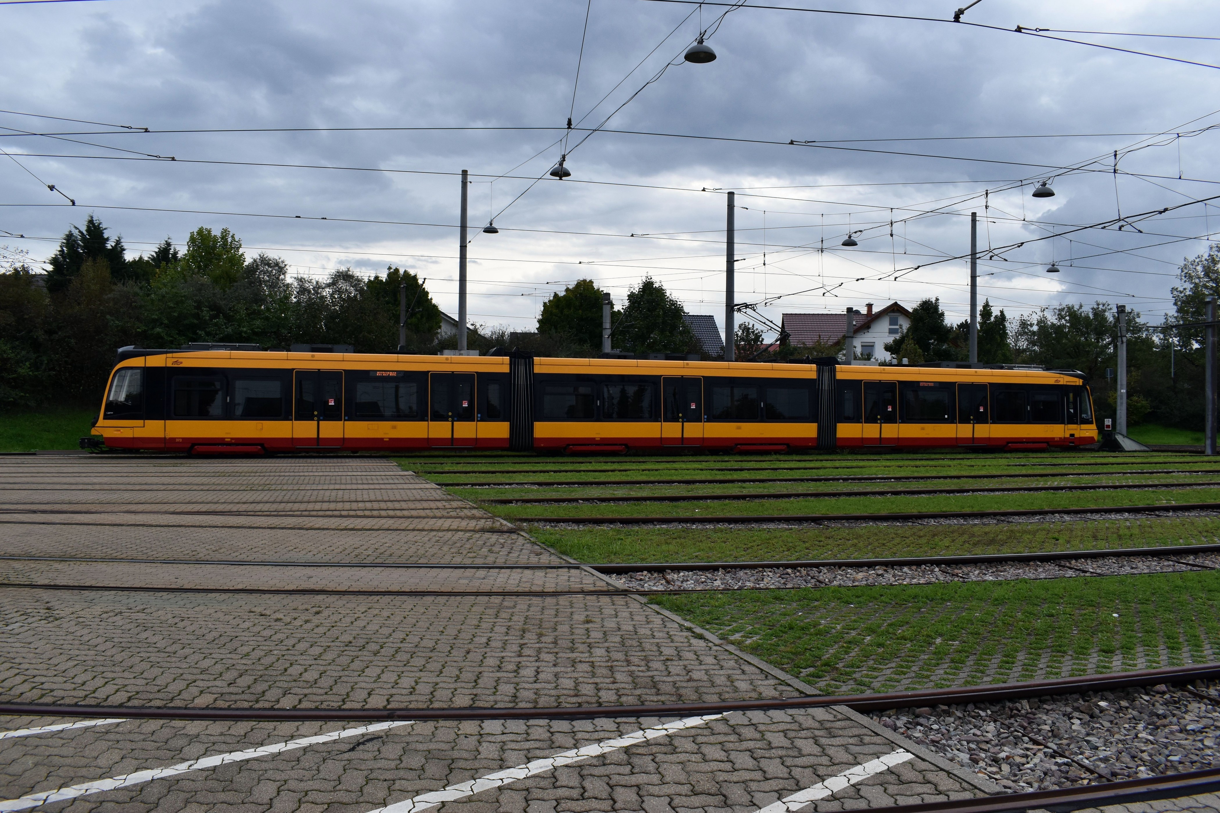 Das "Karlsruher Modell" - Die Verknüpfung zwischen Stadtbahn und Eisenbahn, seit etwa 2000 auch als Tram-Train bezeichnet. Hochstetten, AVG, Linien S1/S11, Anschluß zum regionalen Busverkehr.