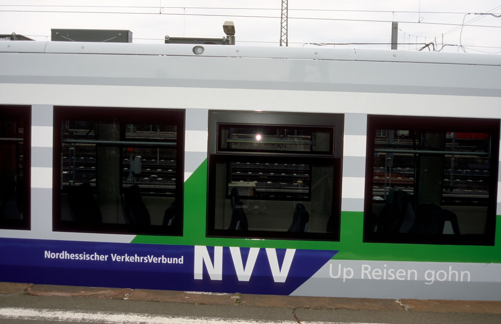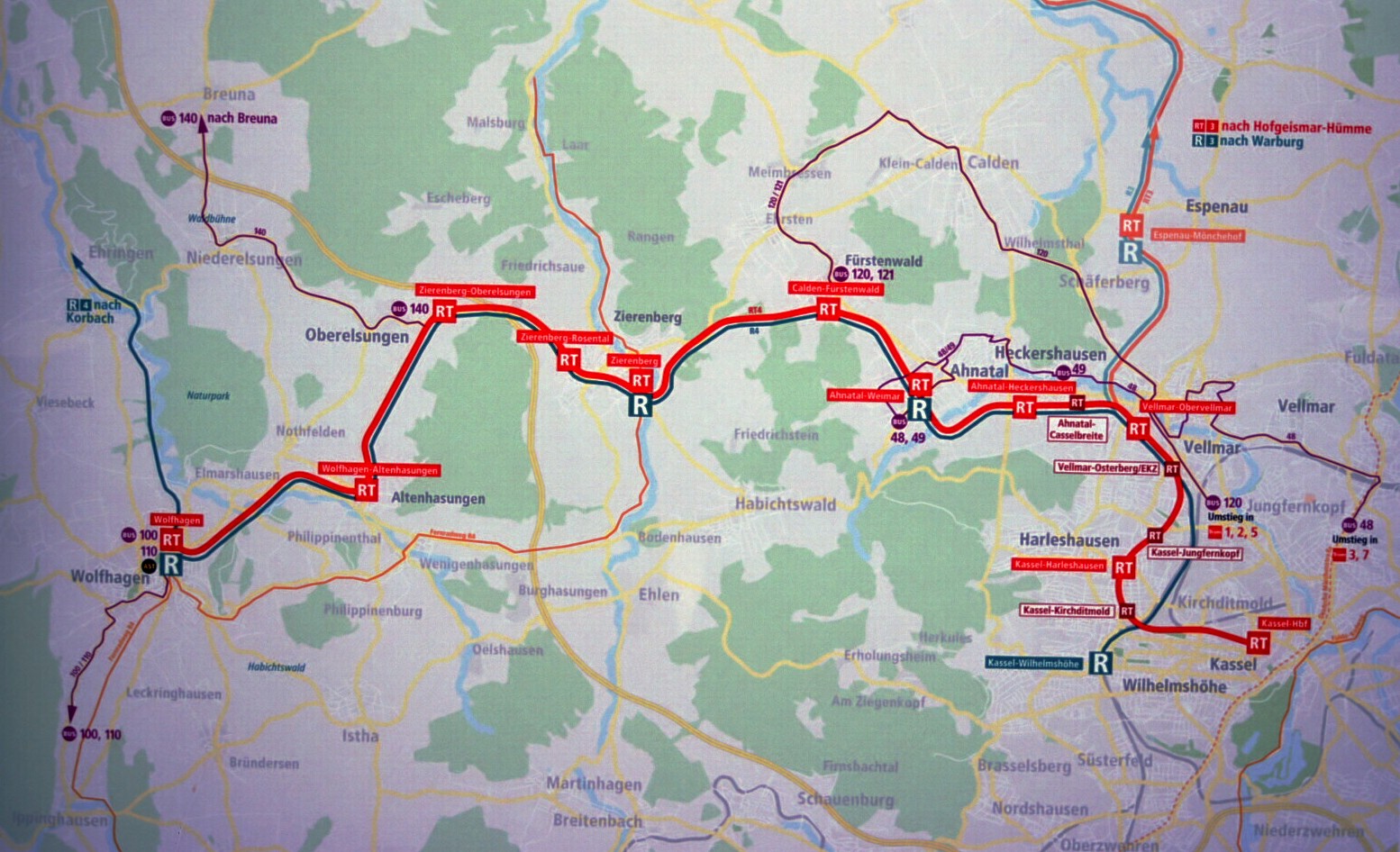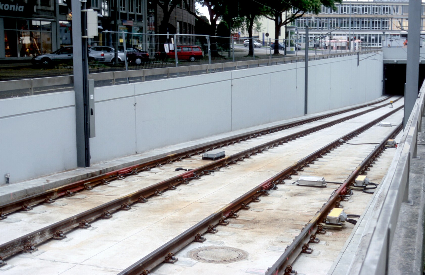 Die RegioTram genannte Regionalstadtbahn Kassel fährt unter dem Hauptbahnhofsgebäude von den DB-Eisenbahnstrecken ins innerstädtische Bahnnetz.