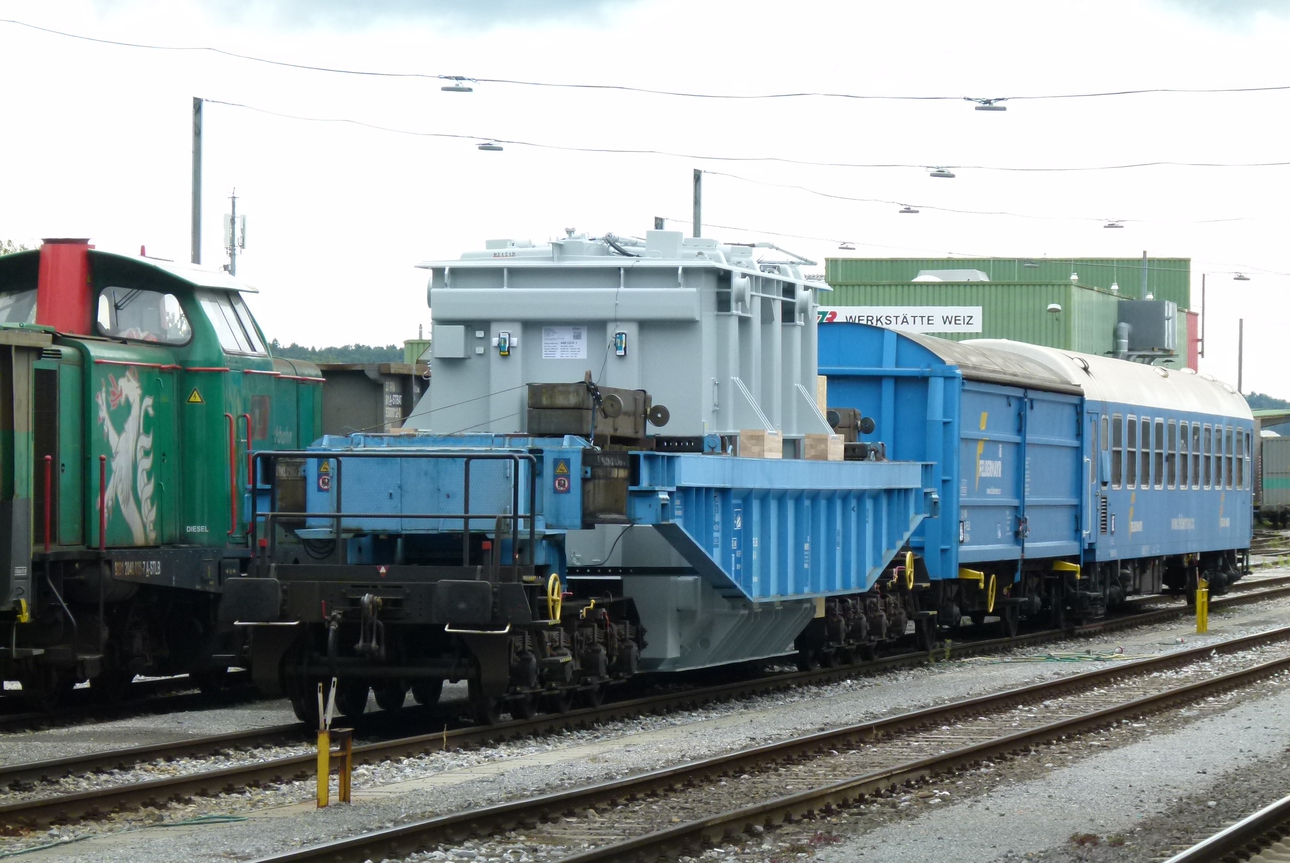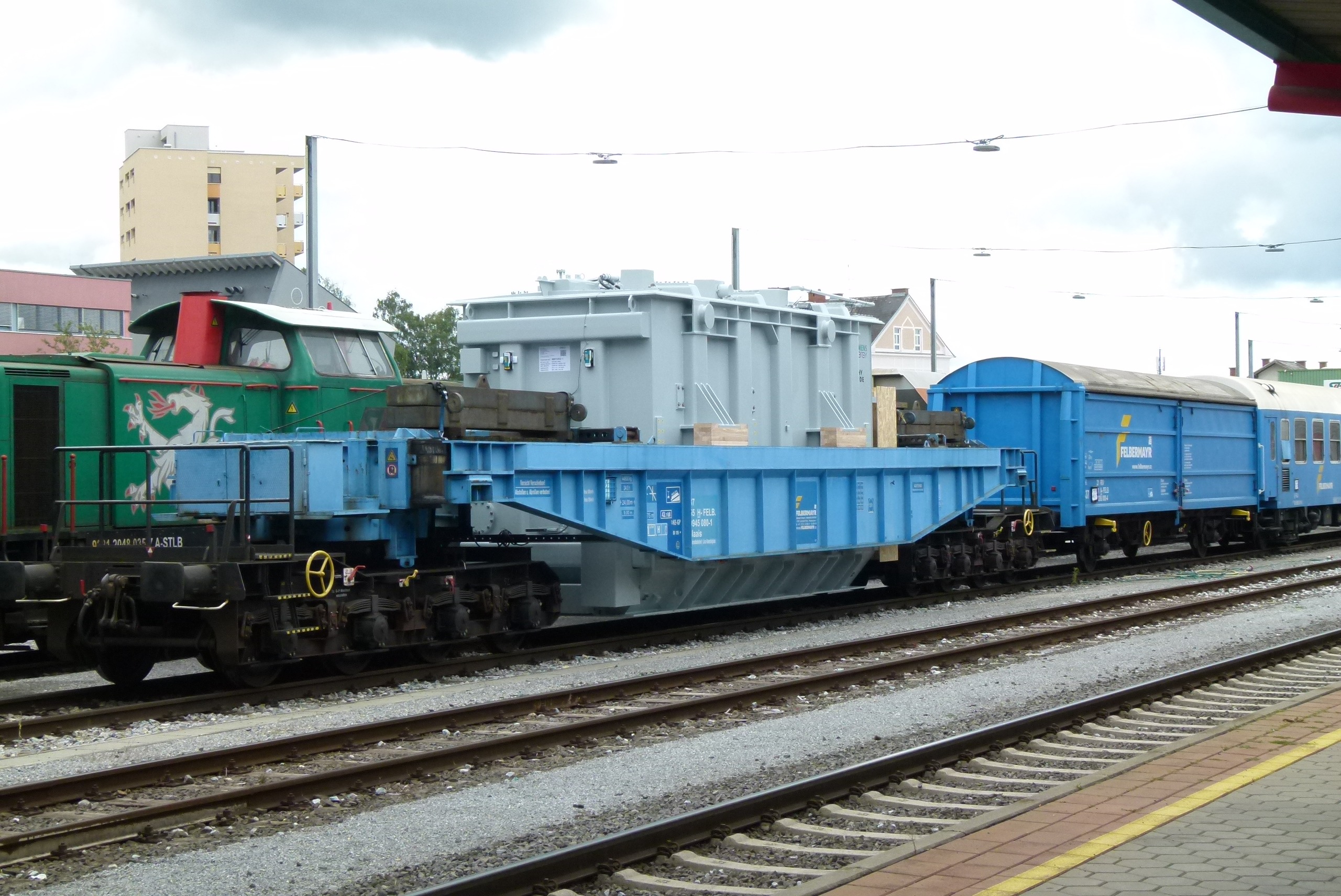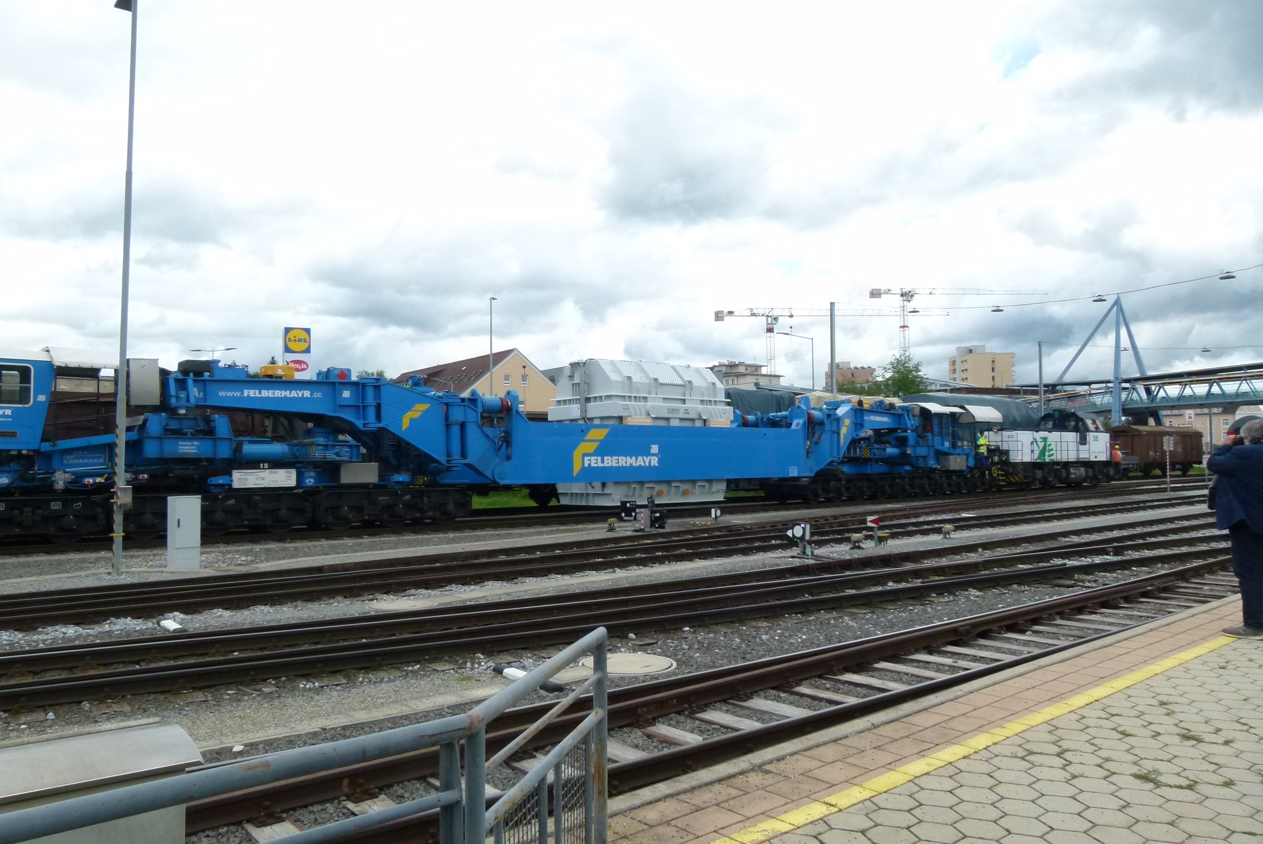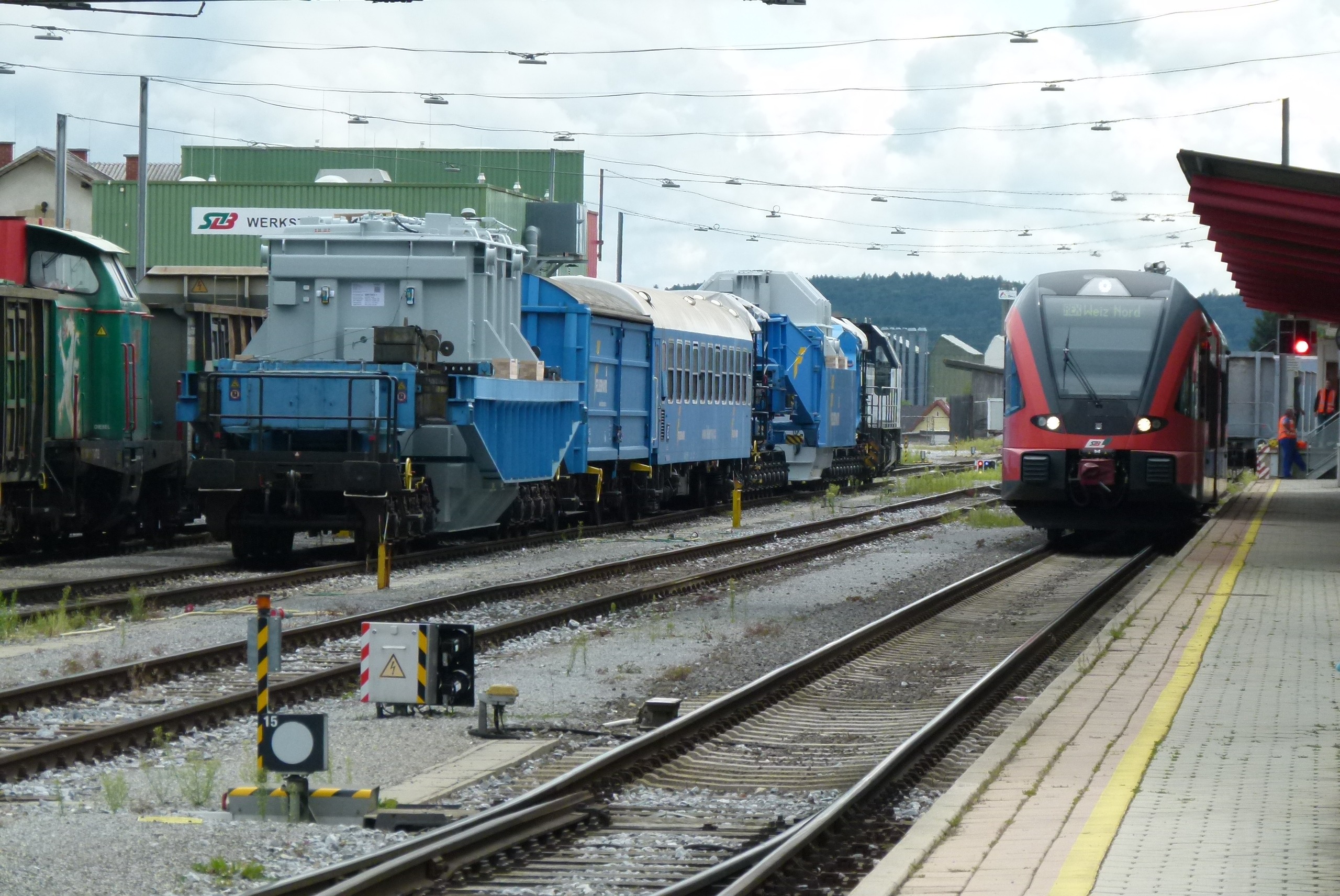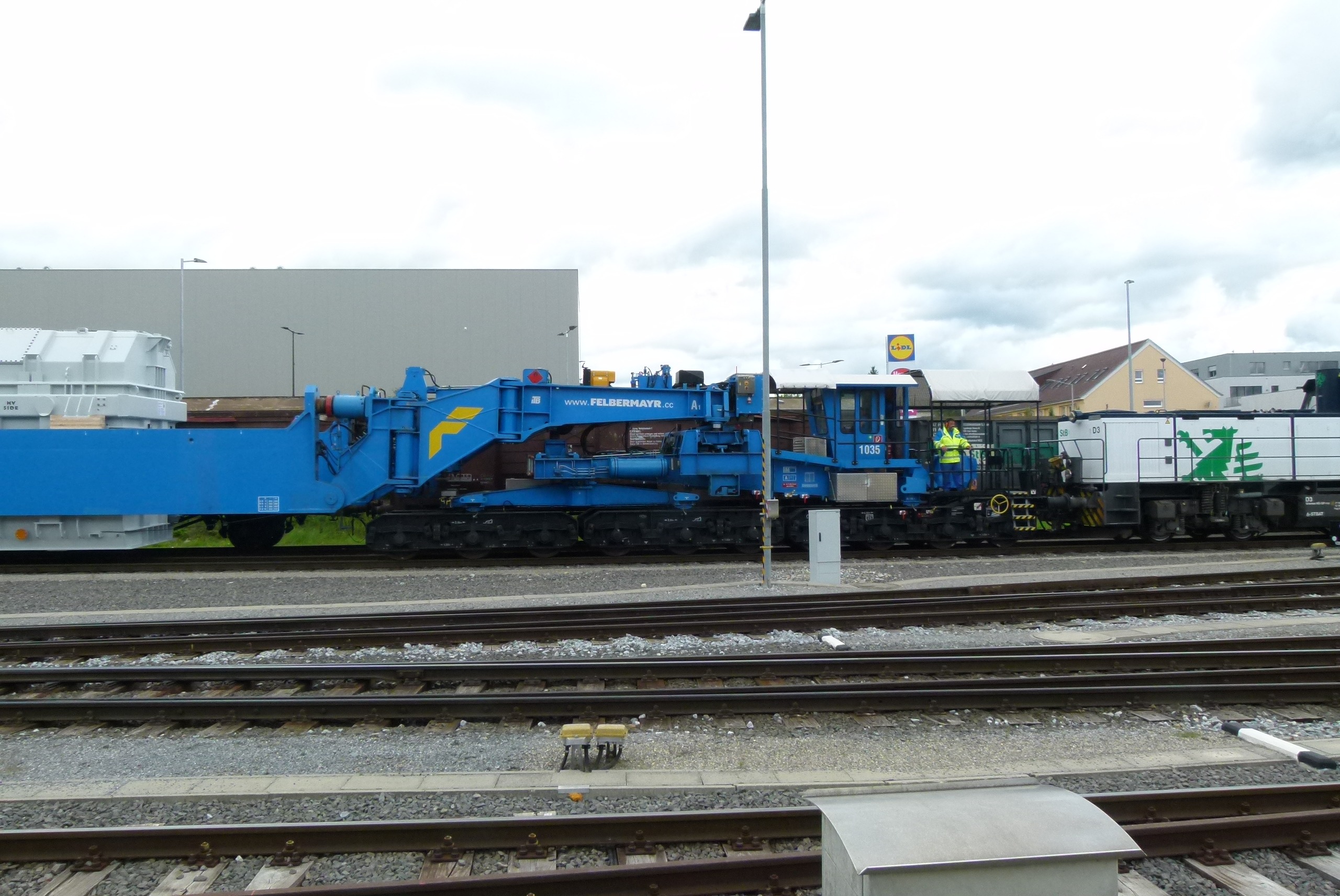 Schwertransportwagen Felbermayr im Bahnhof Weiz