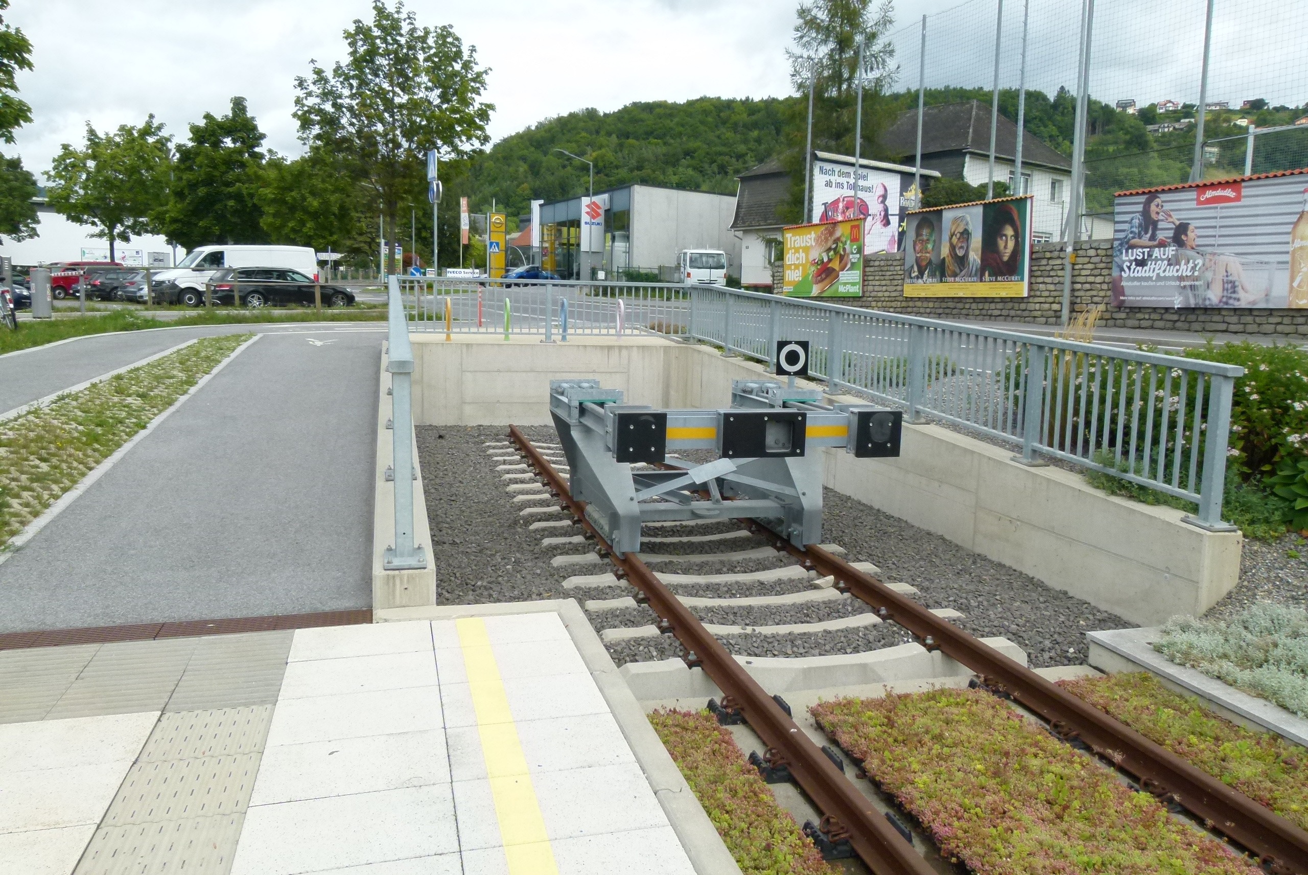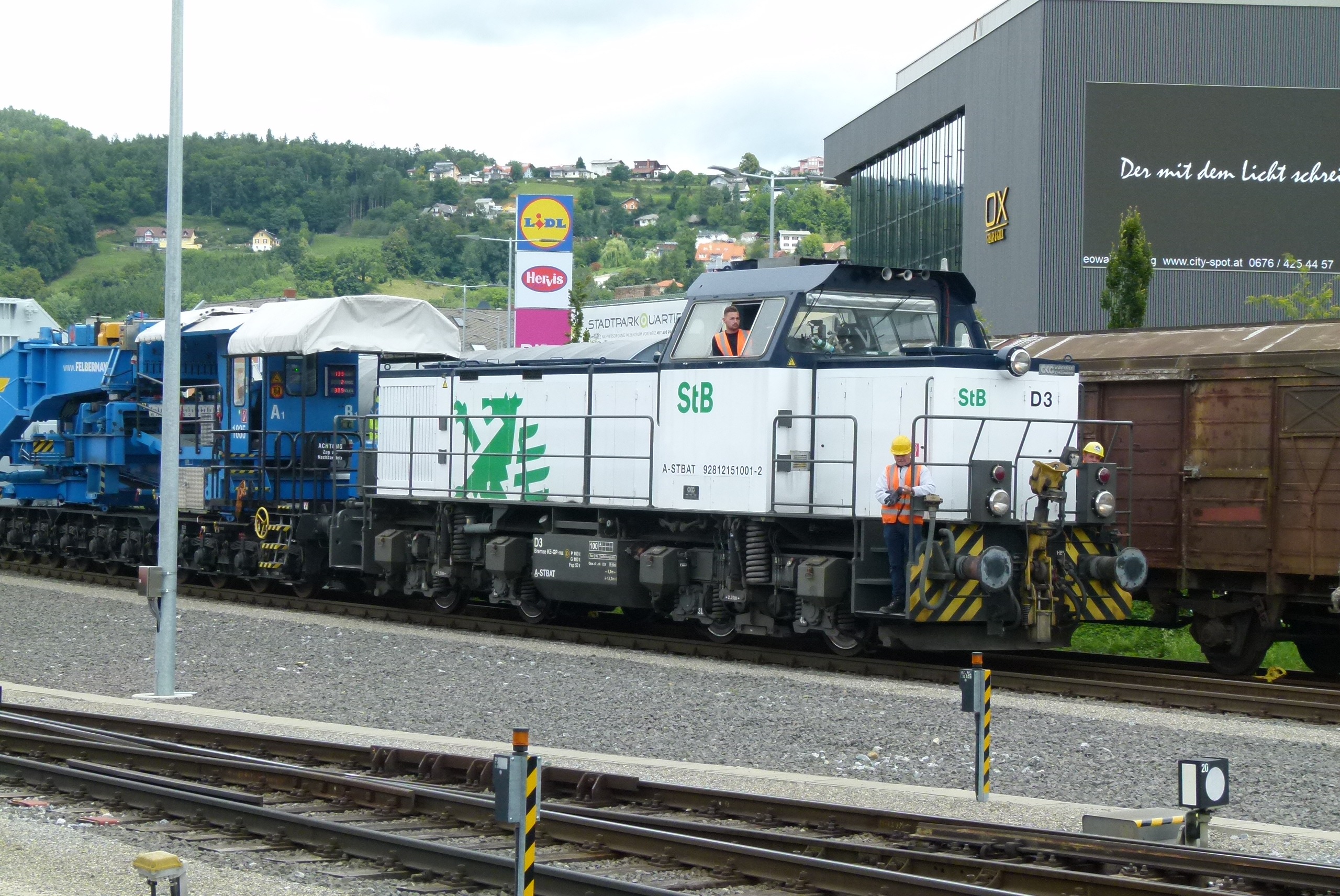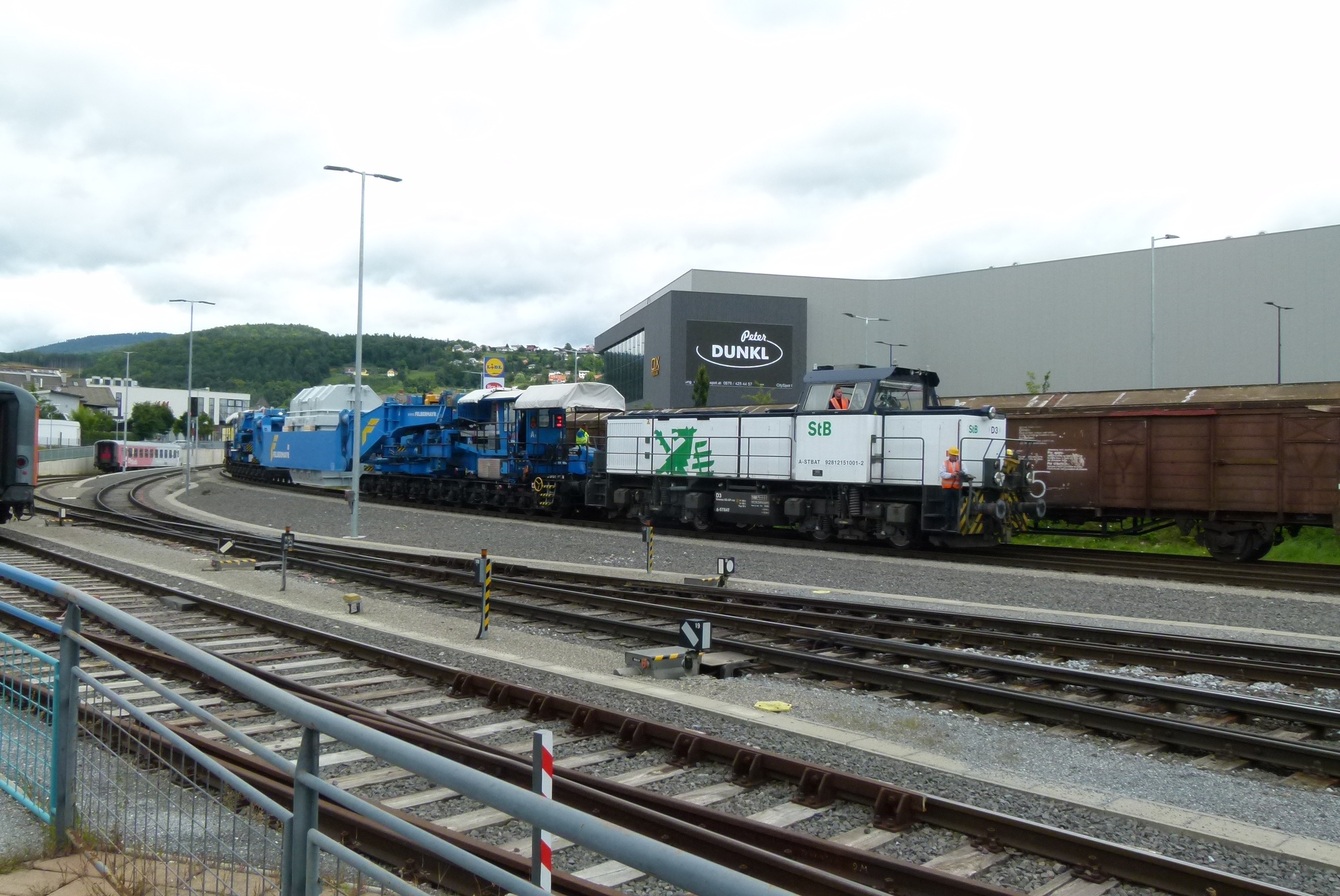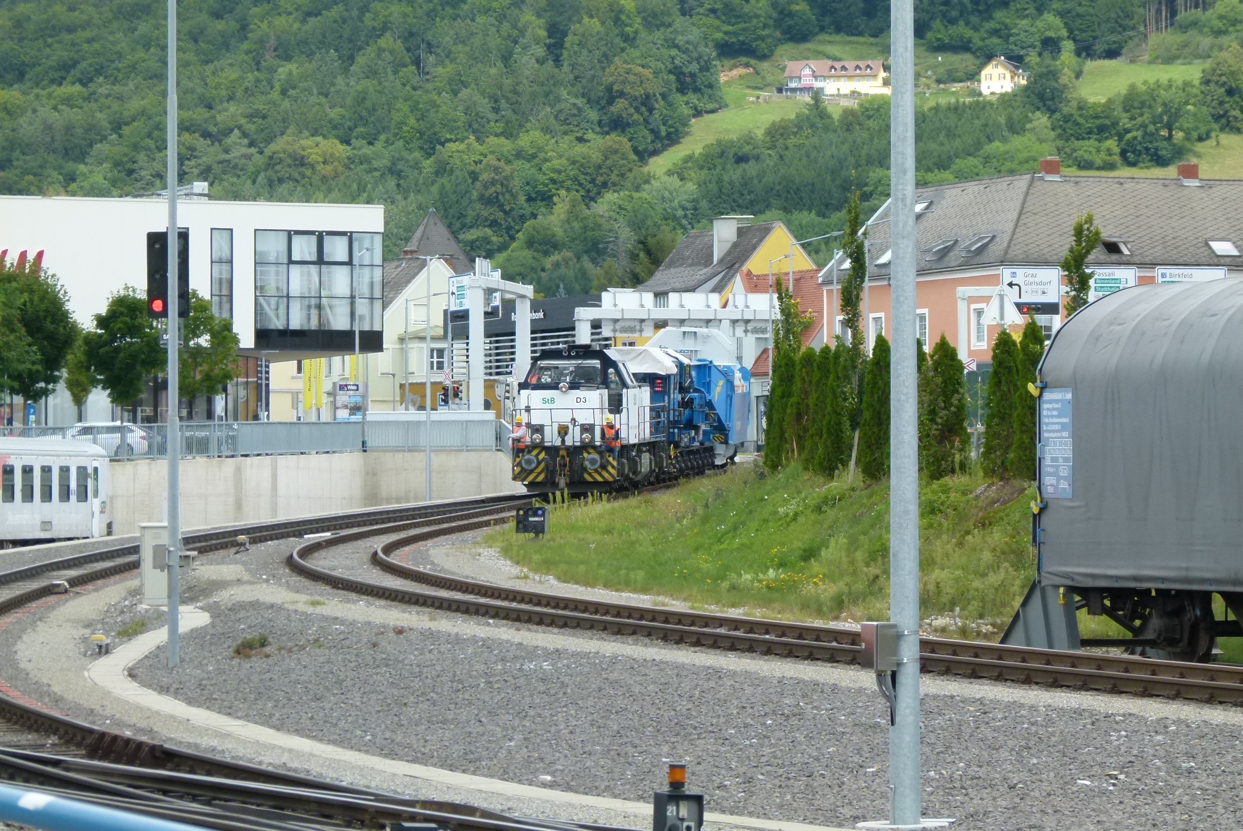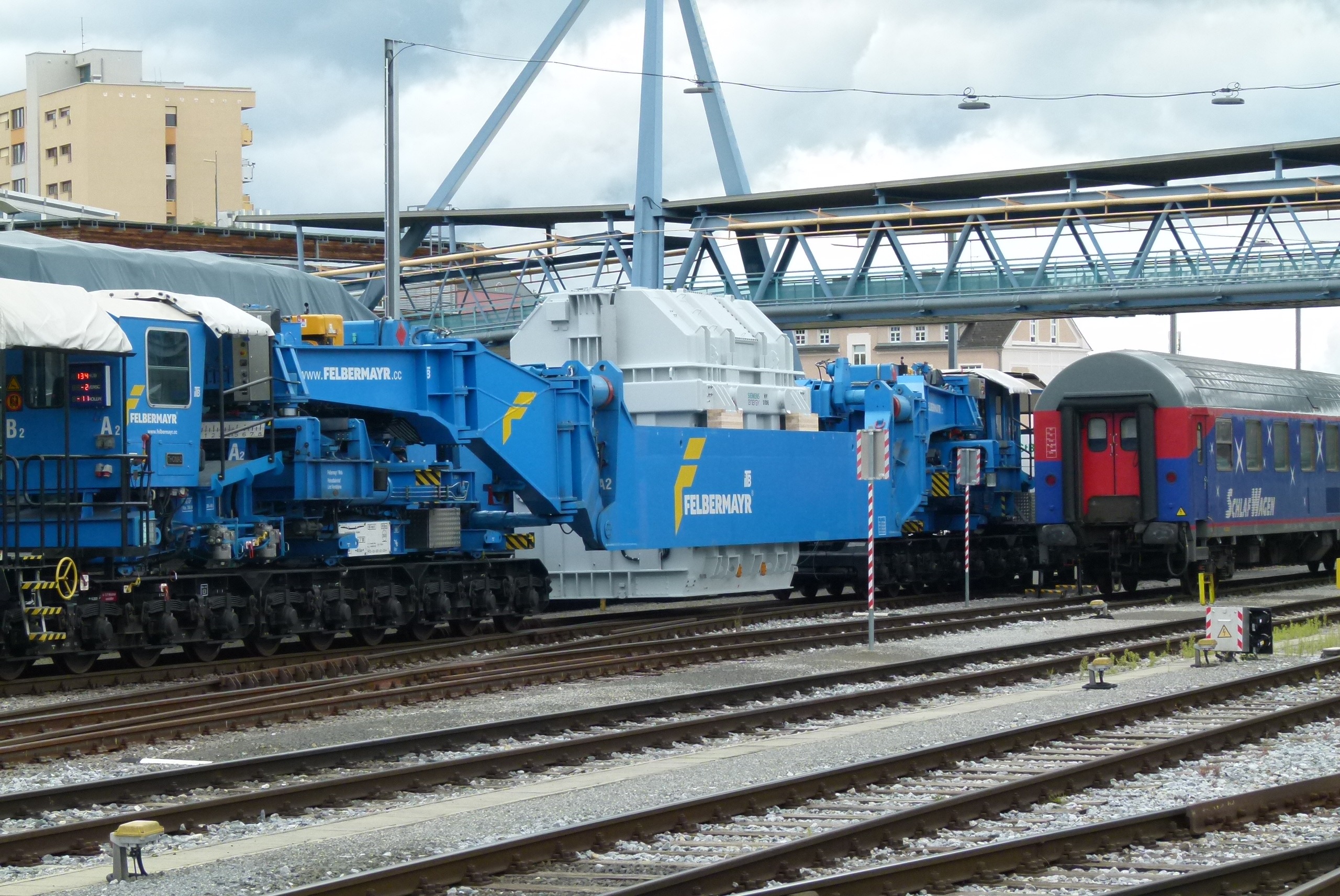 Schwertransportwagen Felbermayr im Bahnhof Weiz