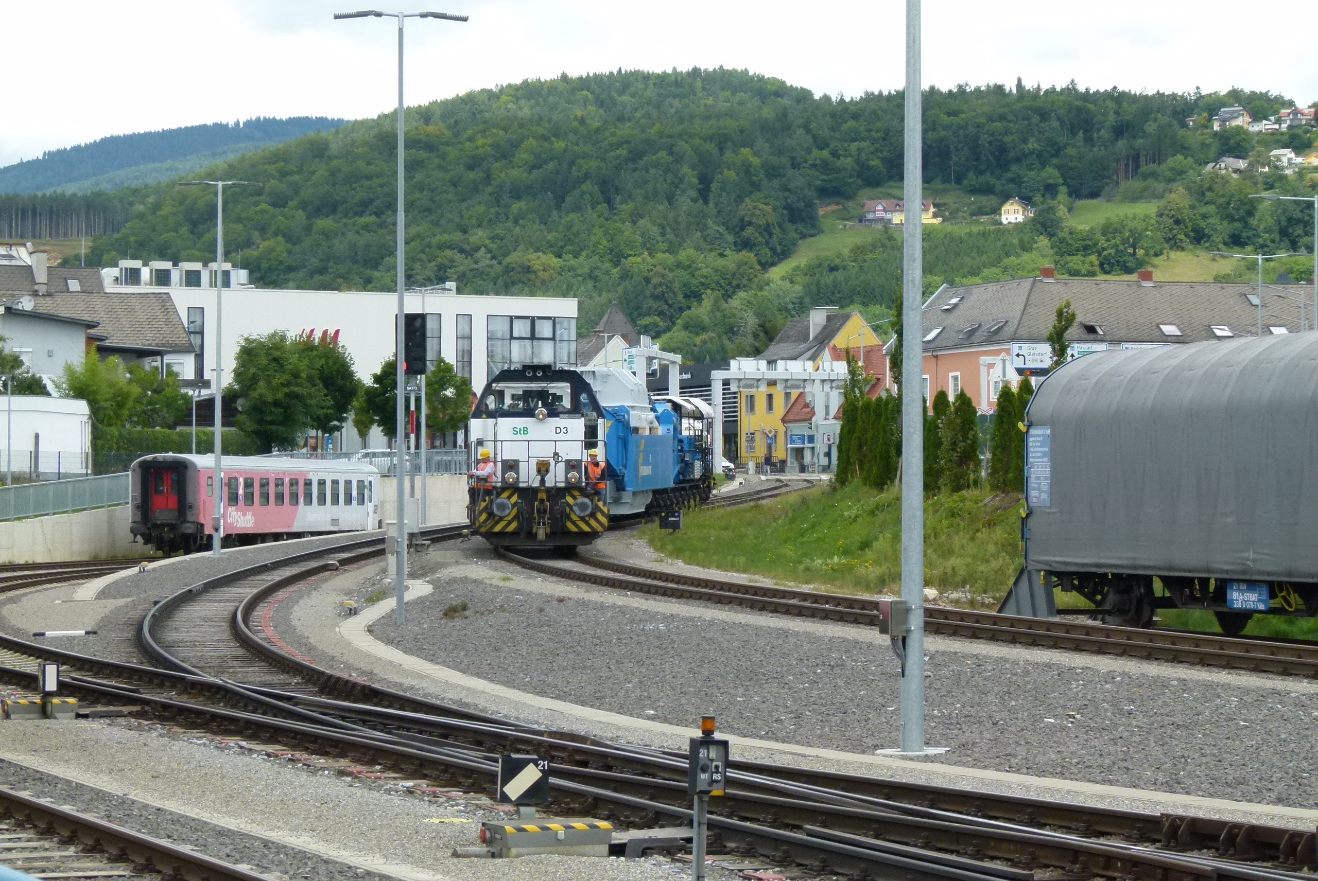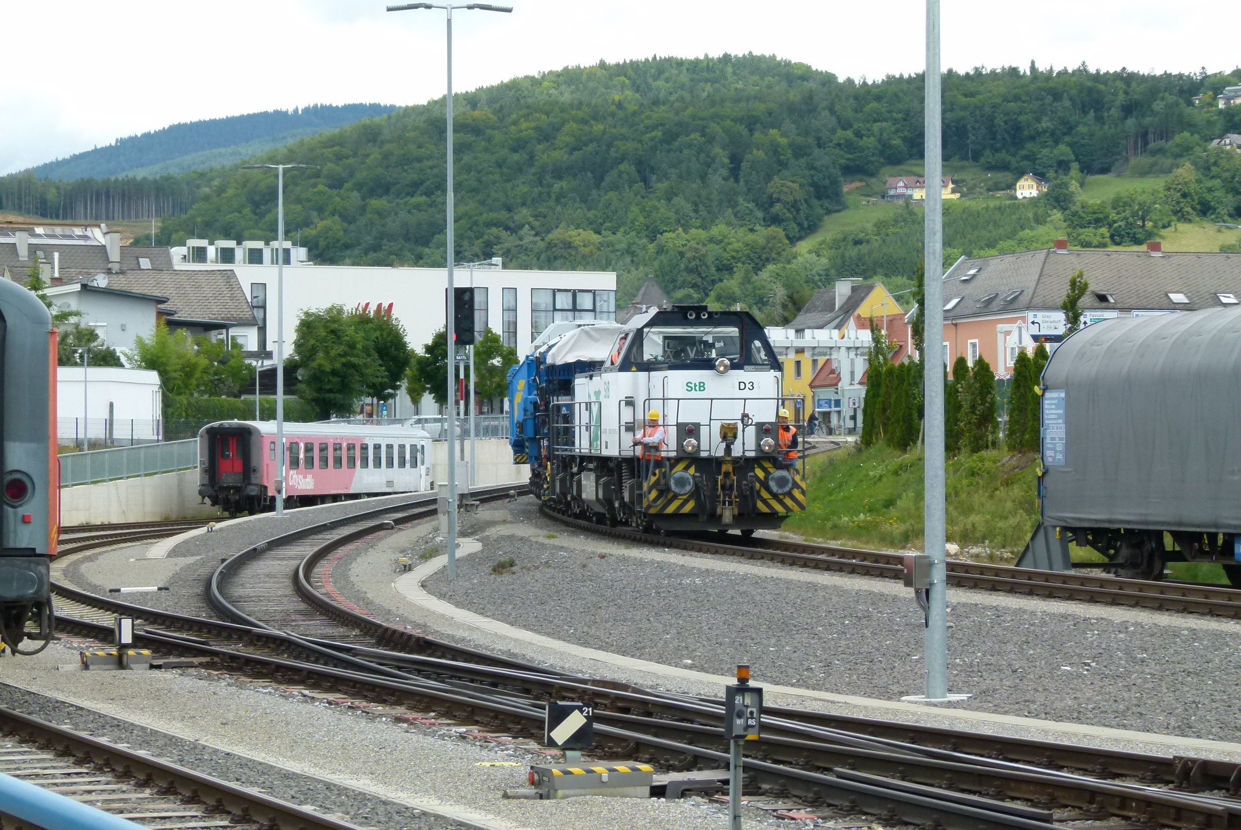 Lok 3 mit Jn 8 im ertüchtigten Bahnhof Eben mit Mittelbahnsteig und neuem Abstellgleis.