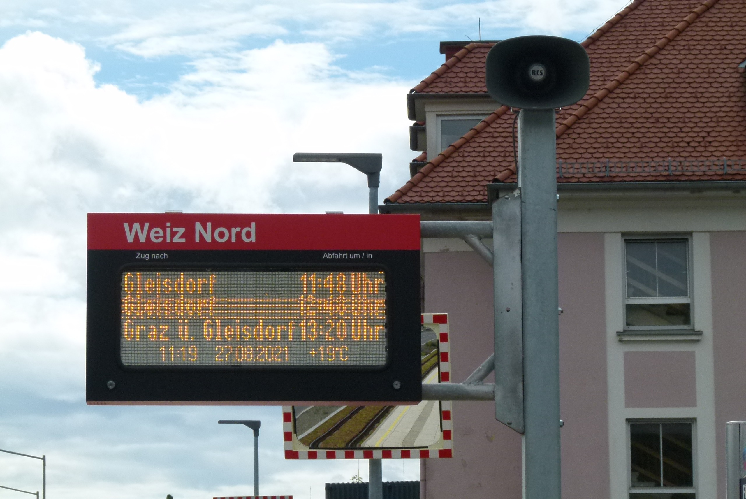 Die Anzeigetafel bei der Haltestelle Weiz Nord.