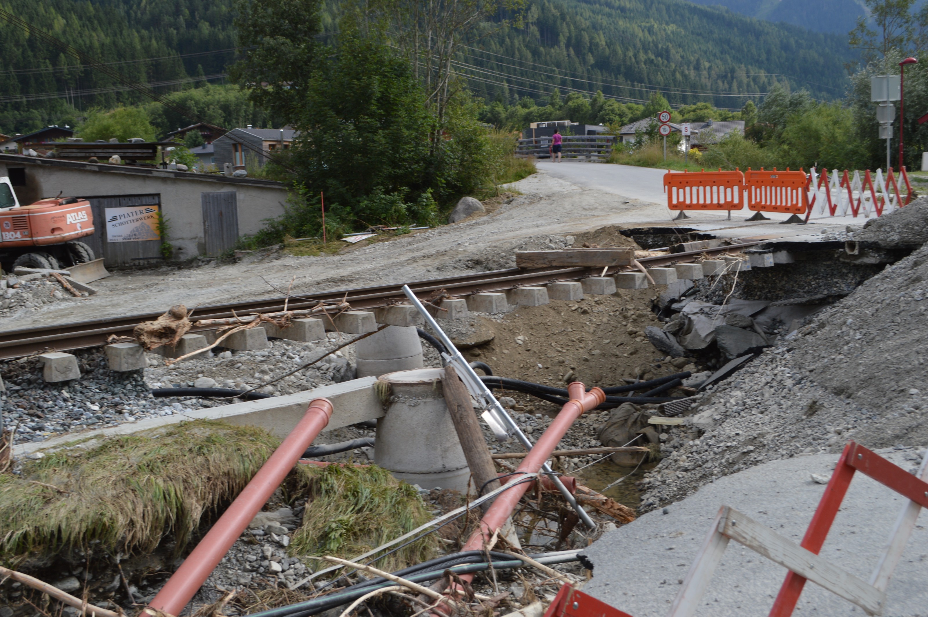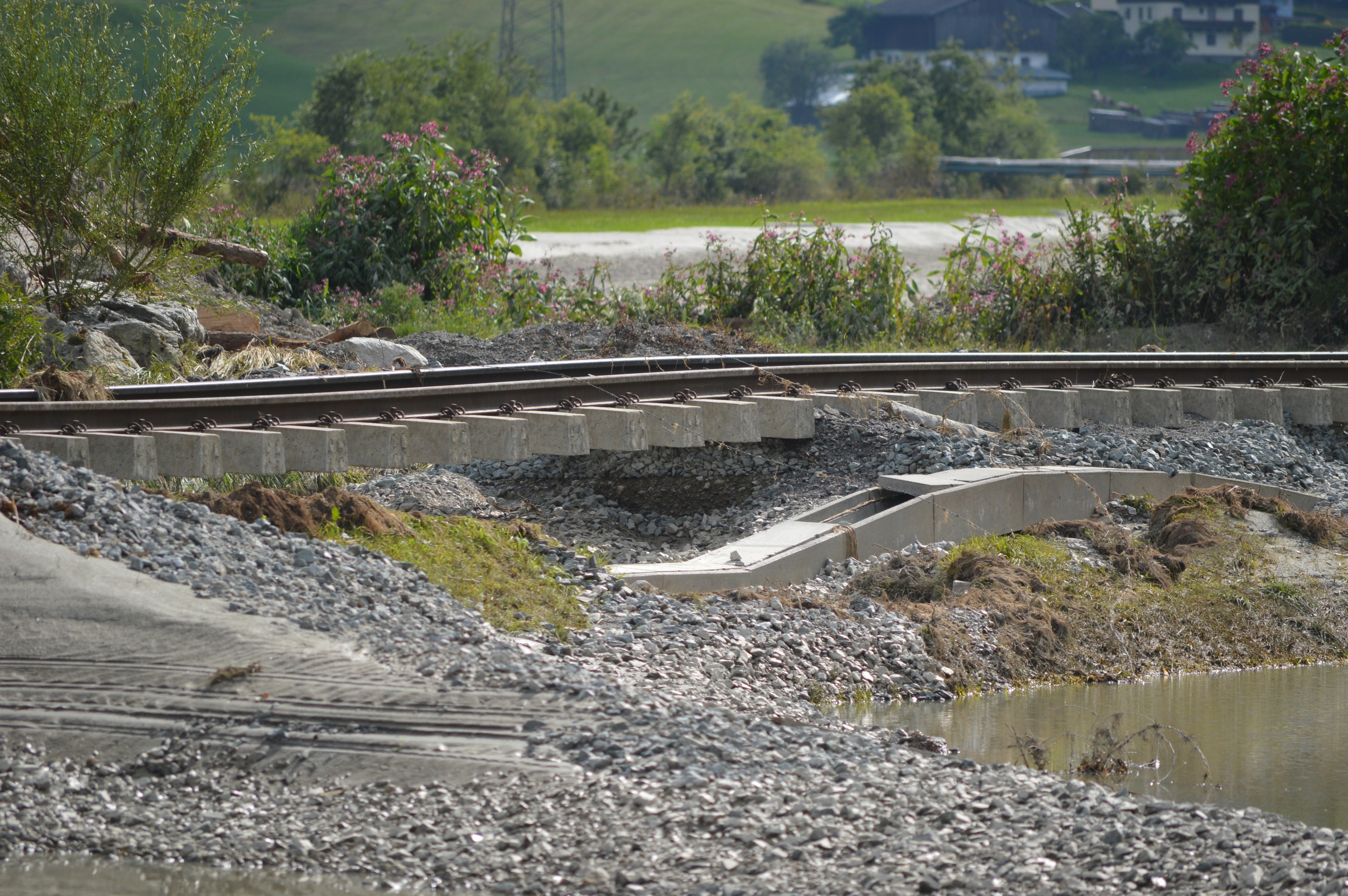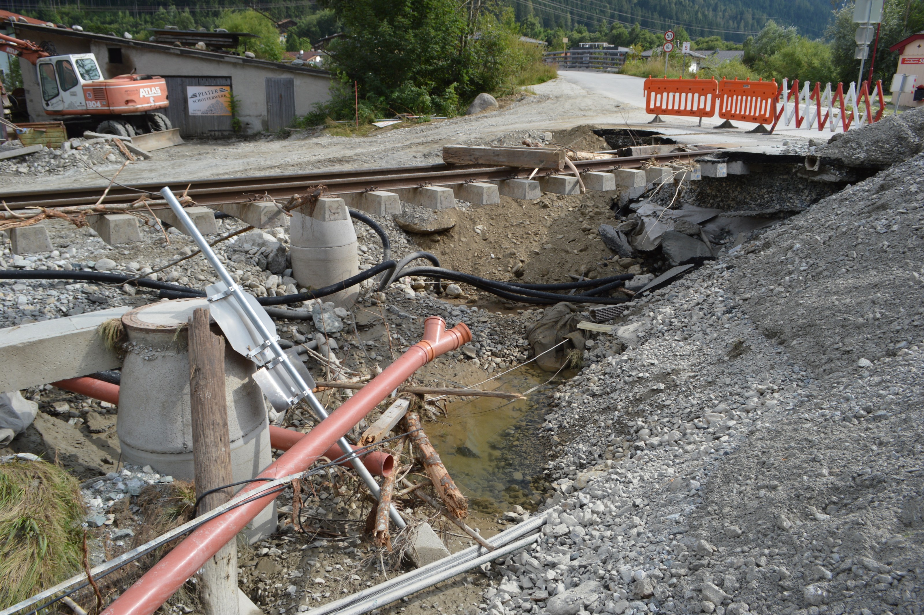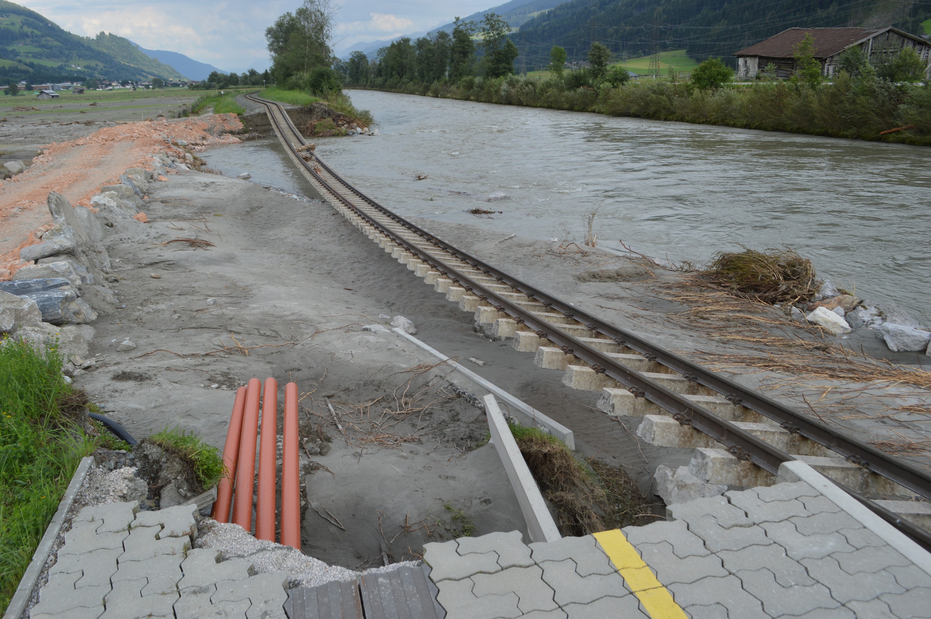 Hochwasserschäden entlang der PLB. Im Sommer 2014 kam es im gesamten Bundesland Salzburg zu massiven Schäden, der Pinzgau war besonders betroffen.