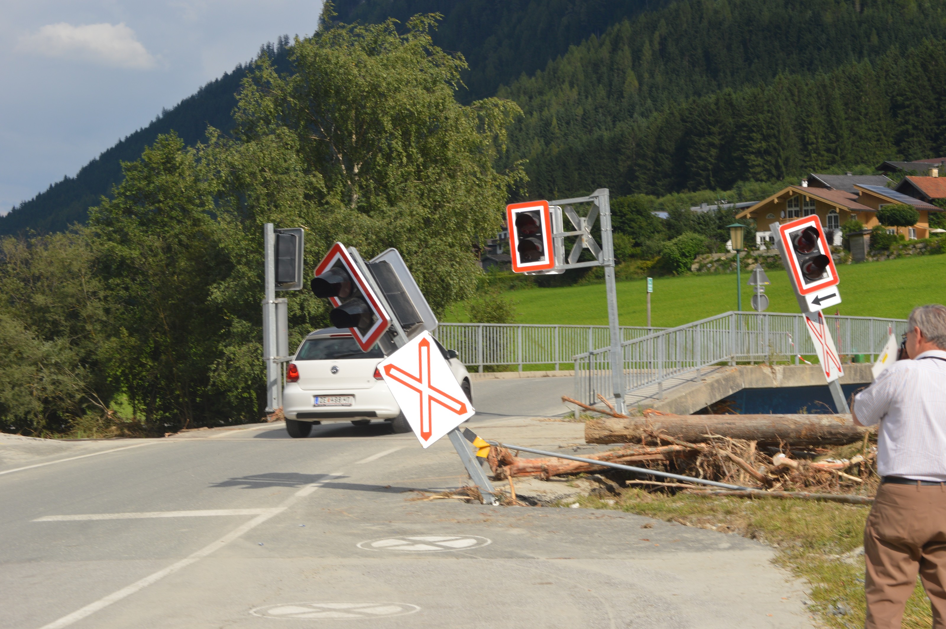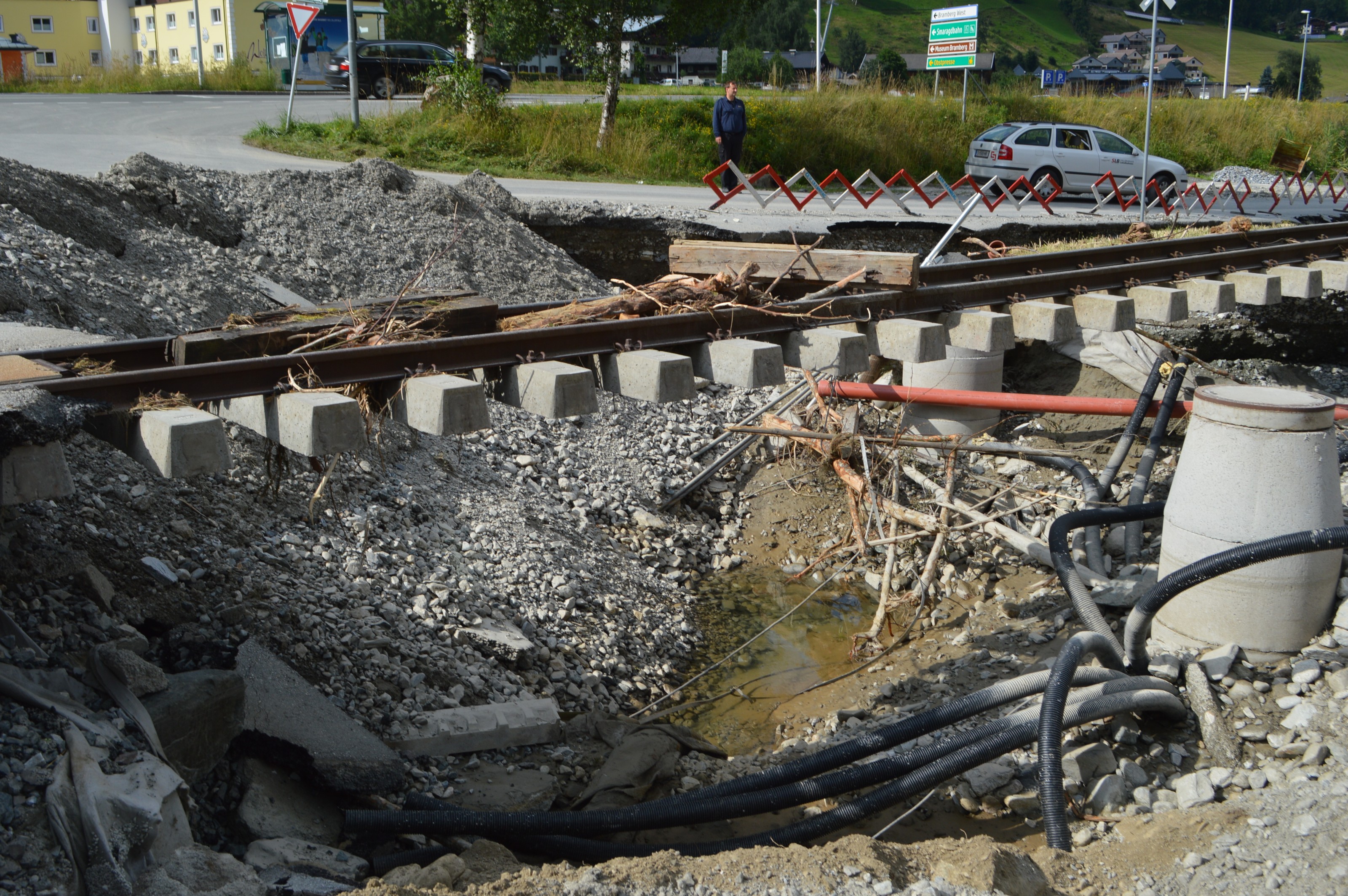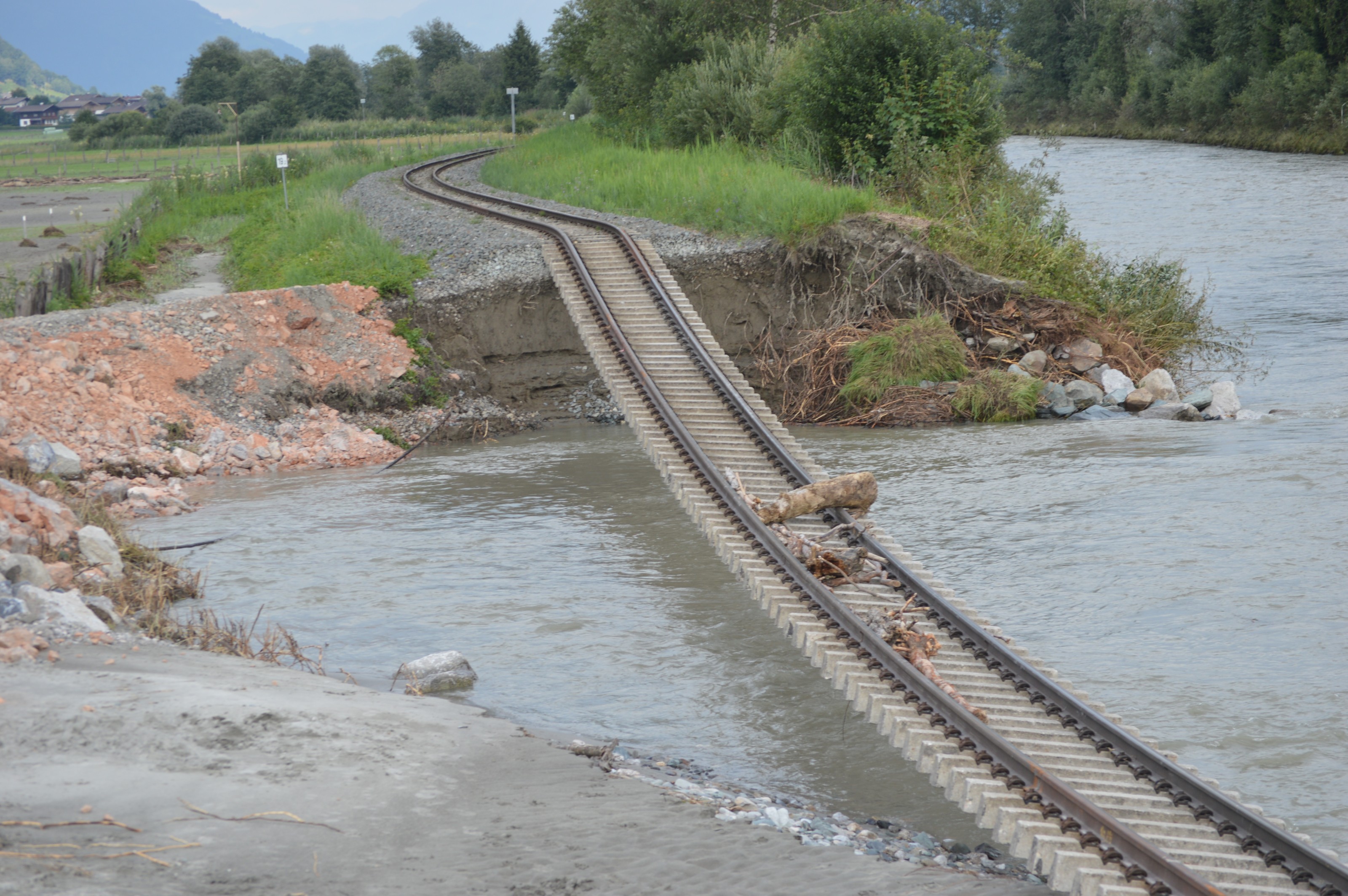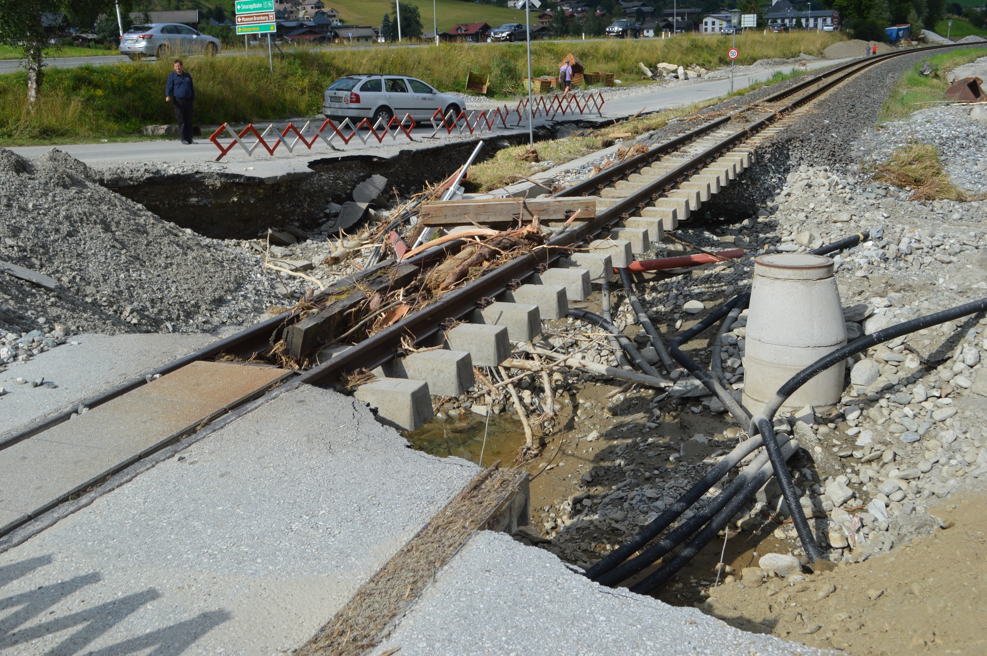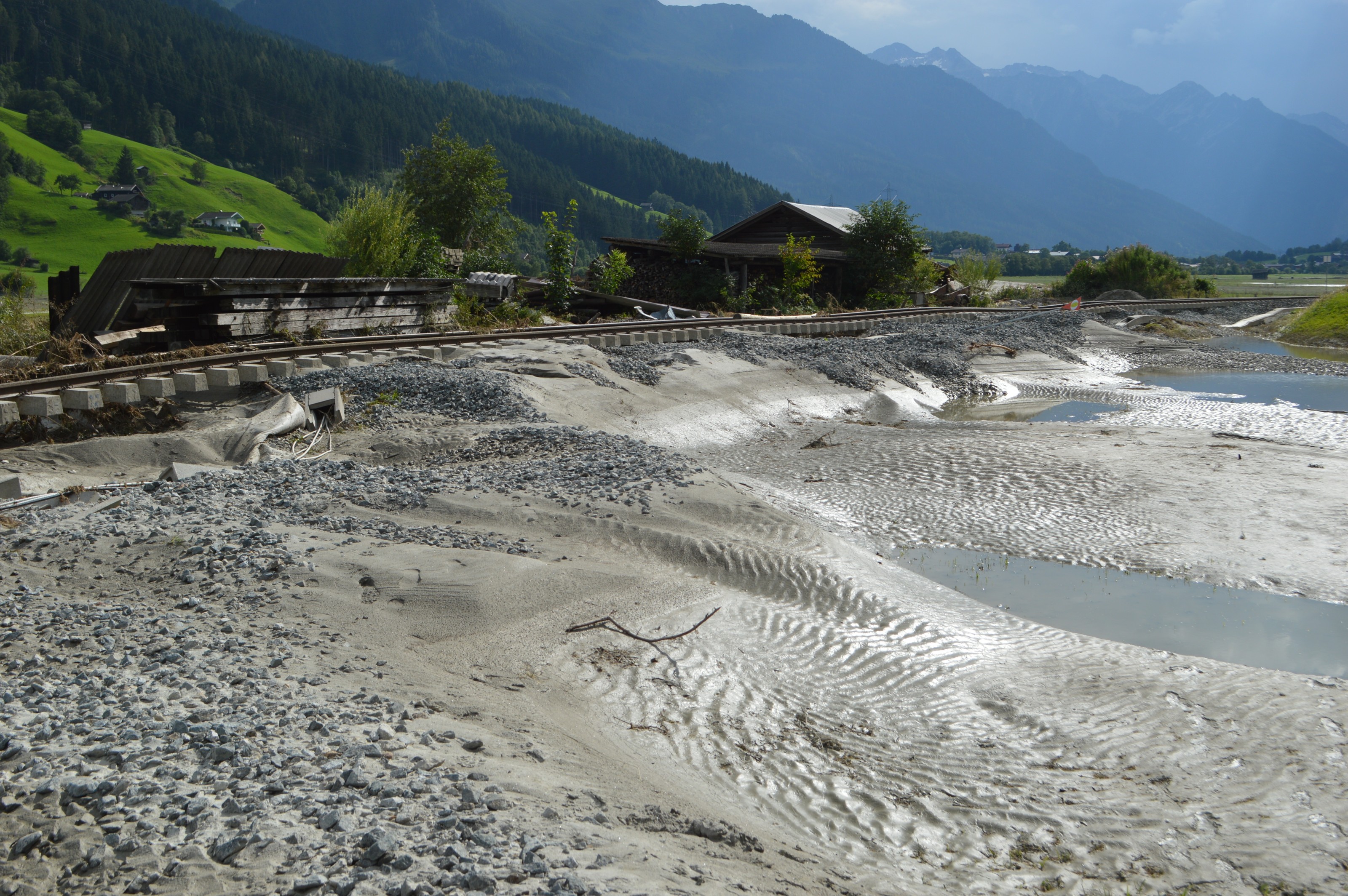 Hochwasserschäden entlang der PLB. Im Sommer 2014 kam es im gesamten Bundesland Salzburg zu massiven Schäden, der Pinzgau war besonders betroffen.