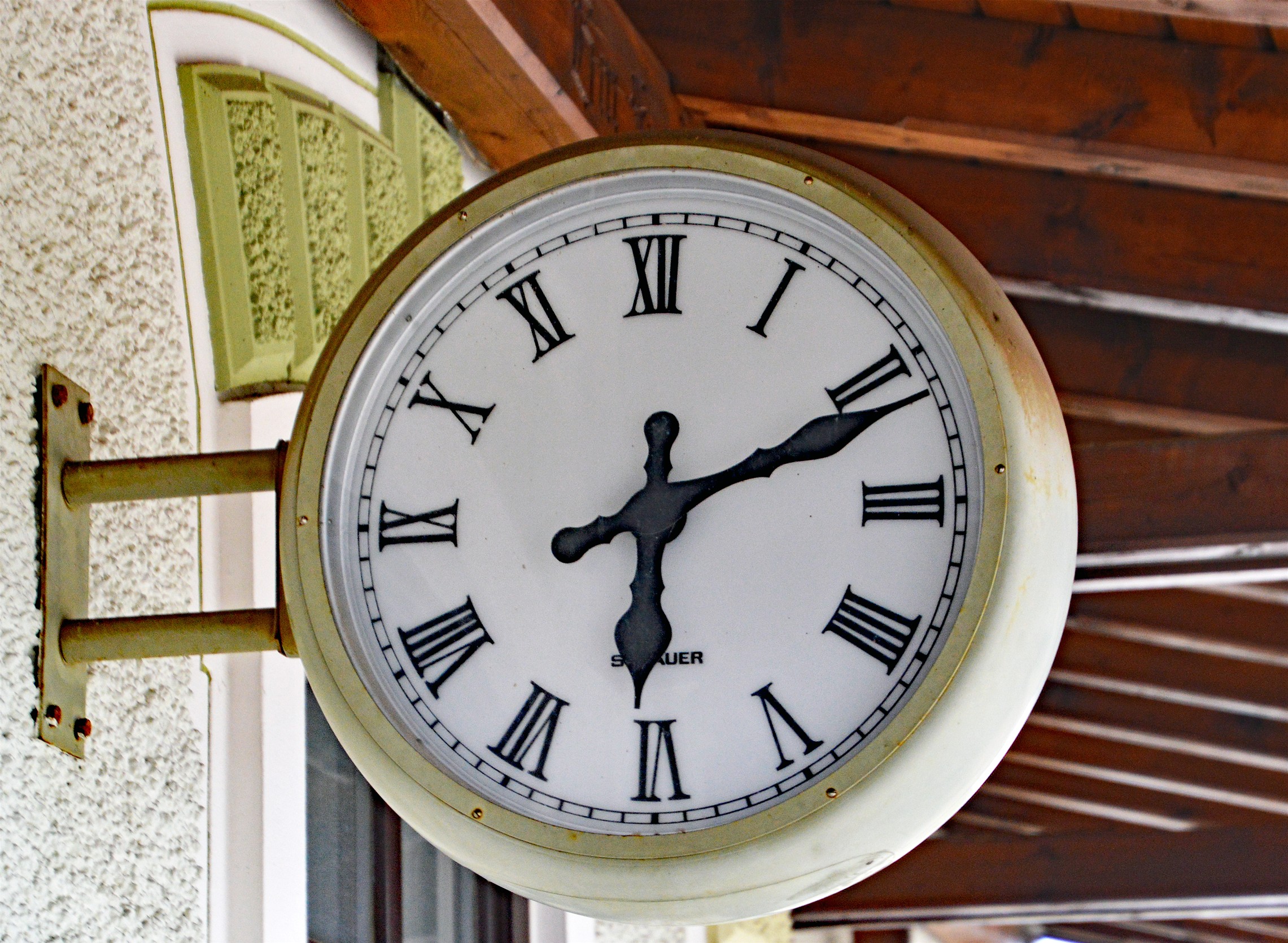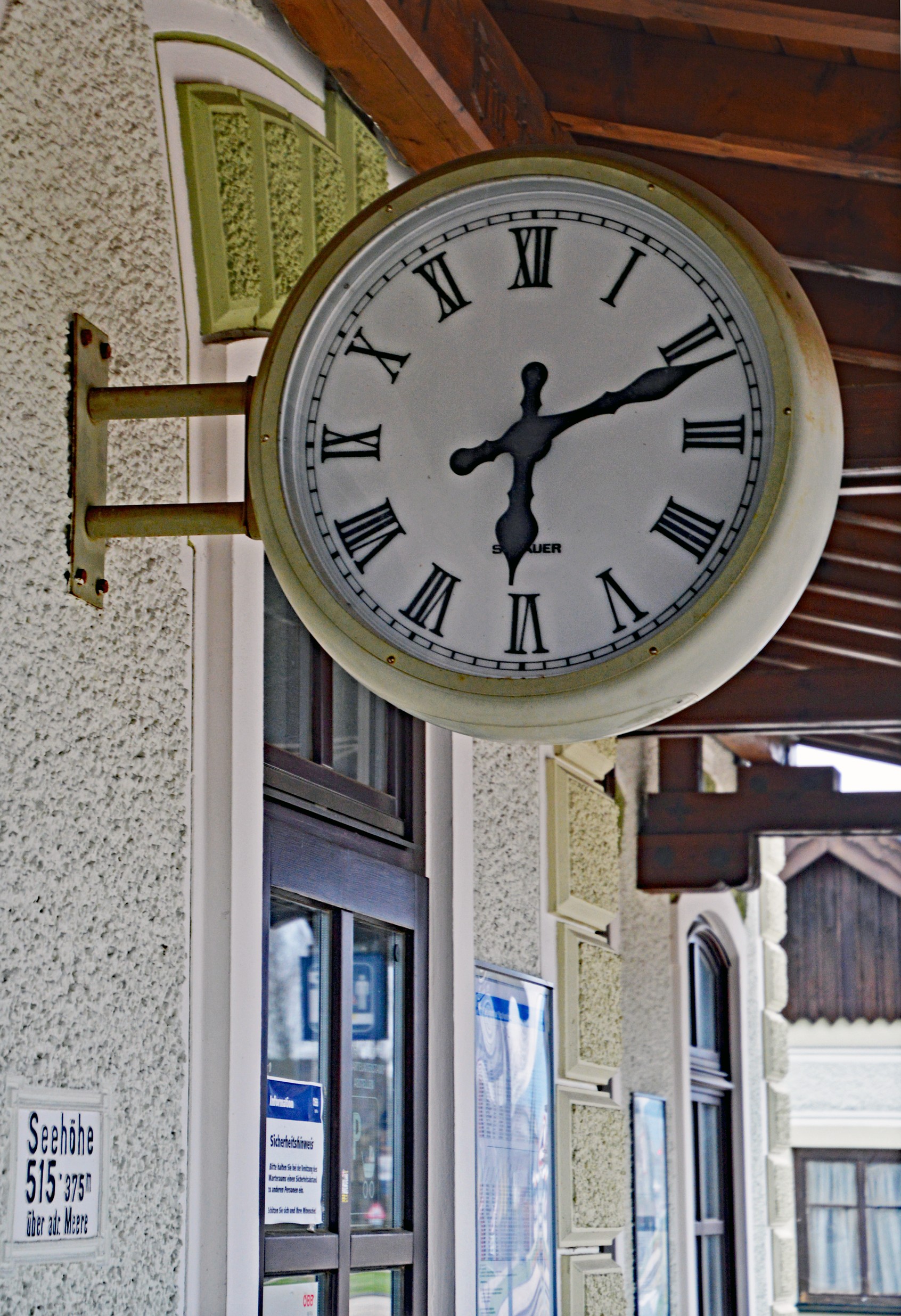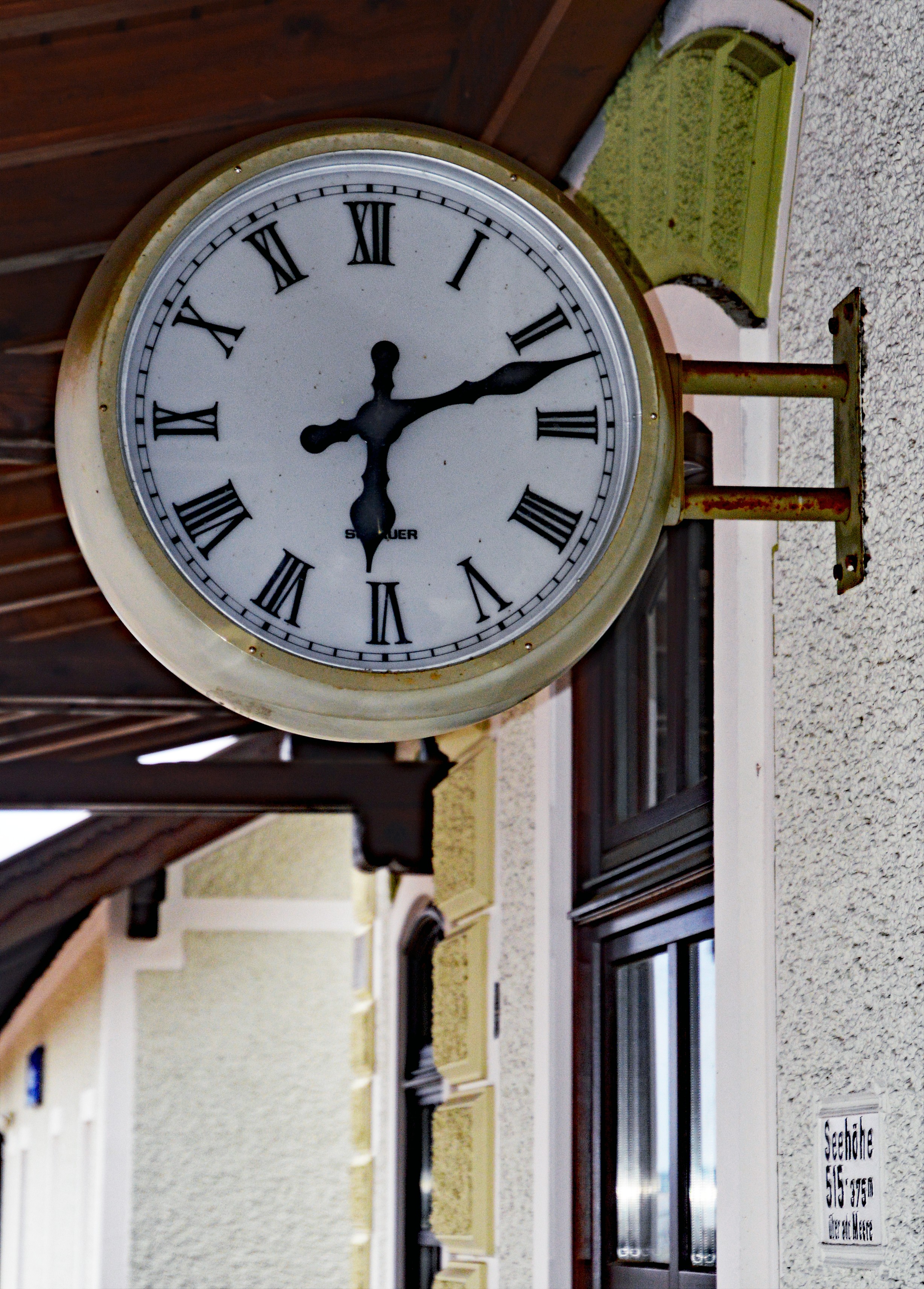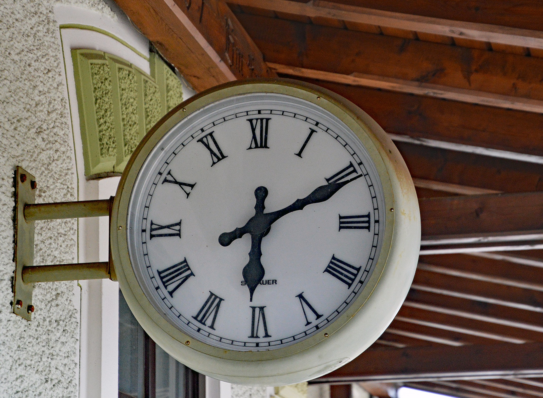 Bahnhofsuhr Schauer Replica im historischen Nachbau mit römischen Ziffern Bahnhof Friedburg-Lengau