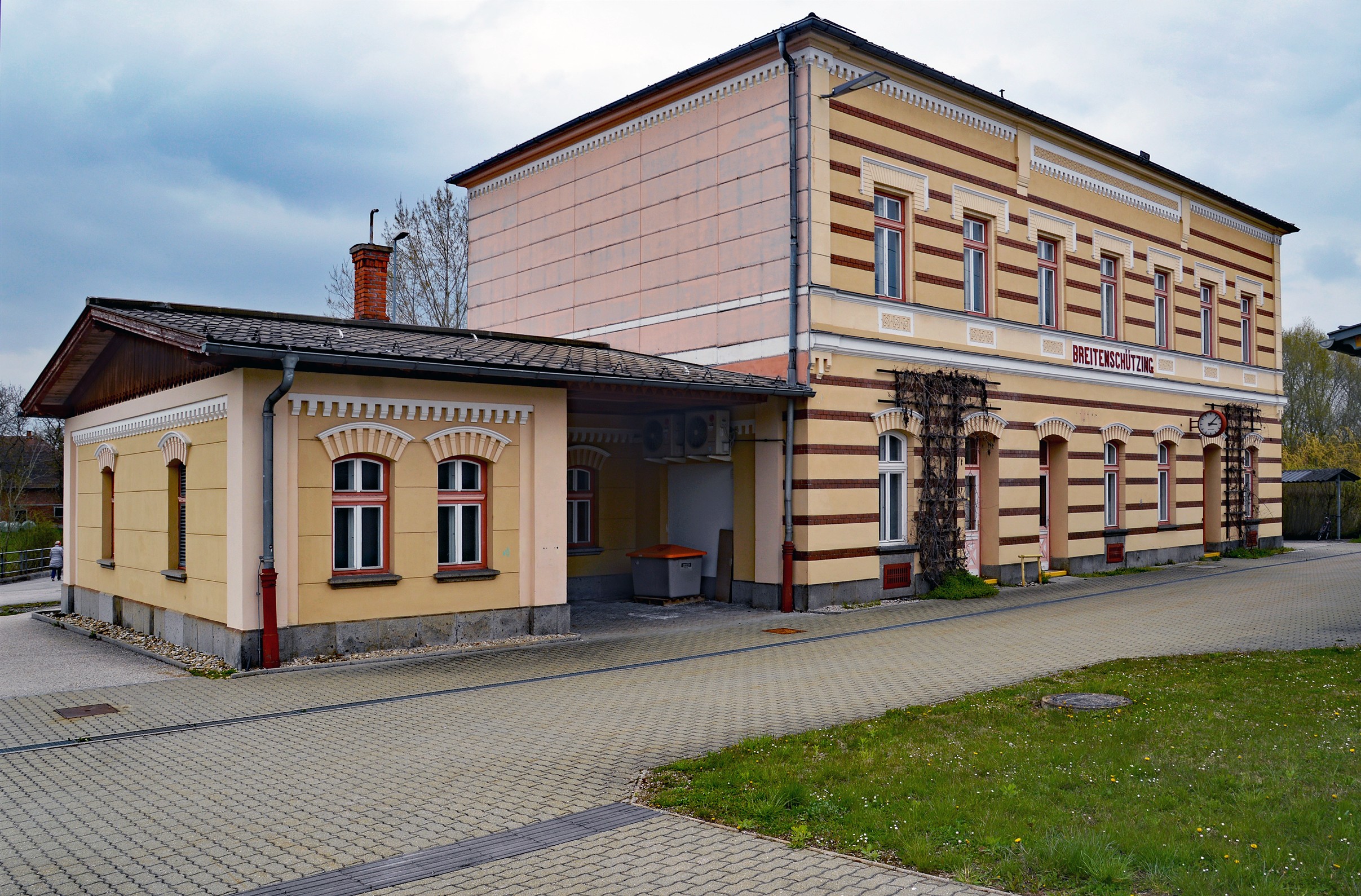 Der Bahnhof Breitenschützing ist ein historisch wertvolles Gebäude, weil esAm Bahnhofsvorplatz ist noch immer der Bahnsteig des Endpunktes der Schwerkraftbahn von Kohlgrube zu erkennen.