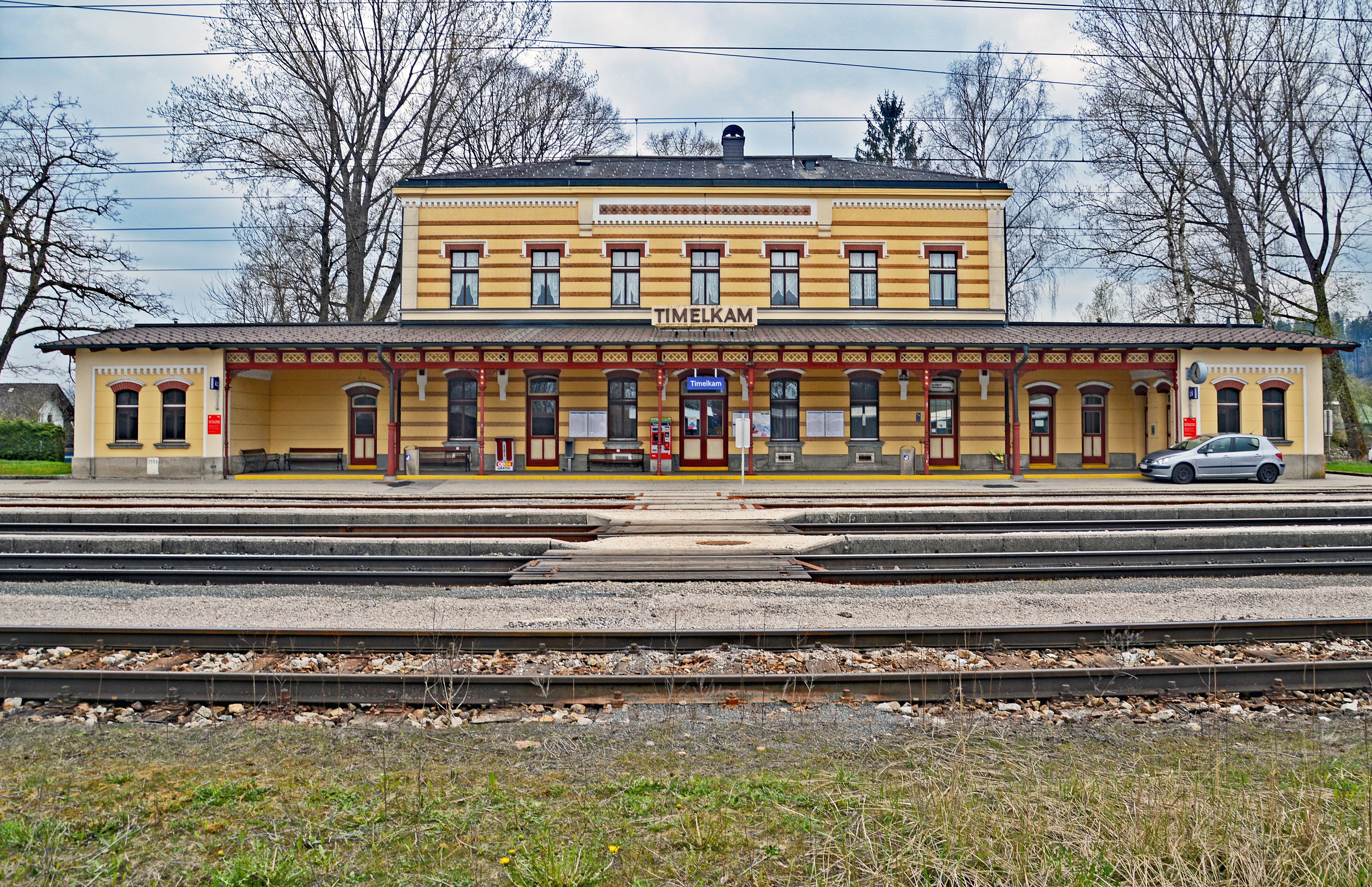 Der Bahnhof Timelkam im Ortsteil Leidern, neben dem Kraftwerk, ist ein historisch wertvolles...