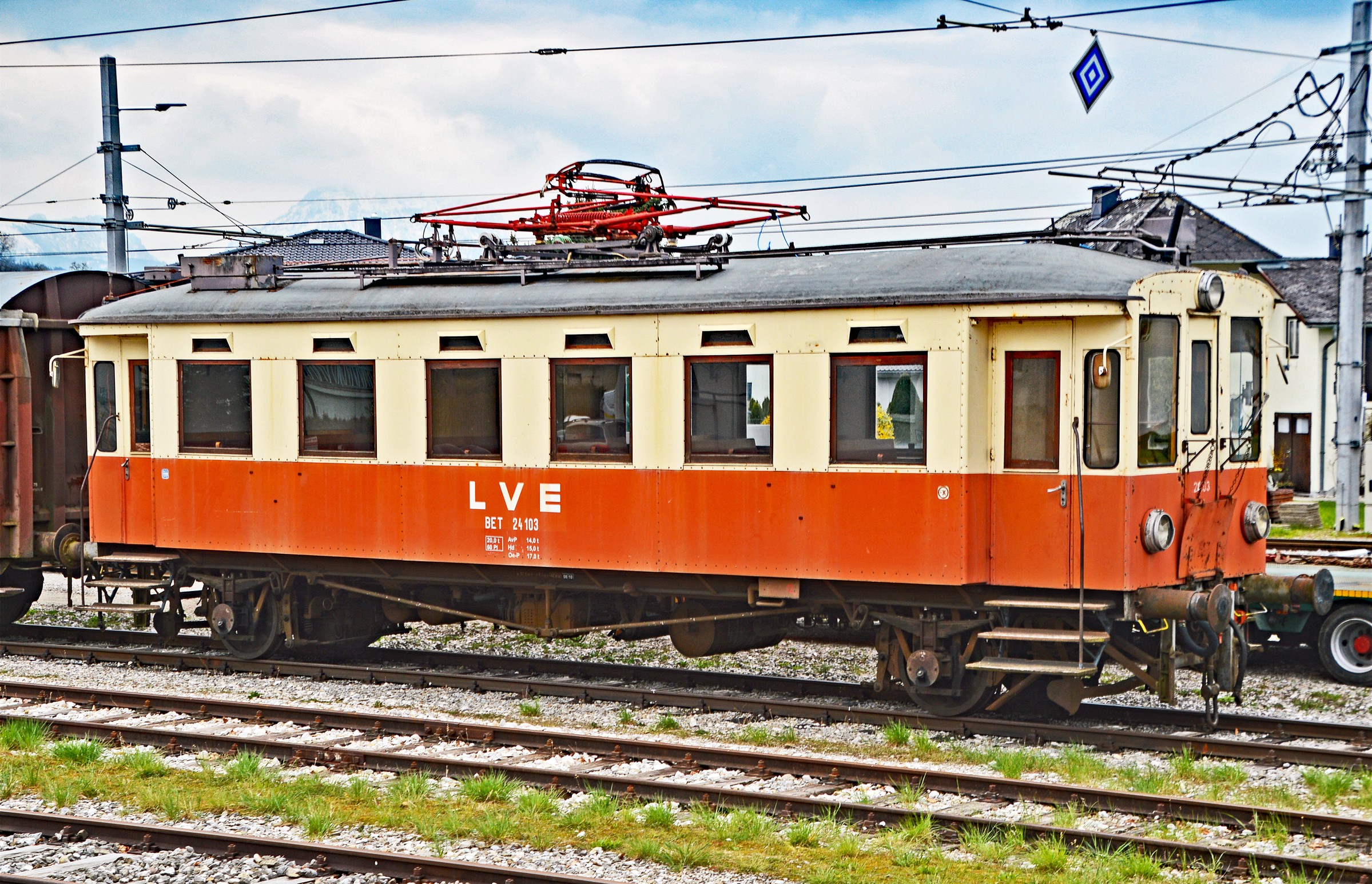 LVE Lokalbahn Lambach - Vorchdorf-Eggenberg Normalspurbahn Triebwagen, Bahnbetriebswerk Vorchdorf, LVE Elektrotriebwaagen BET 24 103 Stern & Hafferl, ex Extertaler ex SLB ET21, Kölner-Triebwagen