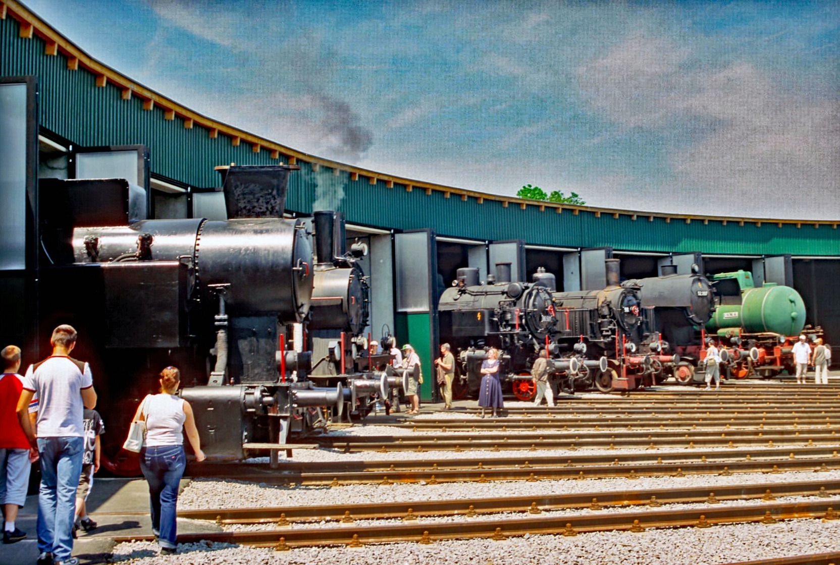 Lokpark Ampflwang ÖGEG-Betriebswerk Landesausstellung Kohle & Dampf 2006 mit Ringlokschuppen, Dampflokomotiven und Sonderfahrten