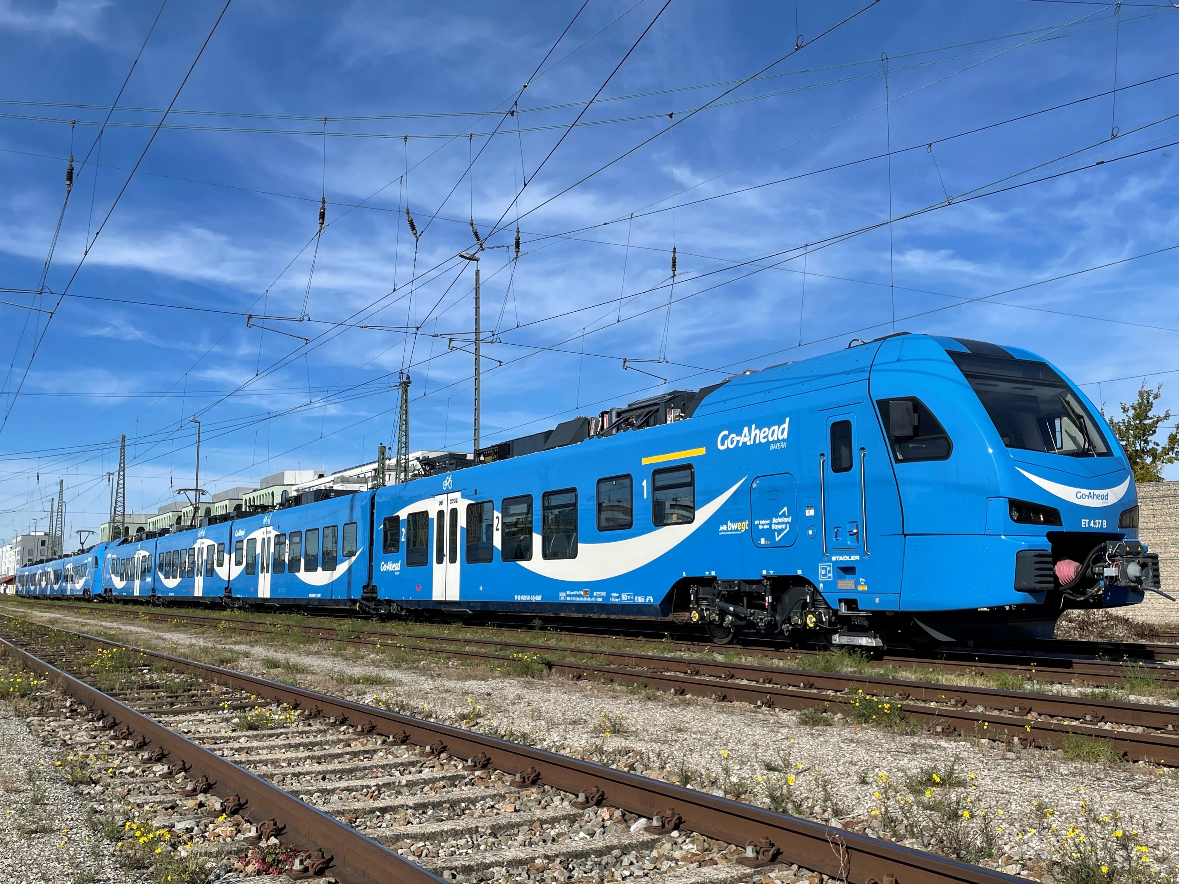 Links: Stadler FLIRT im Go-Ahead Bayern Design Copyright: Go-Ahead Bayern, Fotograf: Leon Prochaska Rechts: Stadler FLIRT im Go-Ahead Bayern Design Copyright: Go-Ahead Bayern, Fotograf: Winfried Karg